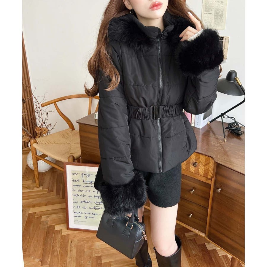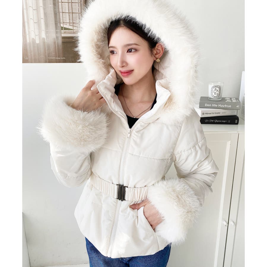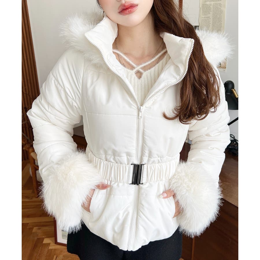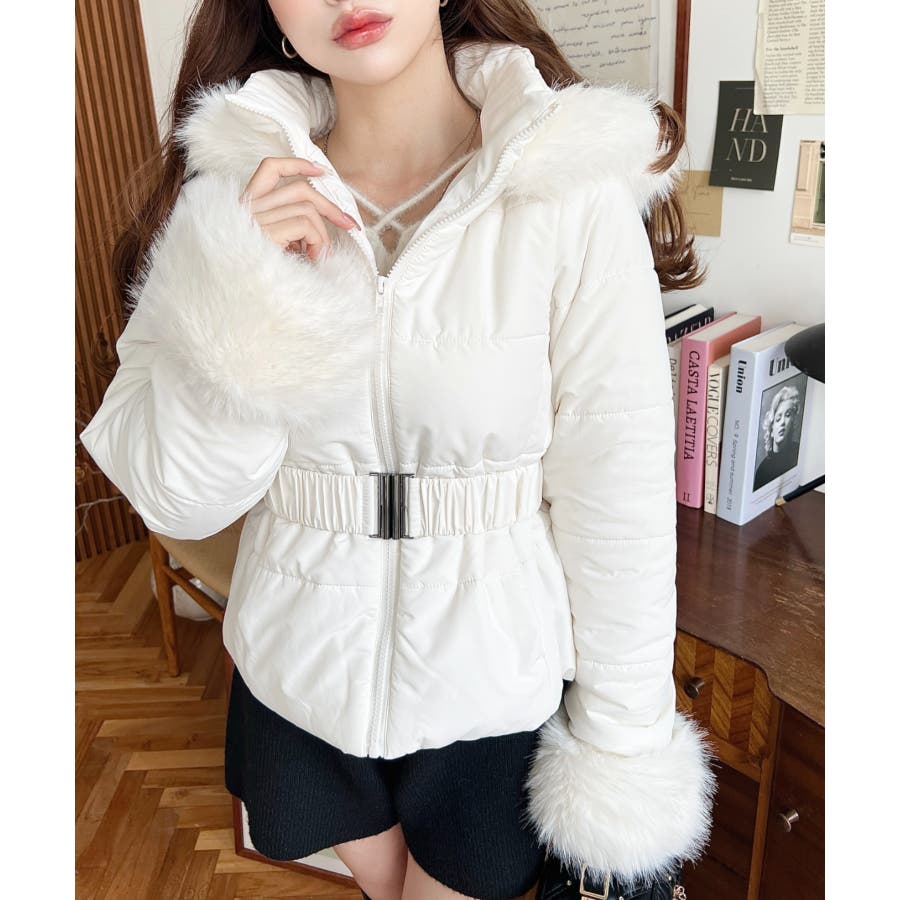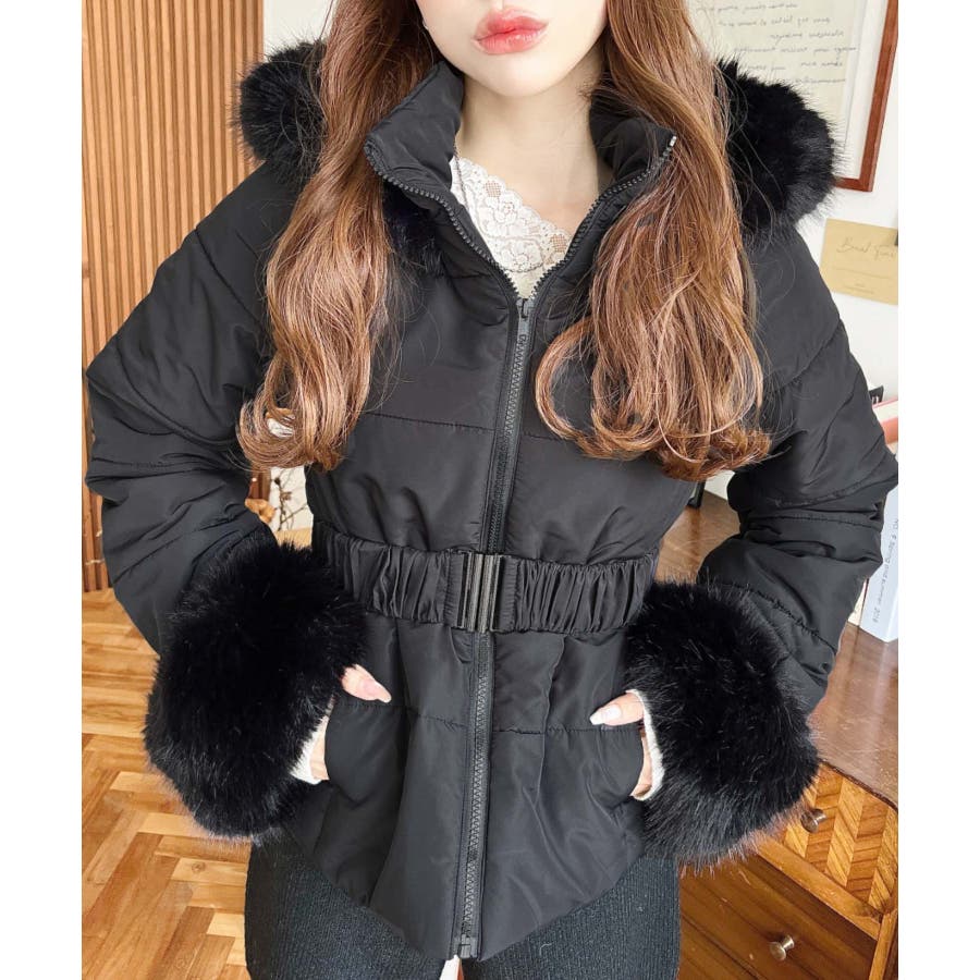 【ウエストマークで冬もスタイルアップ、軽やかに暖かく、防寒もおしゃれも叶えるフードファーダウンジャケット♪】