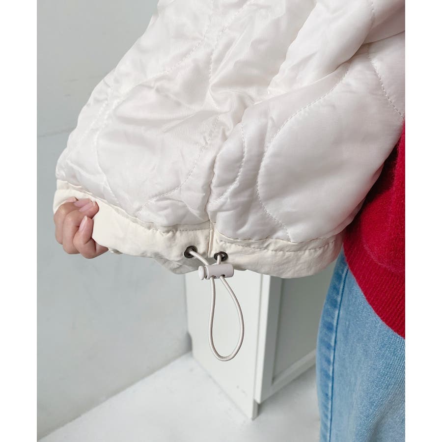 ・フレアスカートやワンピースと合わせ、裾のドローコードを絞ってコンパクトに着こなせばメリハリのある甘辛MIXに。フェミニンカジュアルコーデが可愛い♪