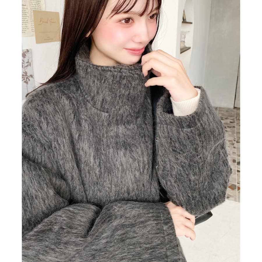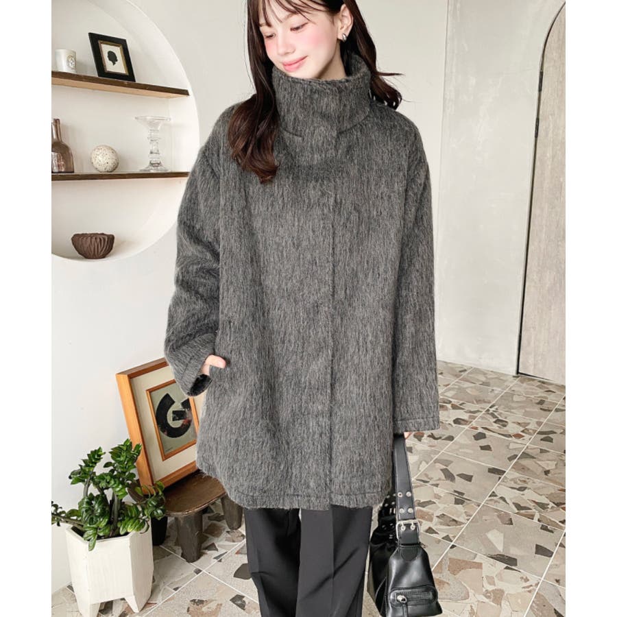 【ふんわりシャギー素材×スタンドカラーで、大人の冬コーデを格上げするジップアップコート】