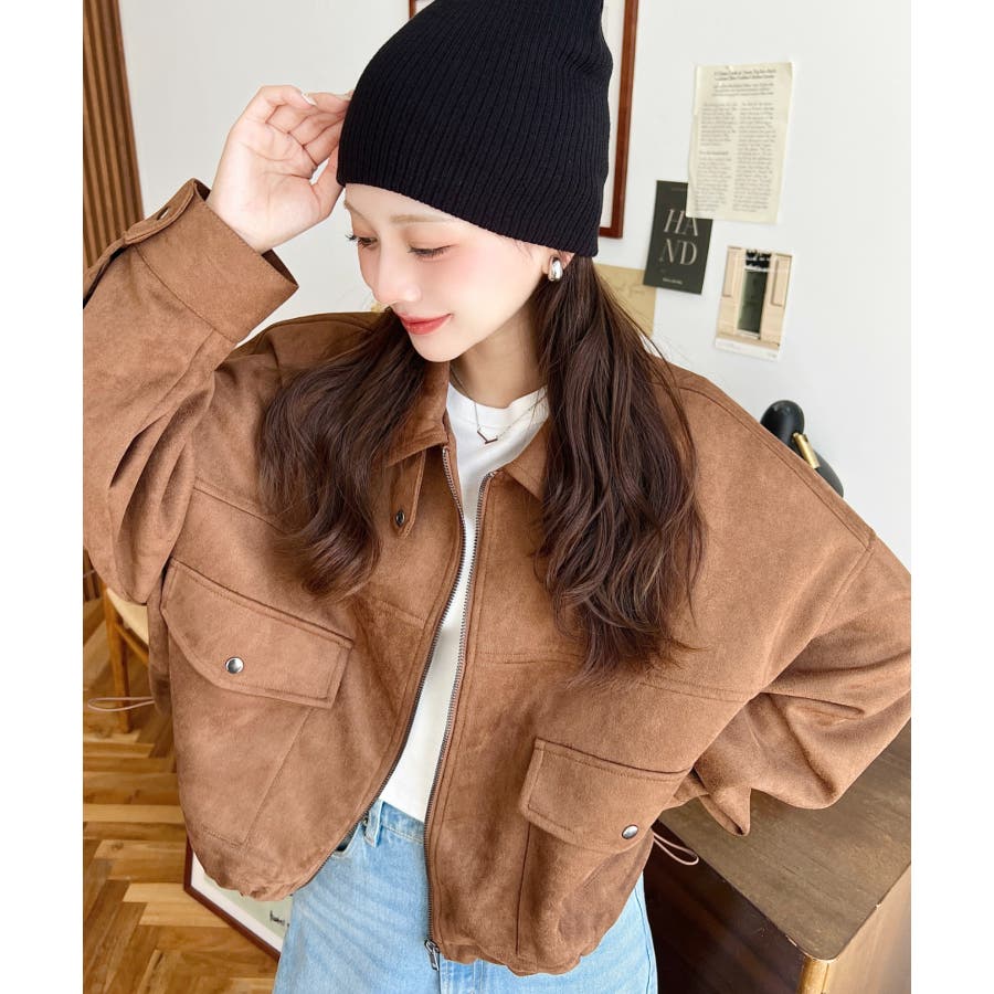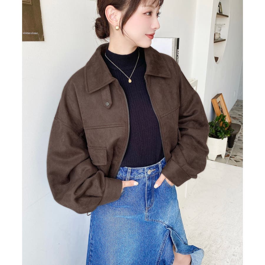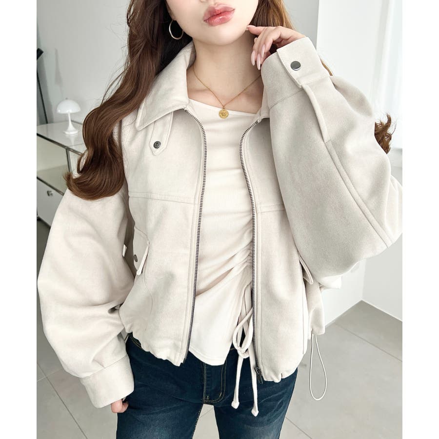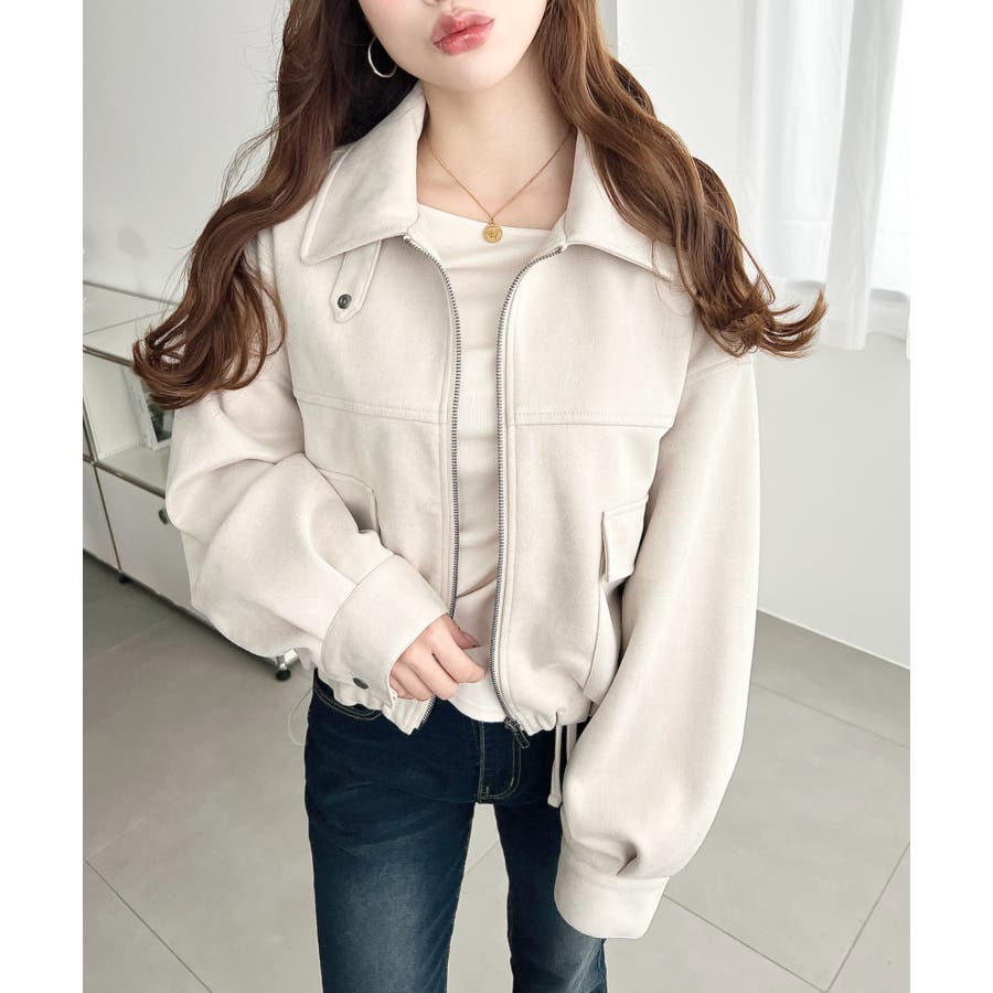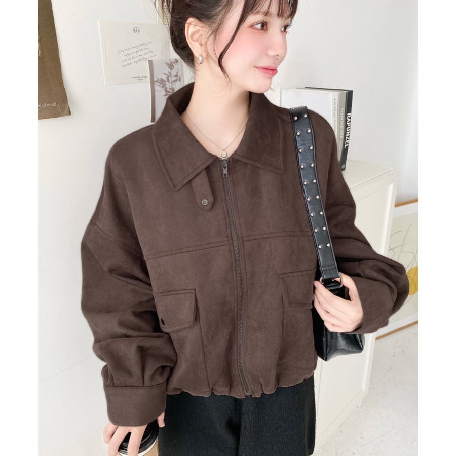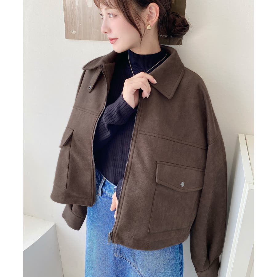 【軽やかなフェイクスエードで上品に魅せる、トレンドコーデに取り入れたい2WAYショートブルゾン♪】