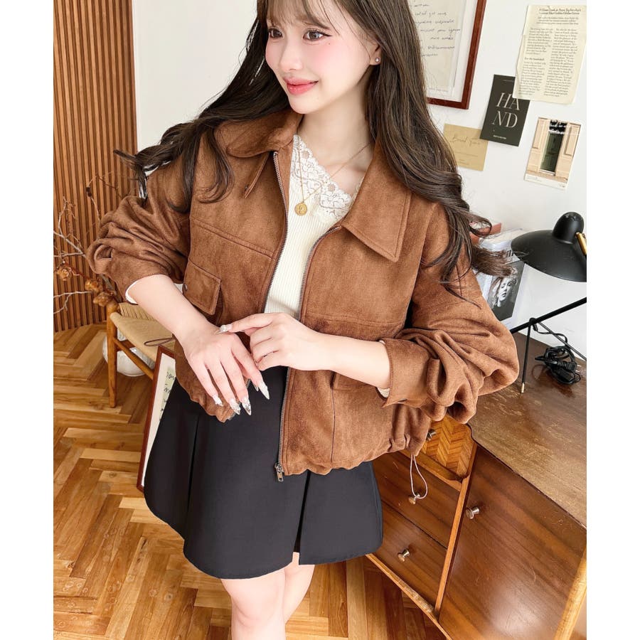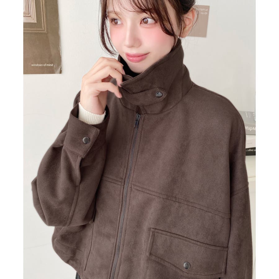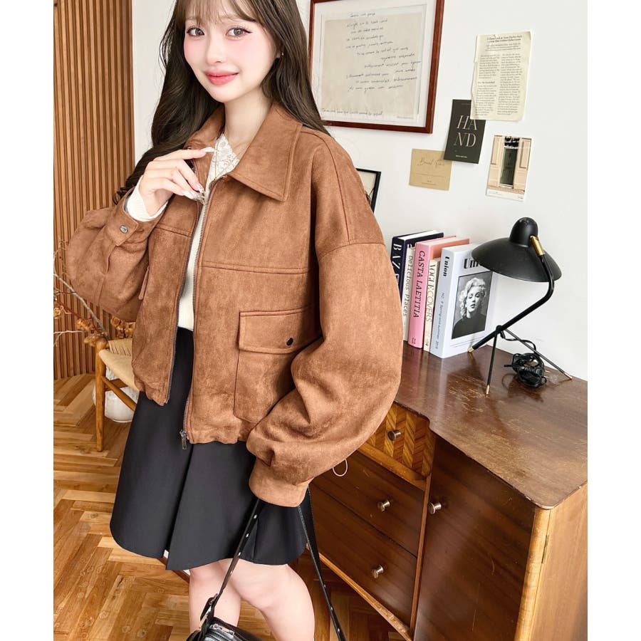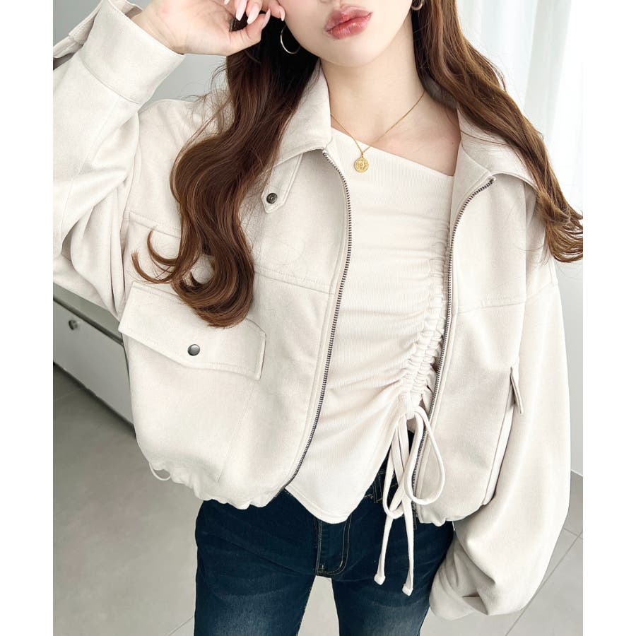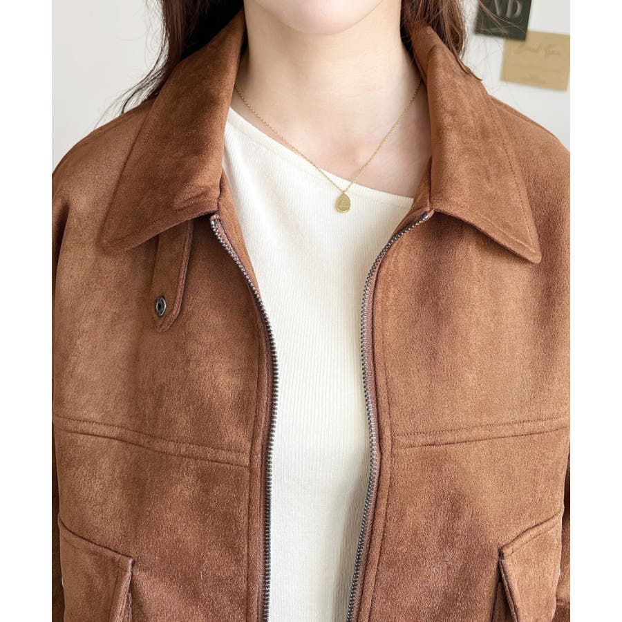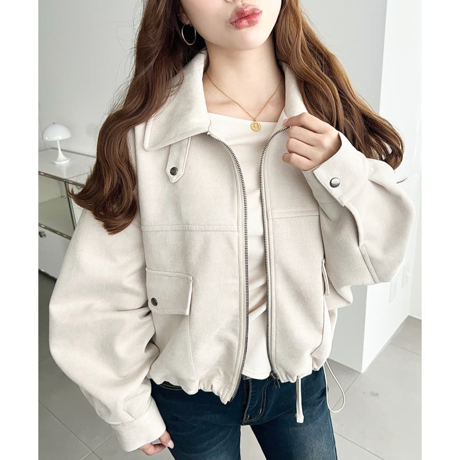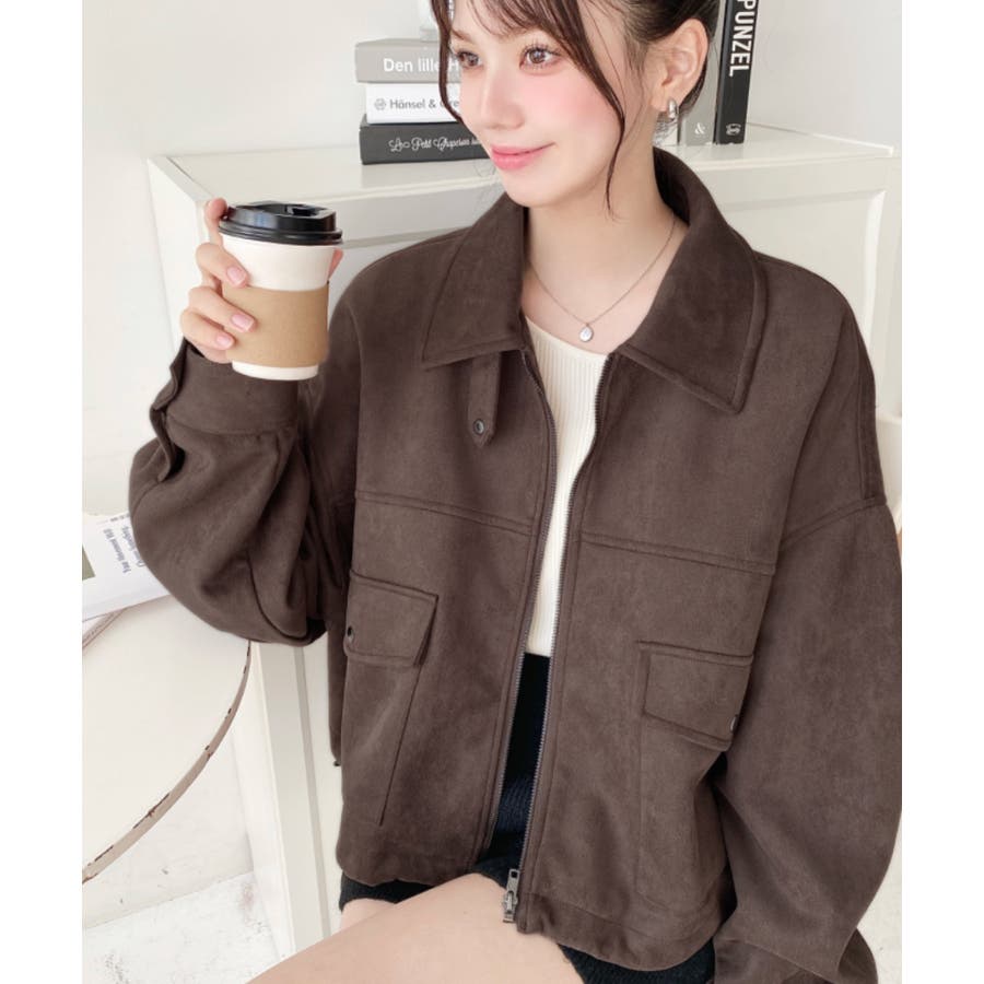 【軽やかなフェイクスエードで上品に魅せる、トレンドコーデに取り入れたい2WAYショートブルゾン♪】