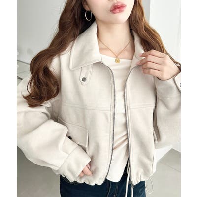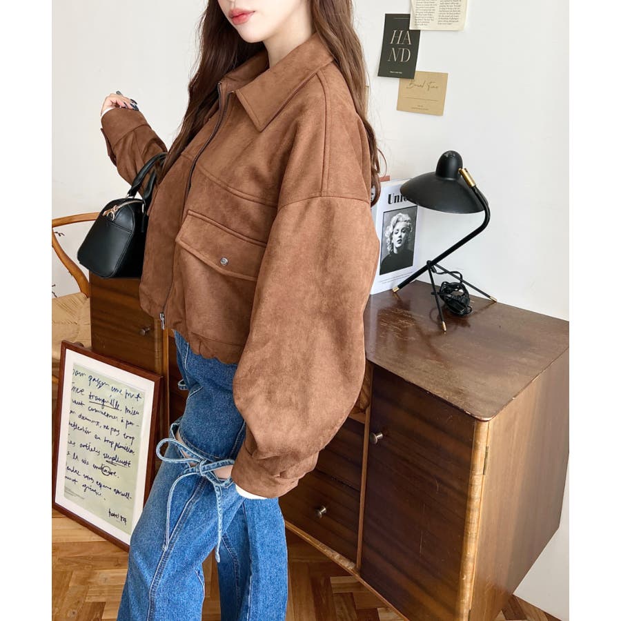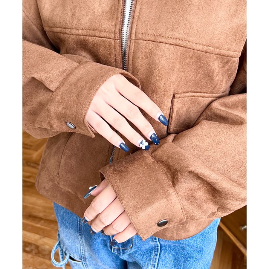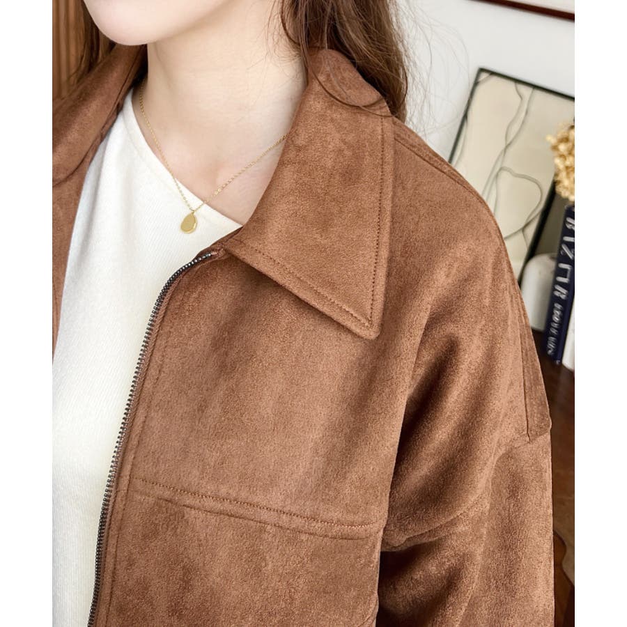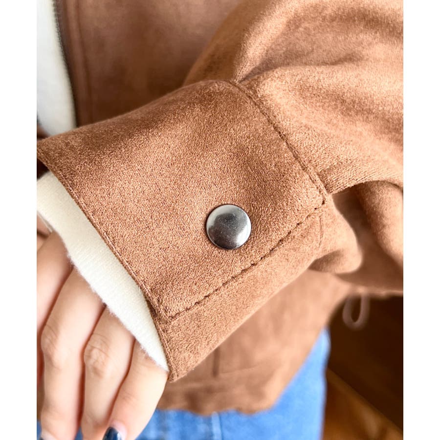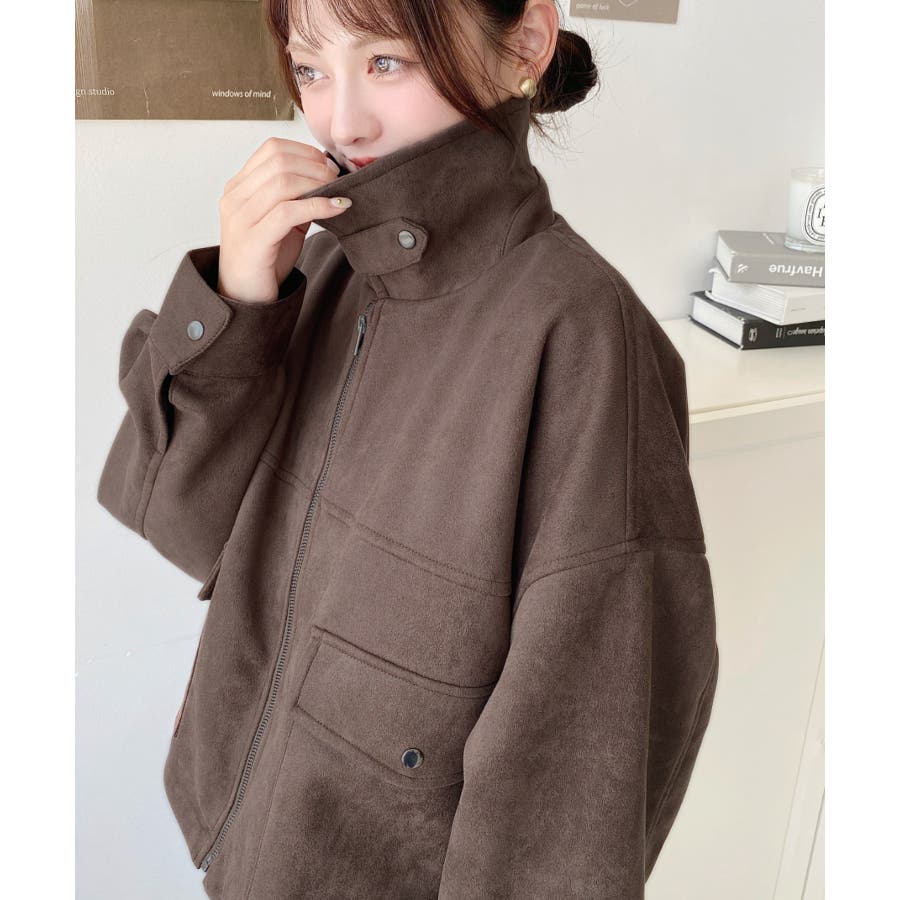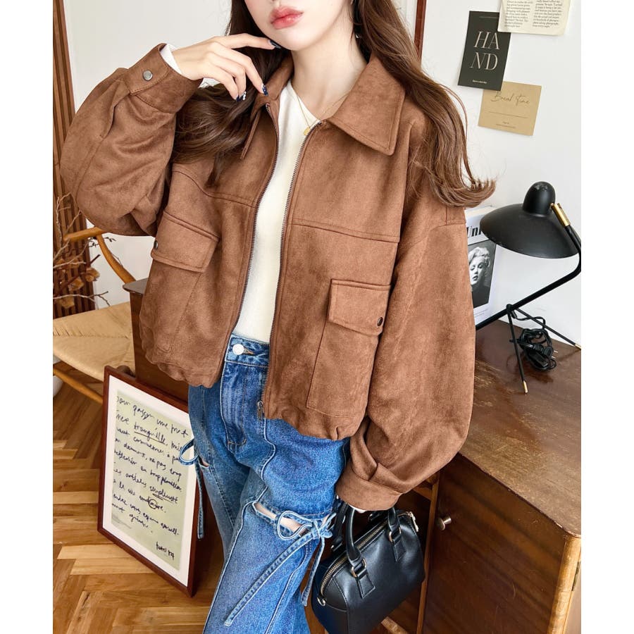 【軽やかなフェイクスエードで上品に魅せる、トレンドコーデに取り入れたい2WAYショートブルゾン♪】