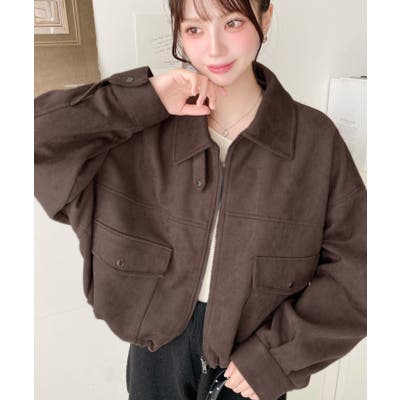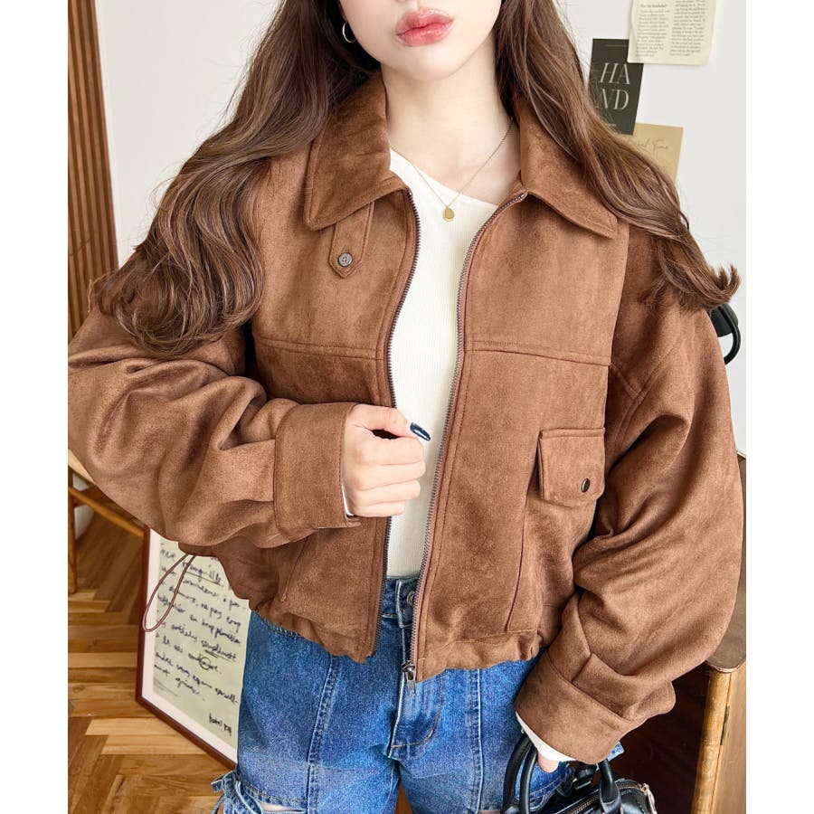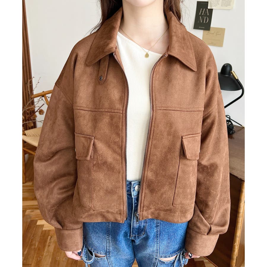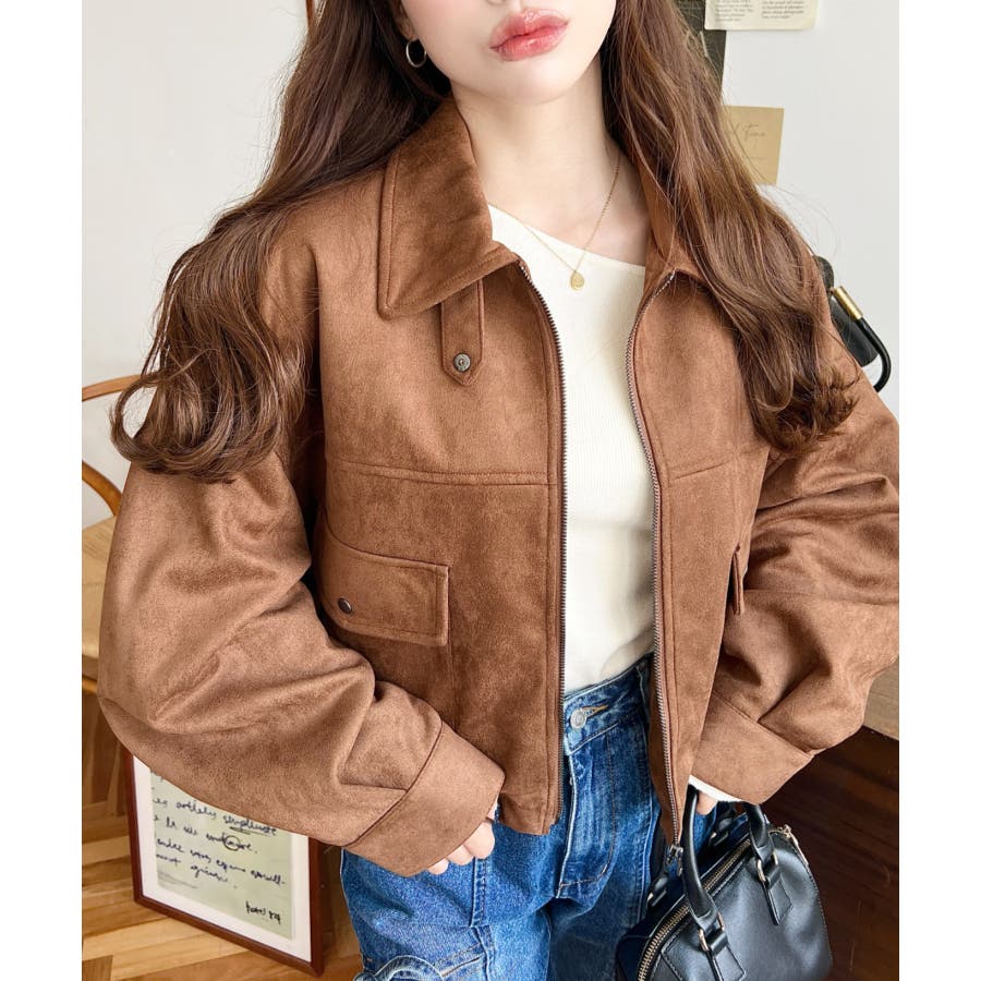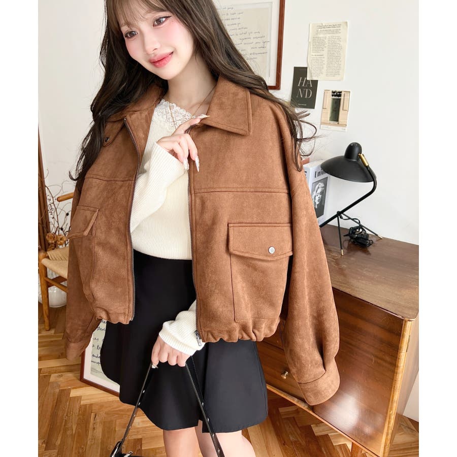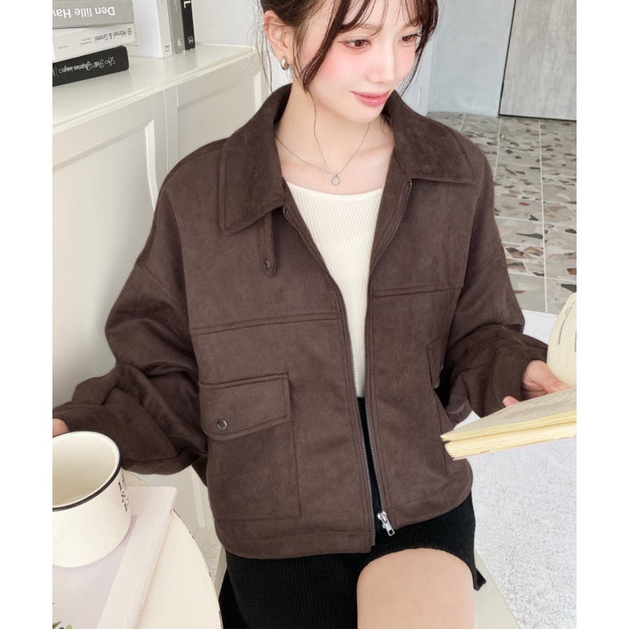 ・上品なフェイクスエードにトレンドライクなショート丈がお洒落見え間違いなしのフェイクレザーブルゾン!