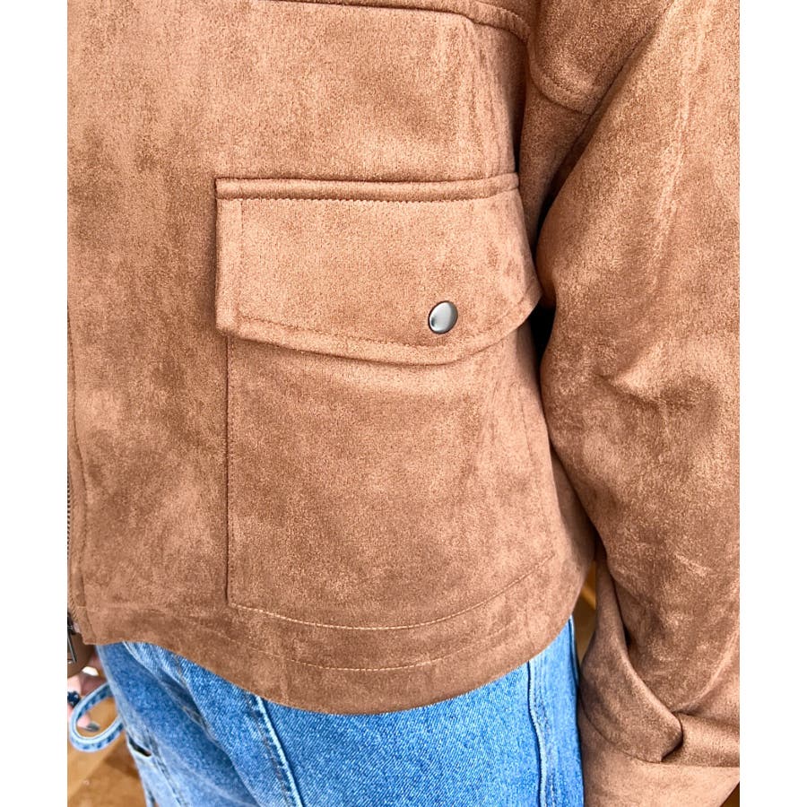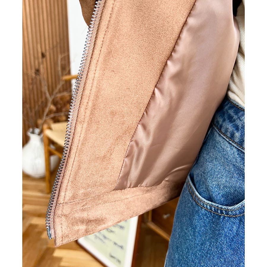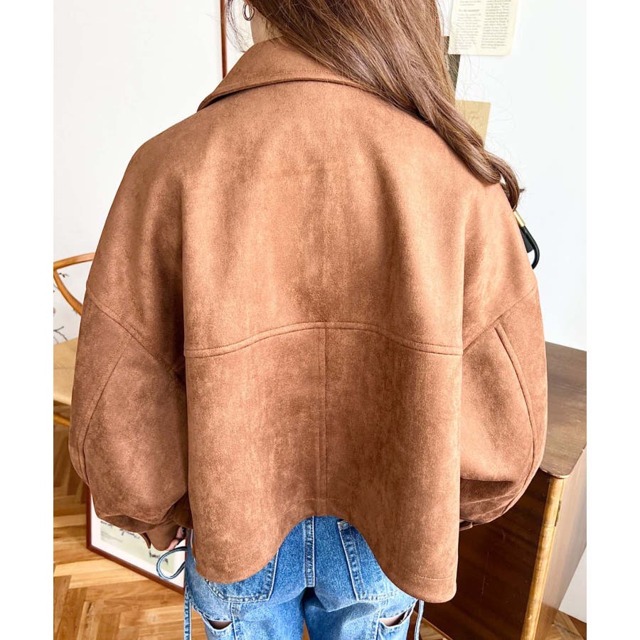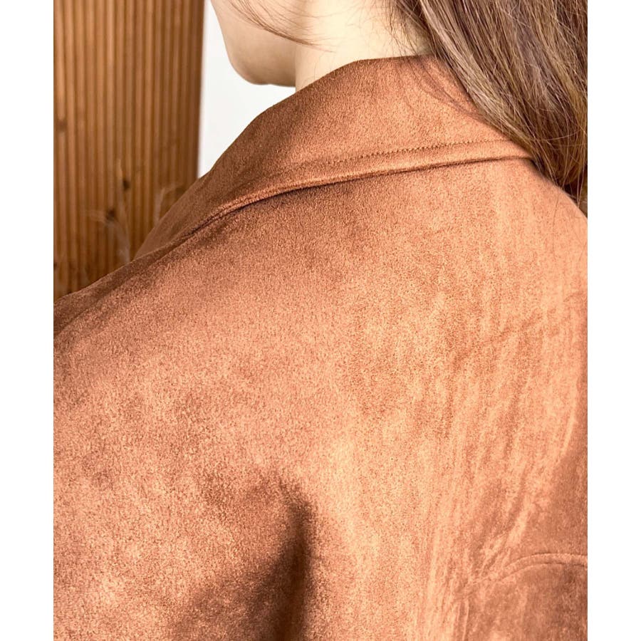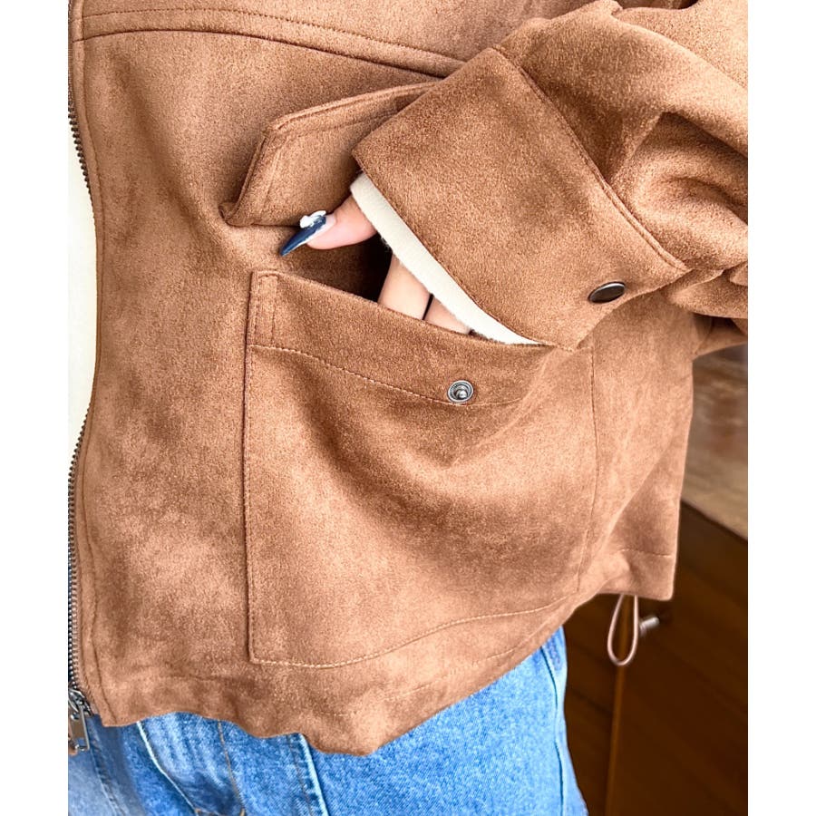 ・上品なフェイクスエードにトレンドライクなショート丈がお洒落見え間違いなしのフェイクレザーブルゾン!