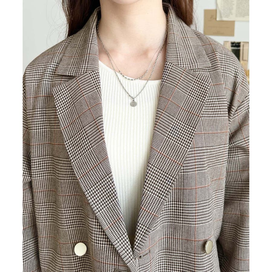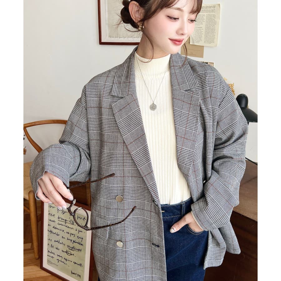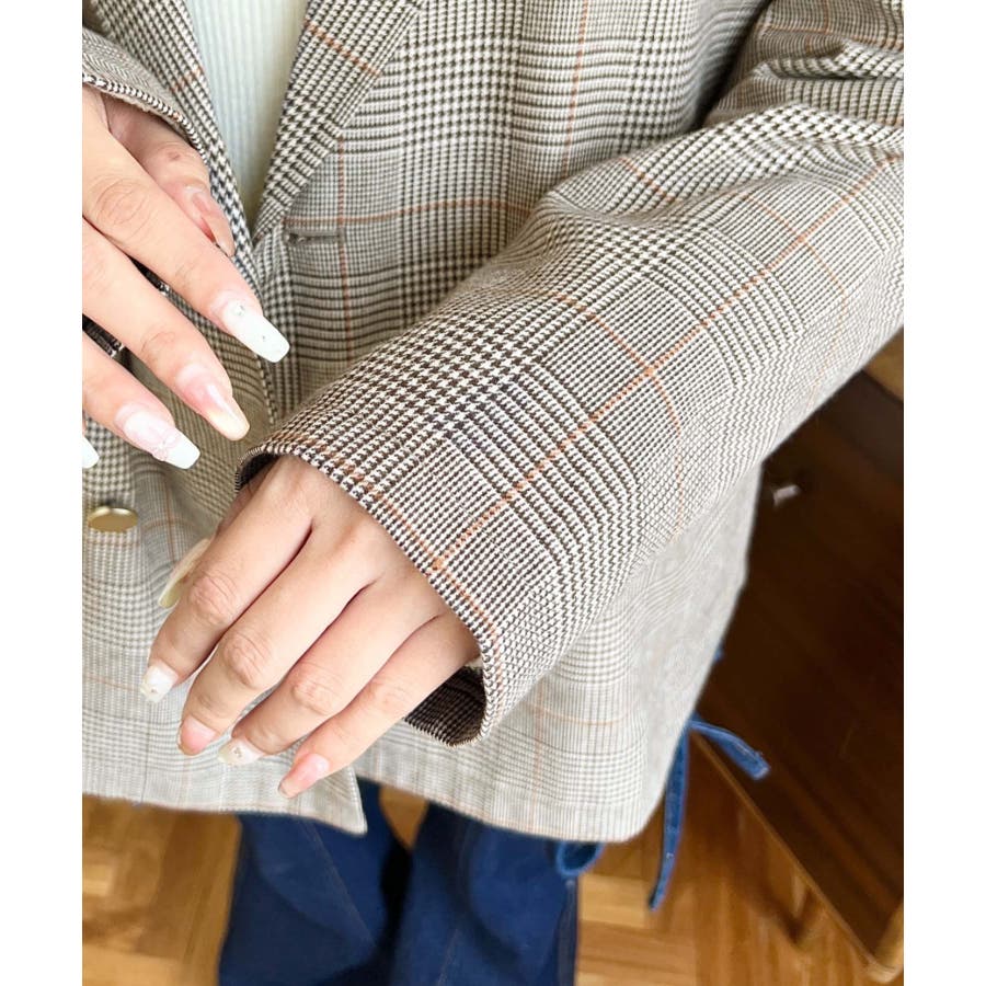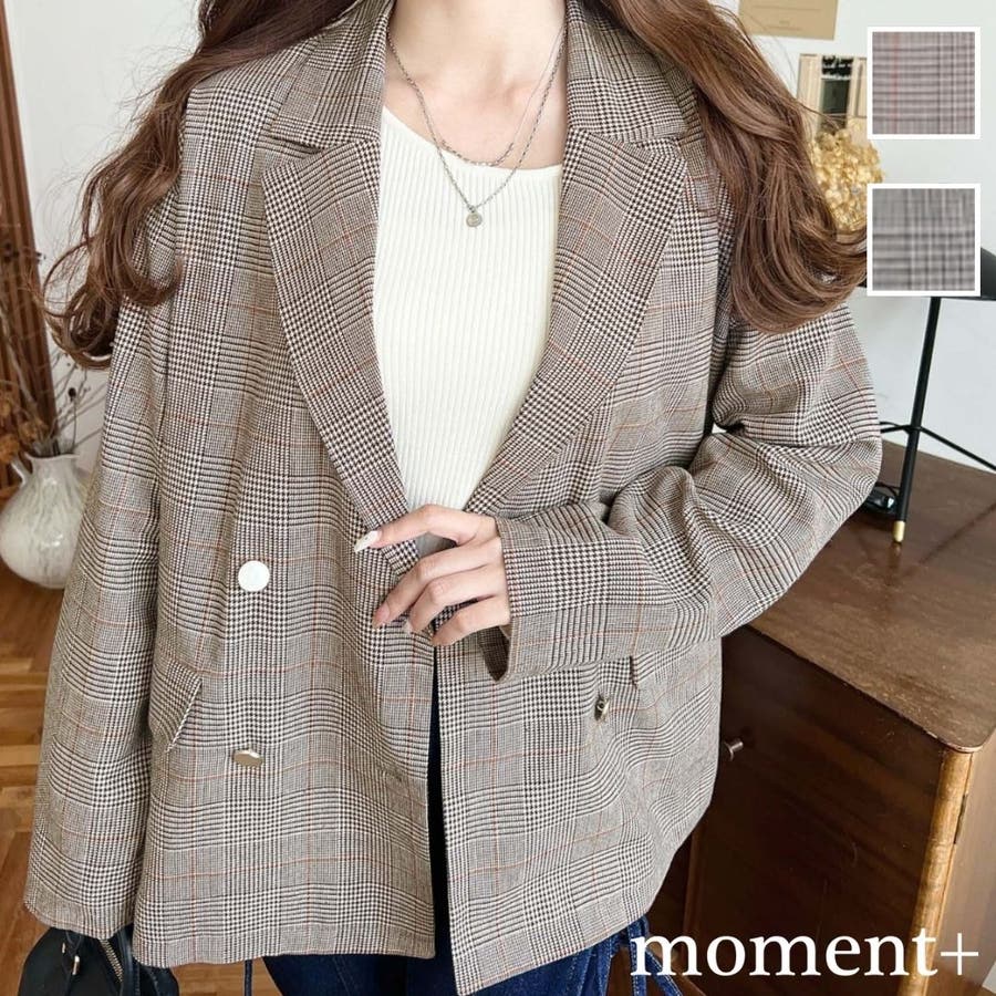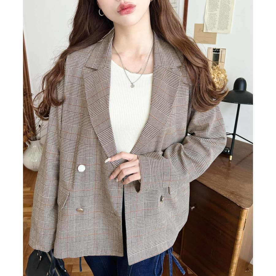 【マットゴールドのボタンが映える♪ グレンチェックダブルテーラードジャケット】