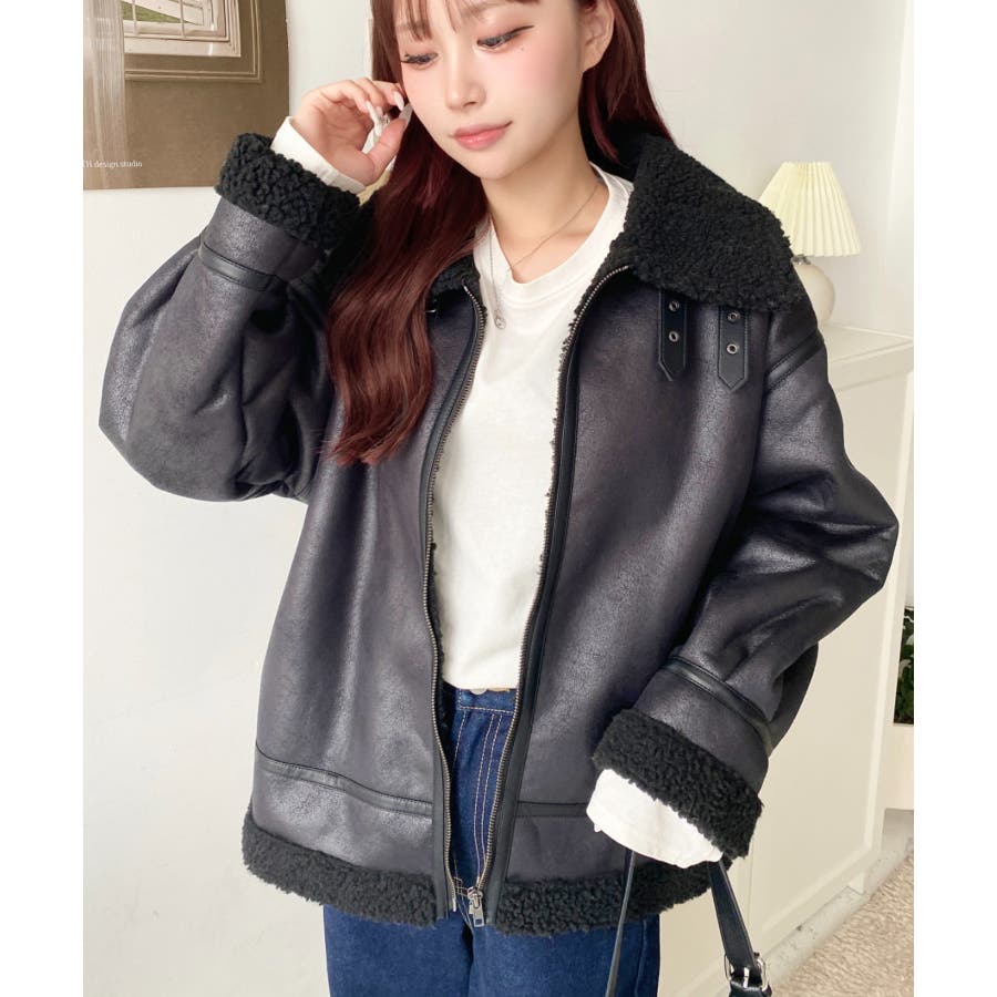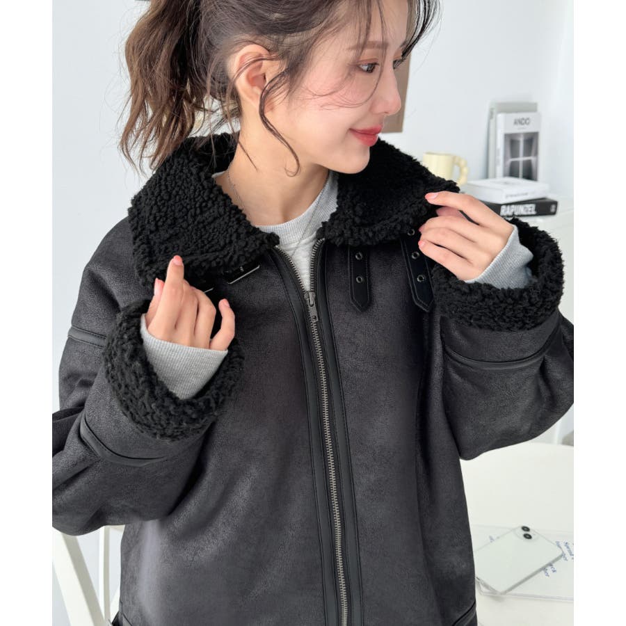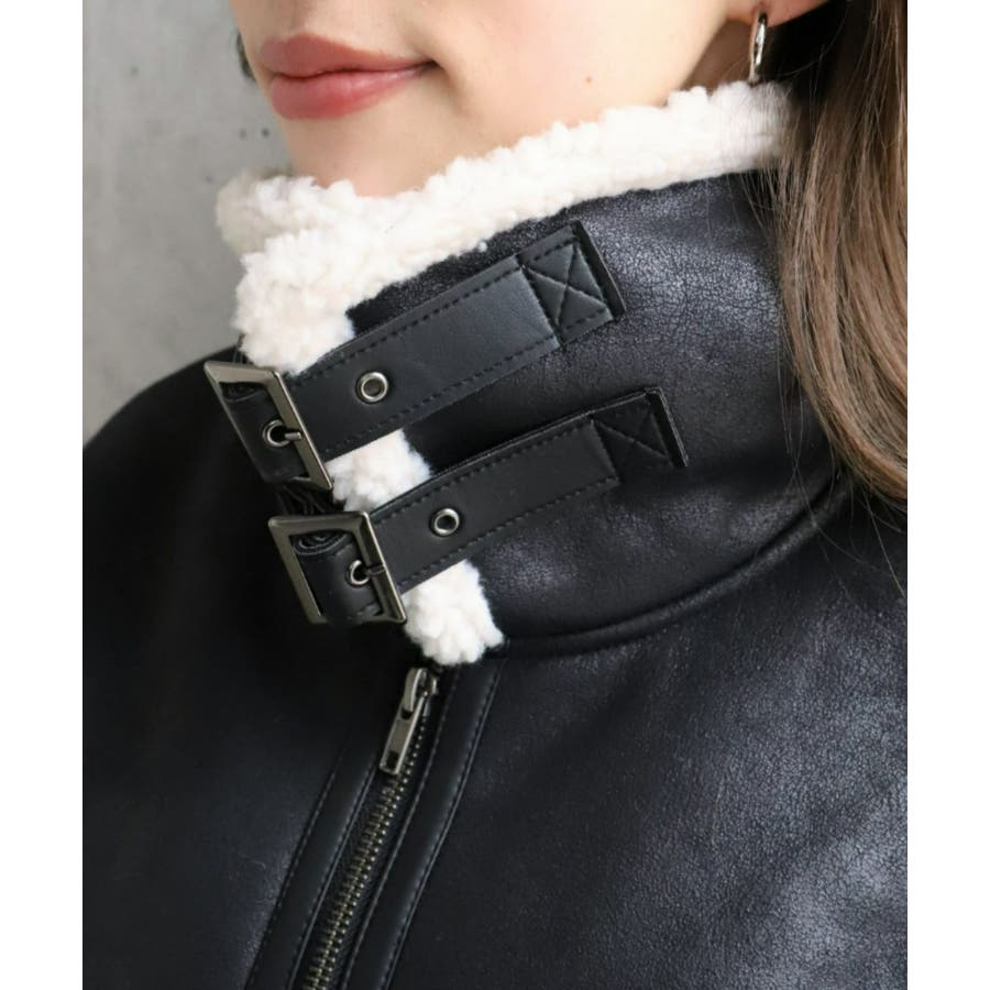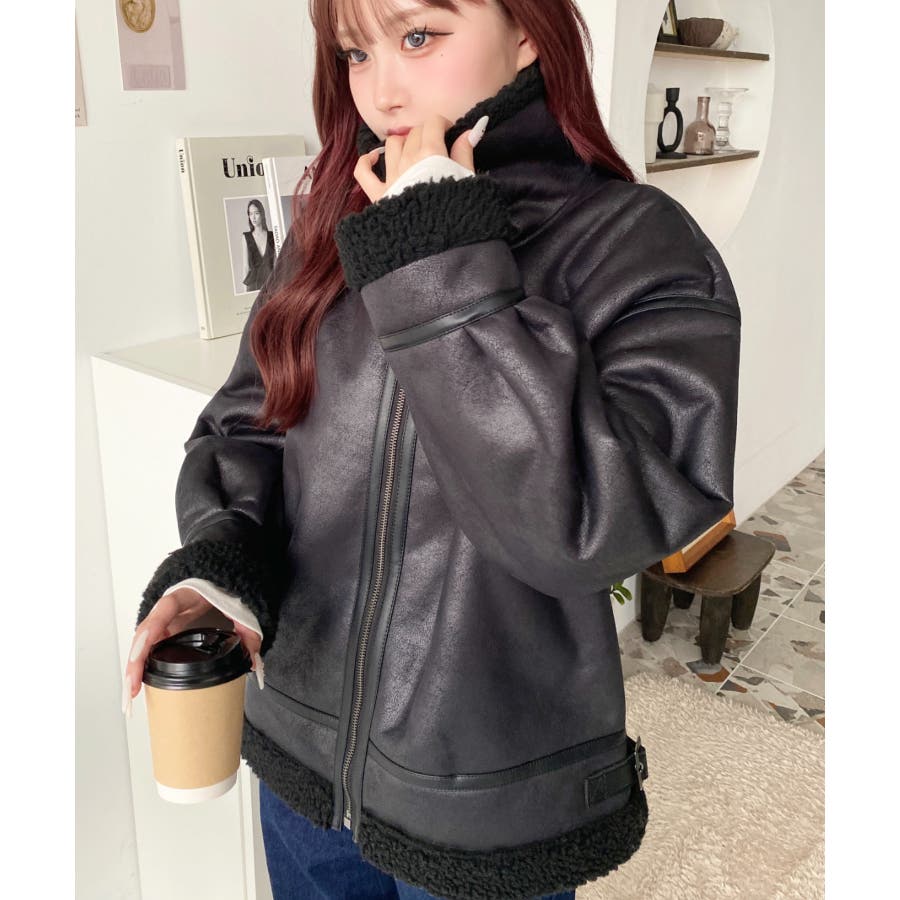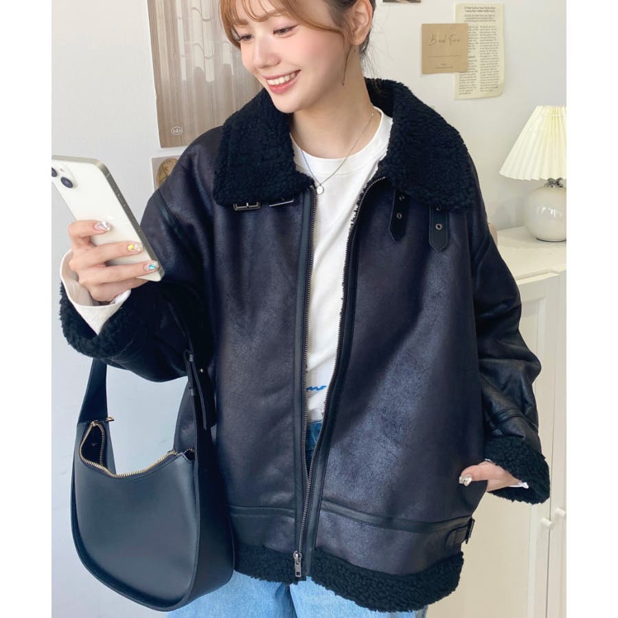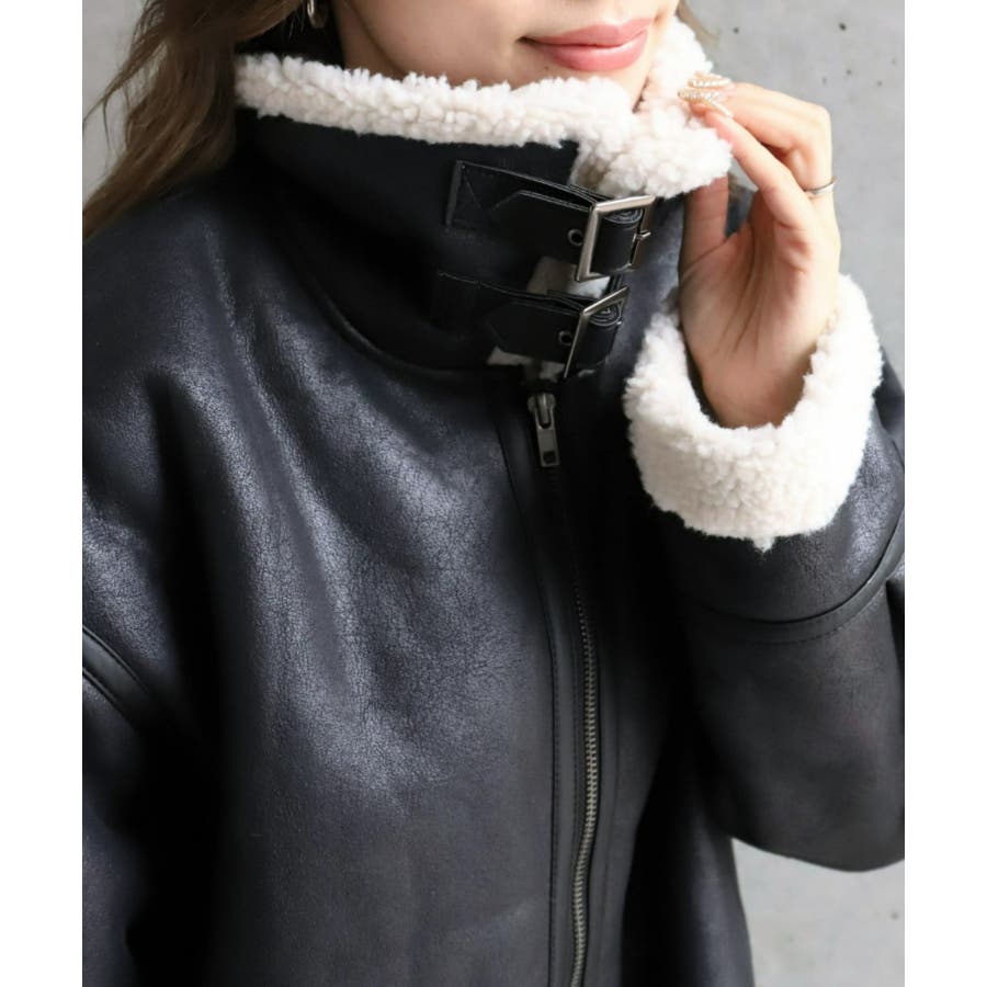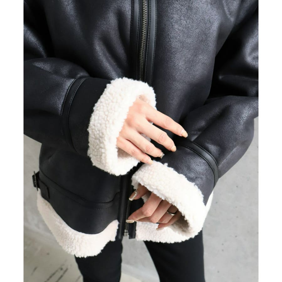 フェイクレザー×ボアフェイクムートンフライトジャケットブルゾン