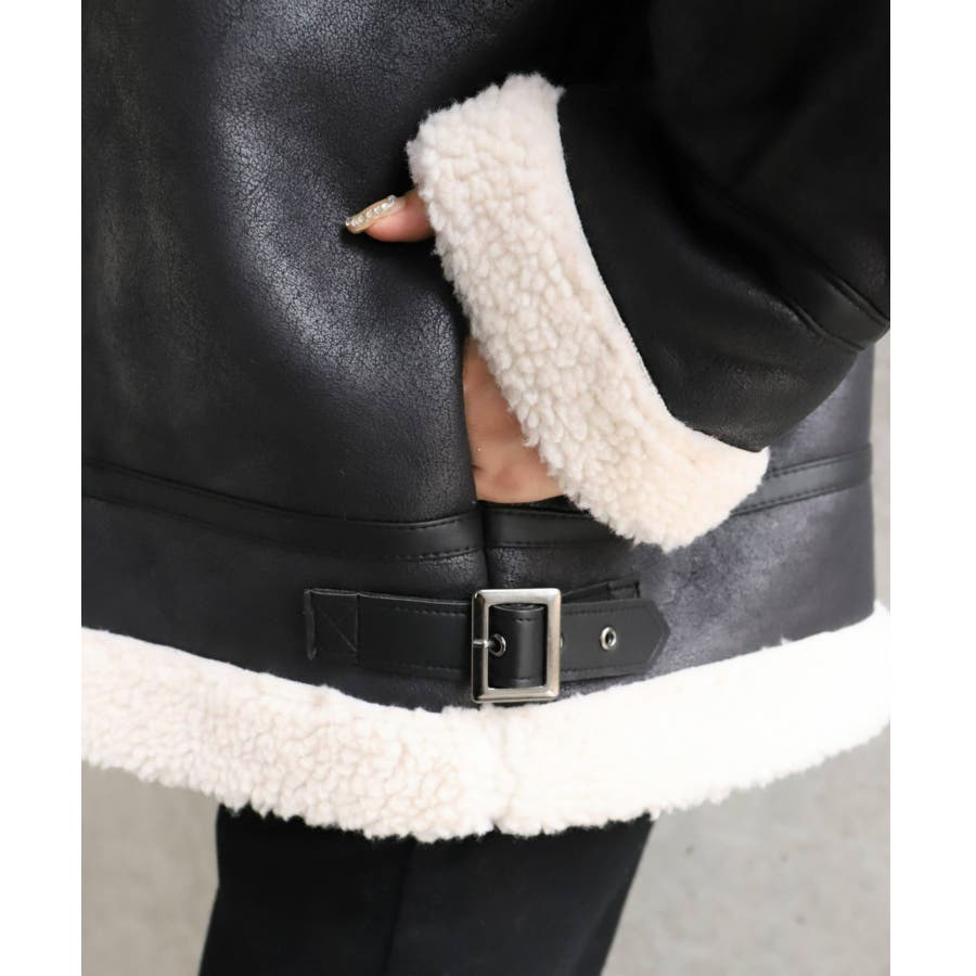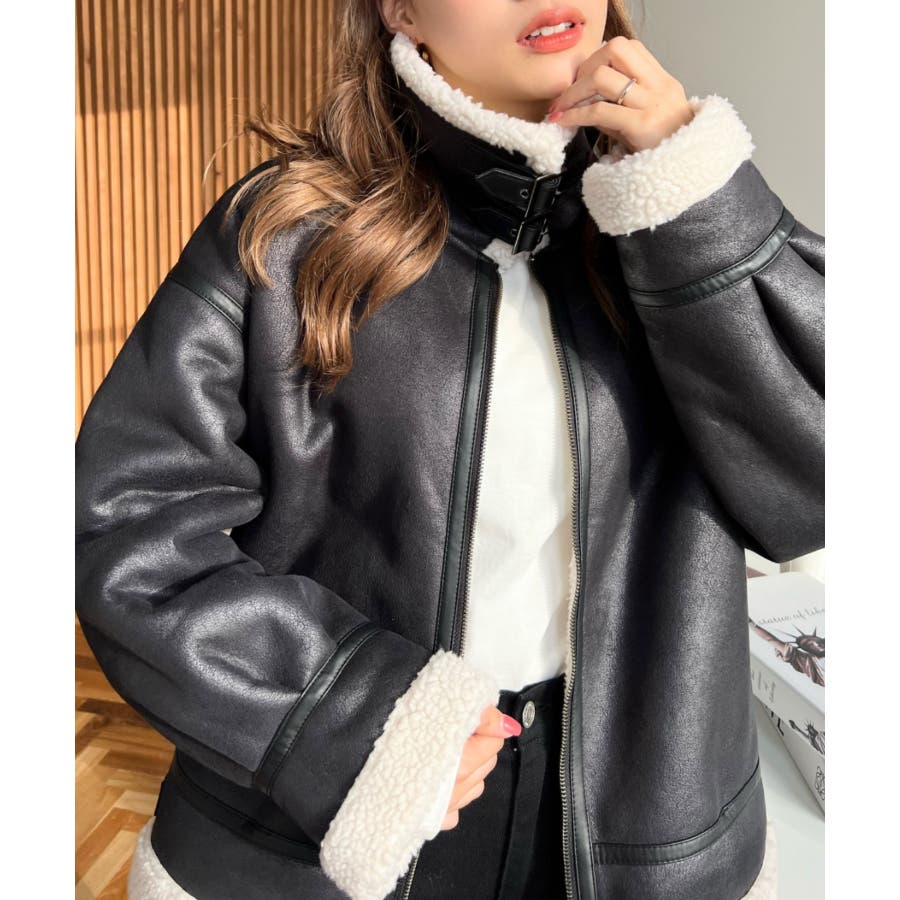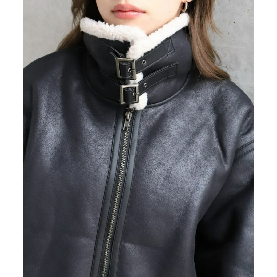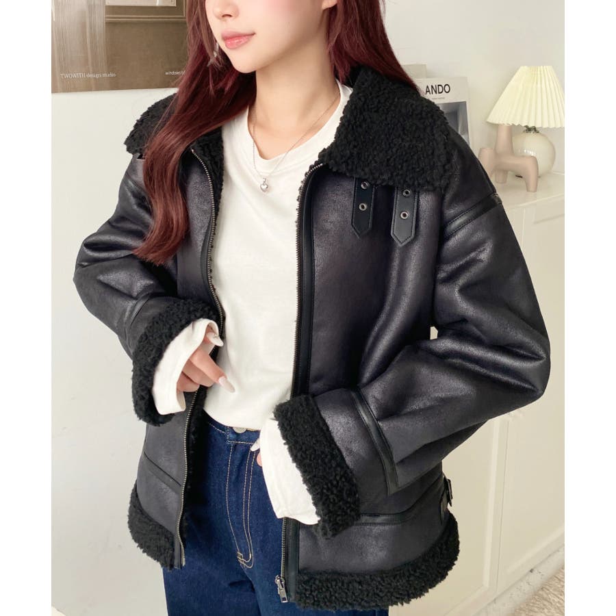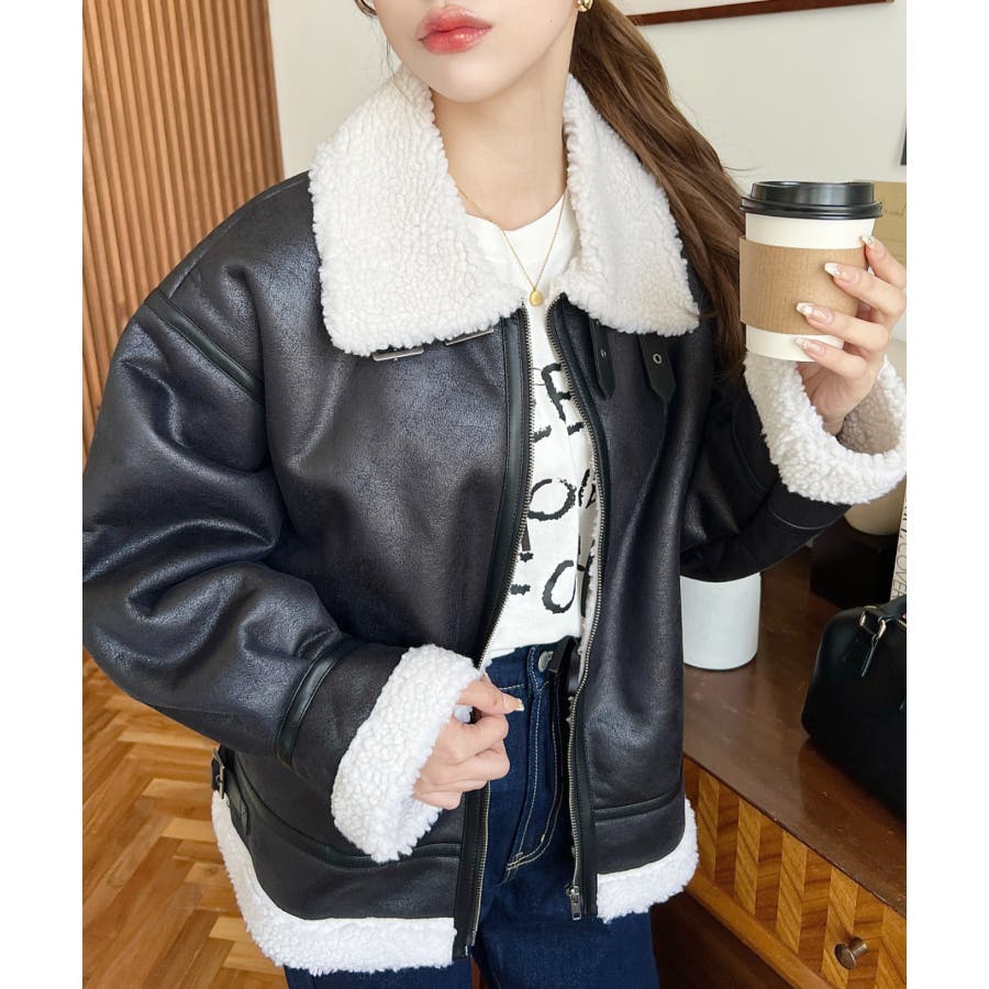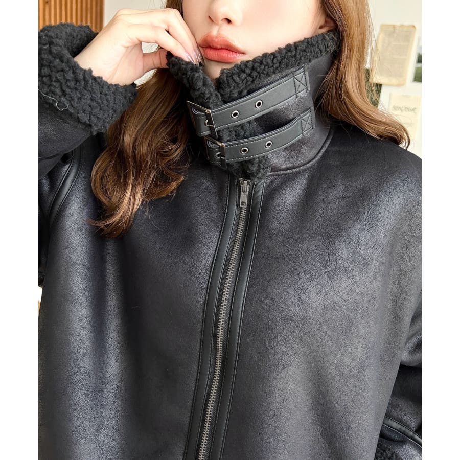 フェイクレザー×ボアフェイクムートンフライトジャケットブルゾン