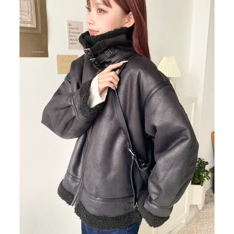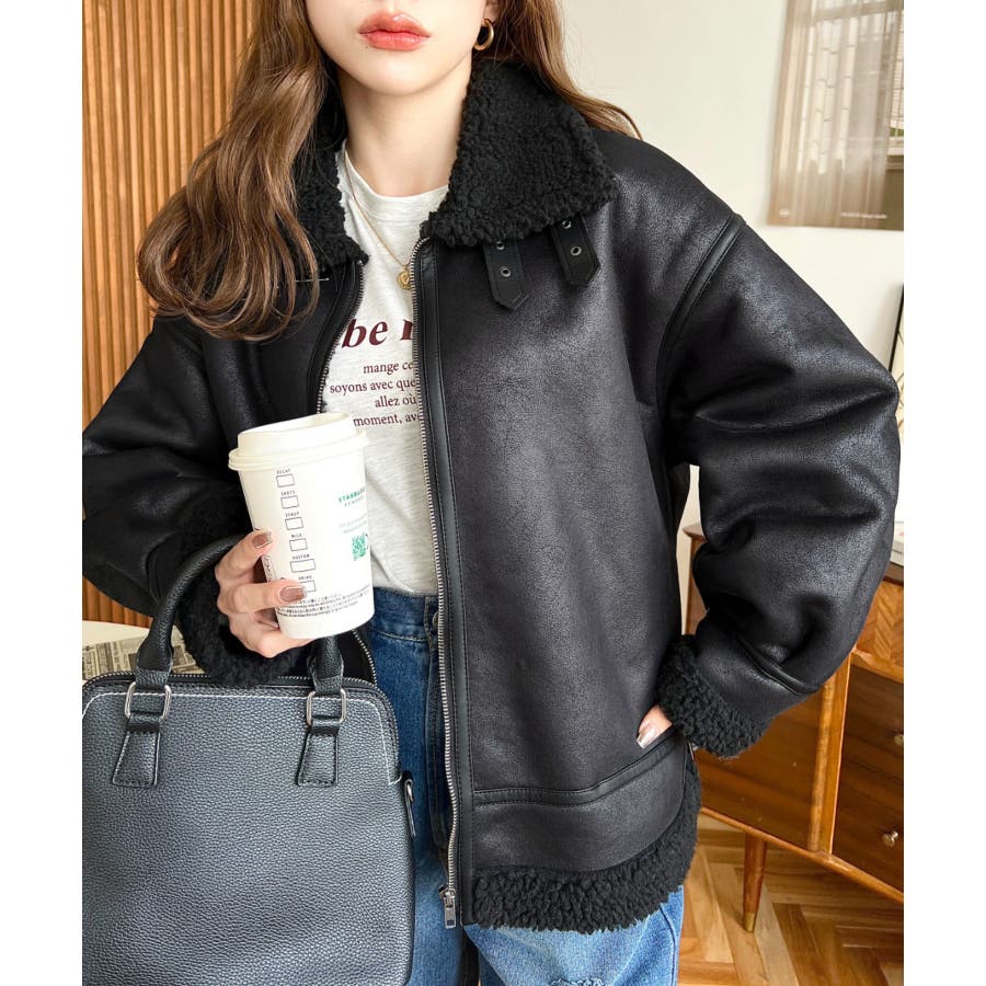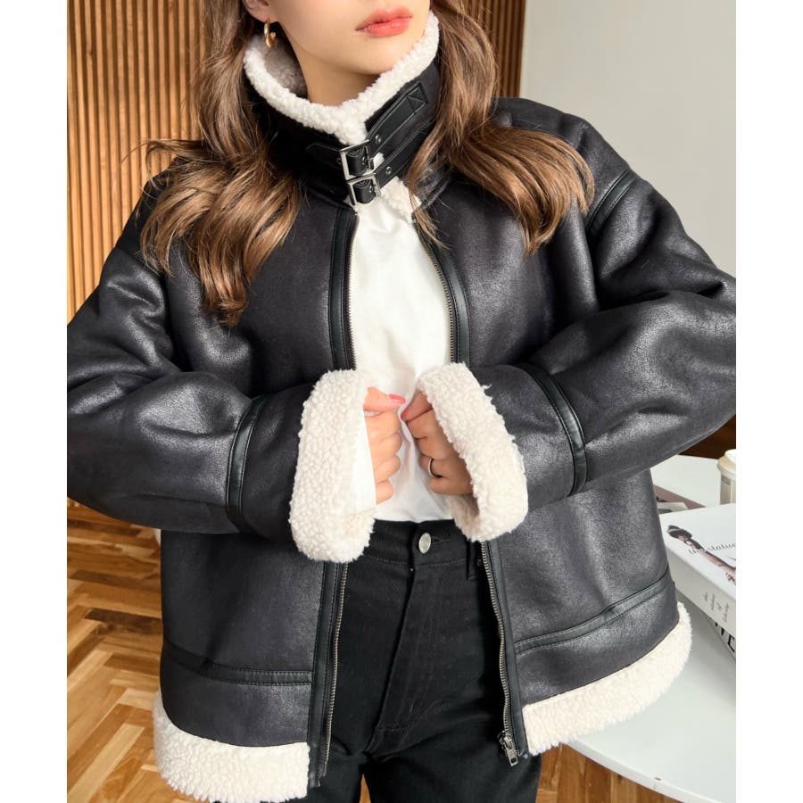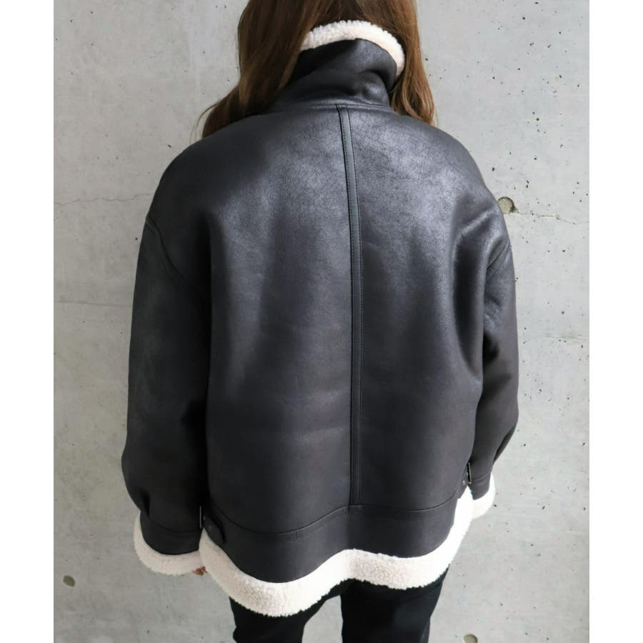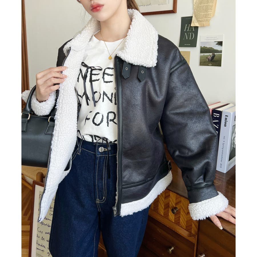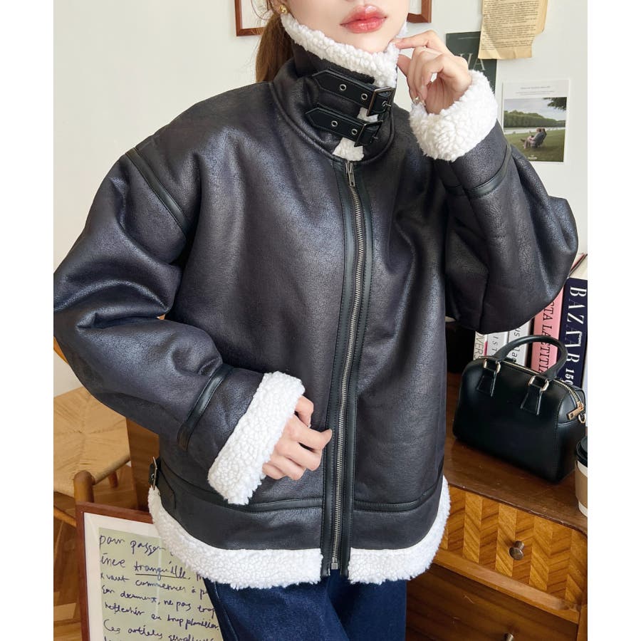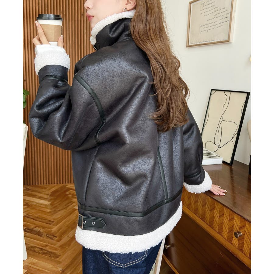 フェイクレザー×ボアフェイクムートンフライトジャケットブルゾン