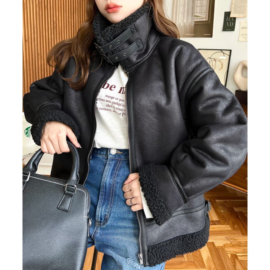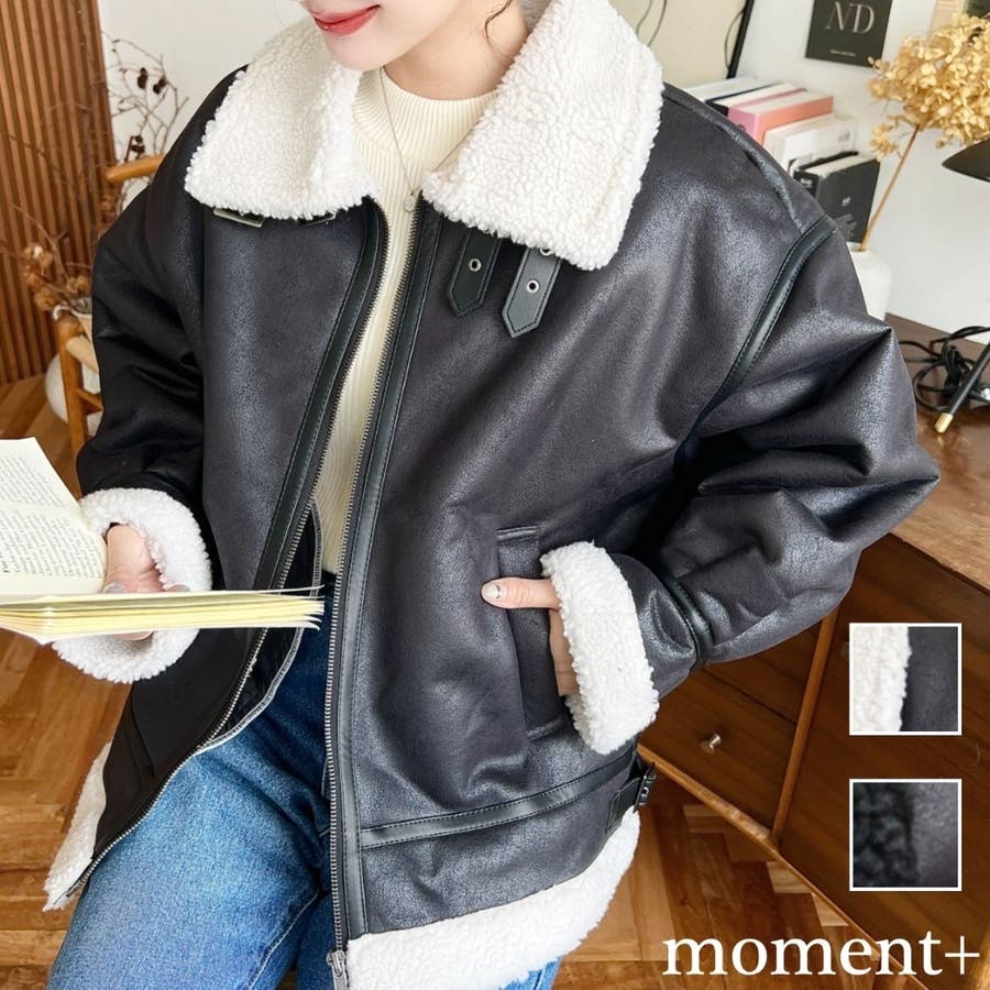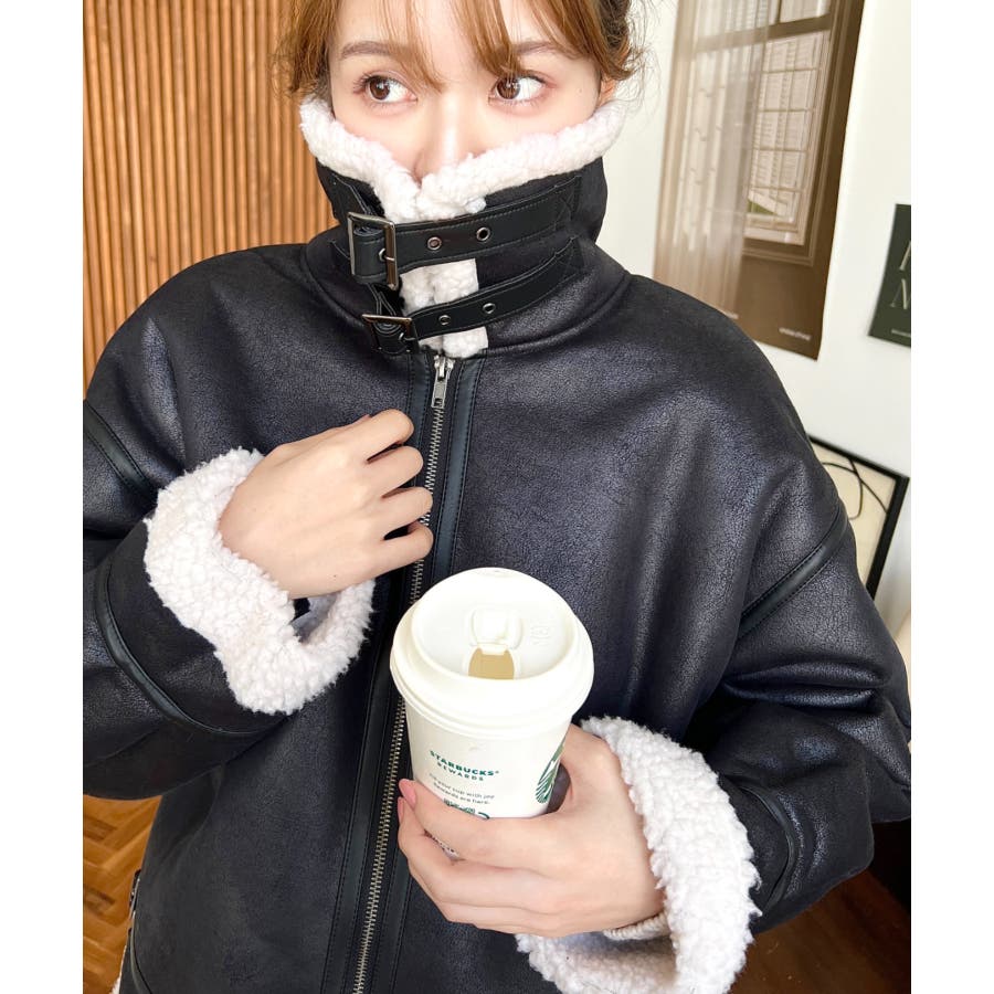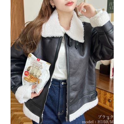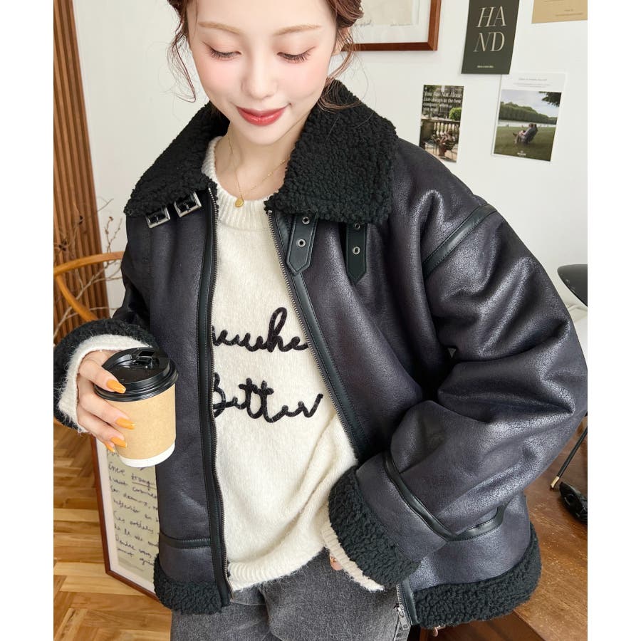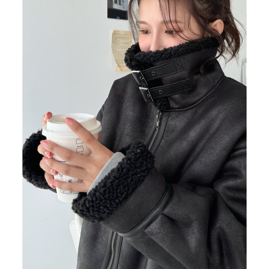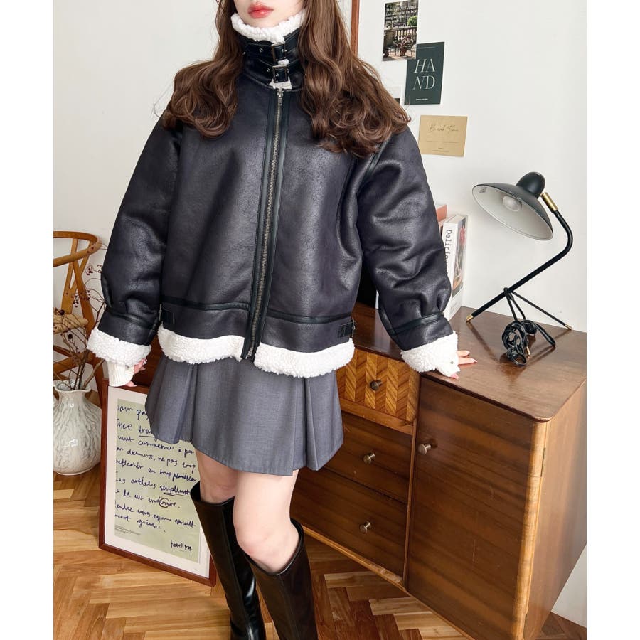 フェイクレザー×ボアフェイクムートンフライトジャケットブルゾン