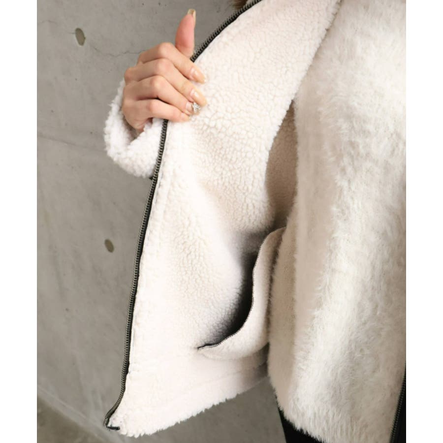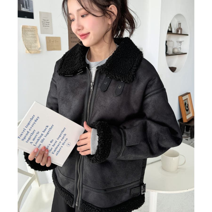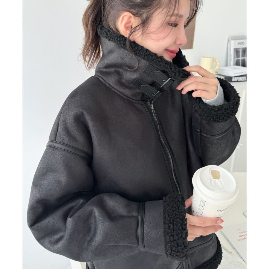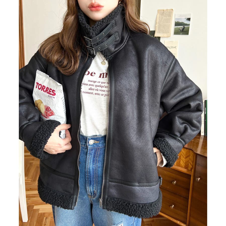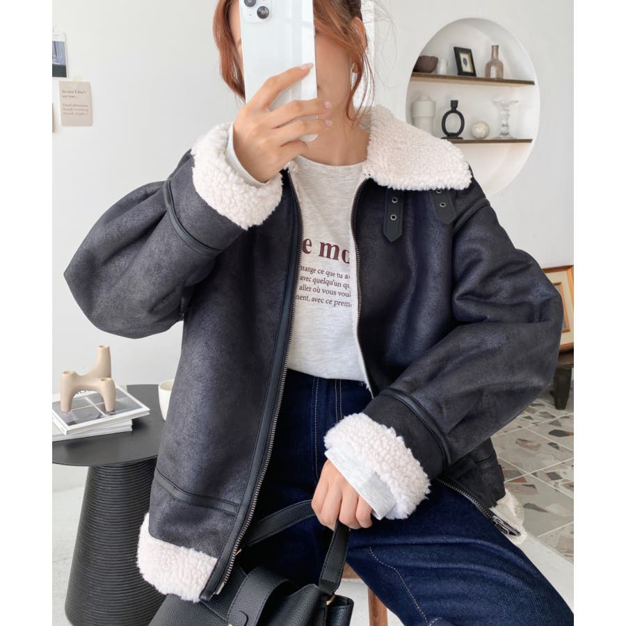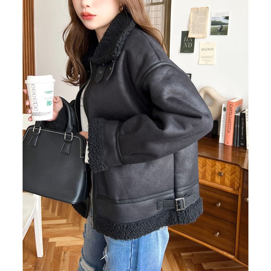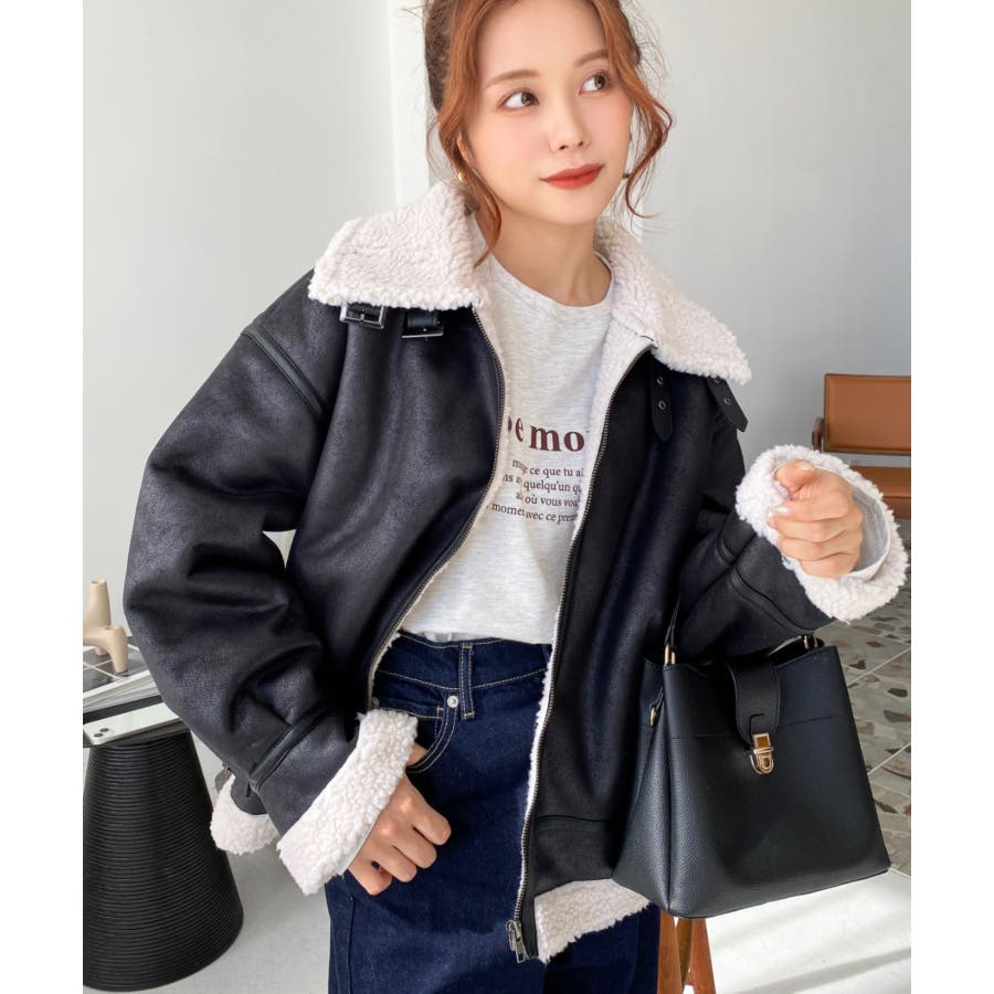 フェイクレザー×ボアフェイクムートンフライトジャケットブルゾン