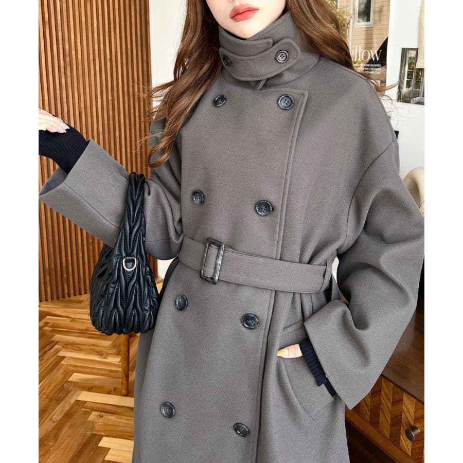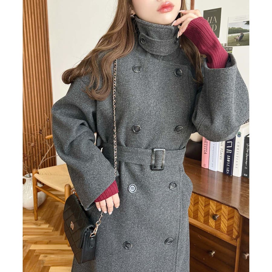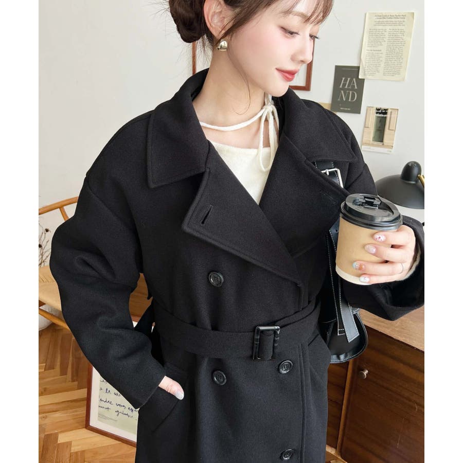 2WAYカラーアレンジロングトレンチコートニットメルトン