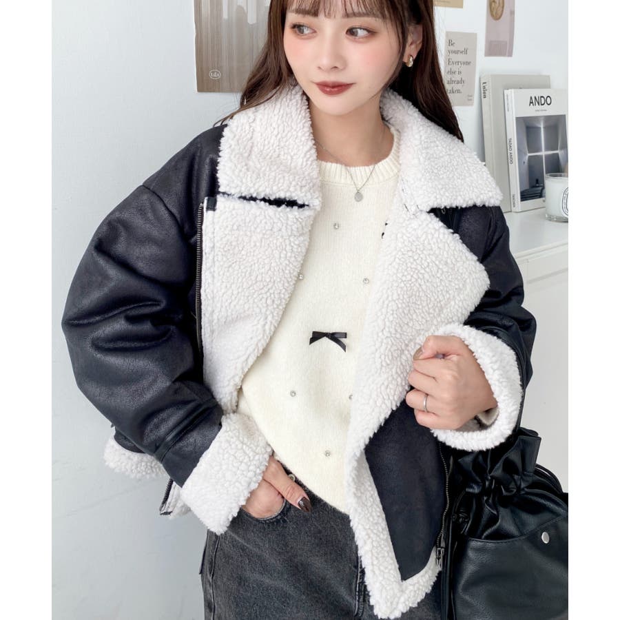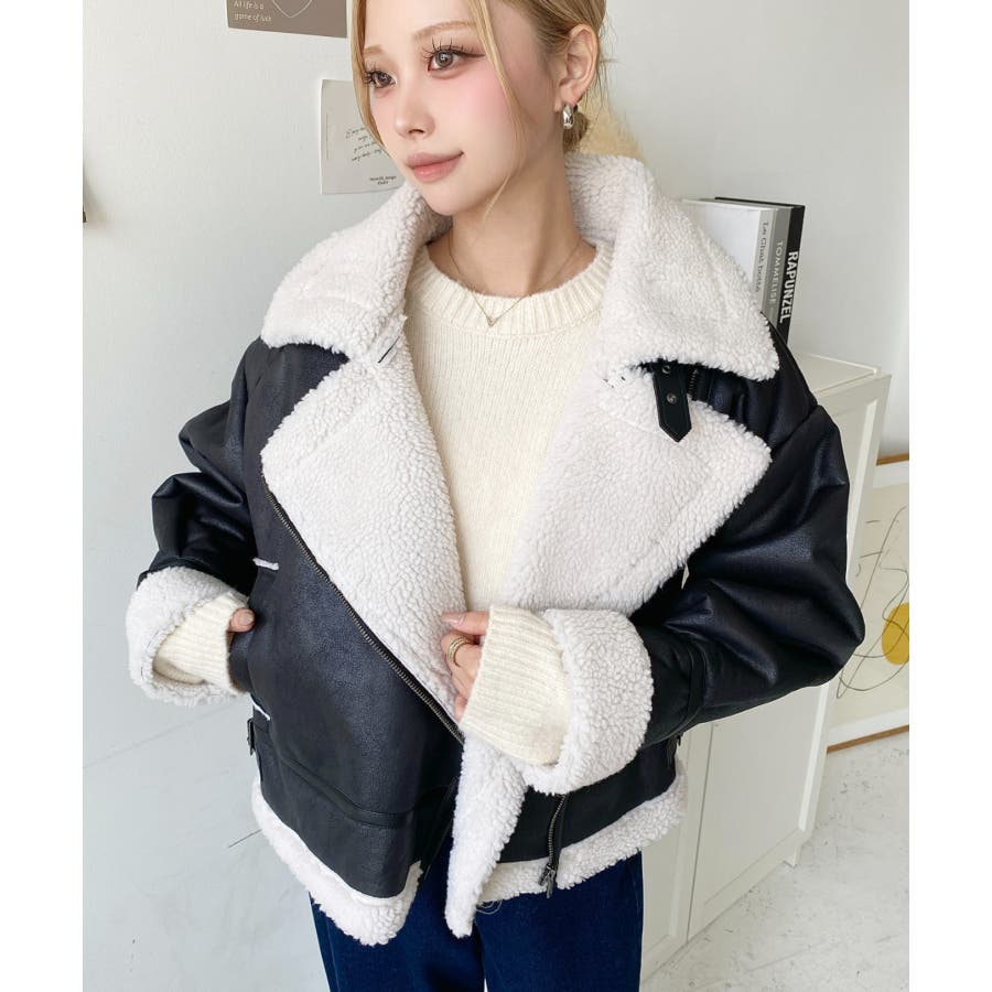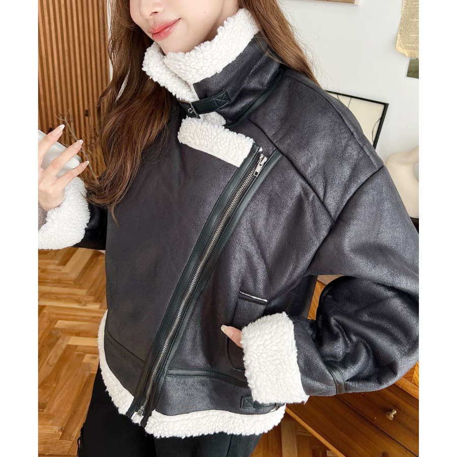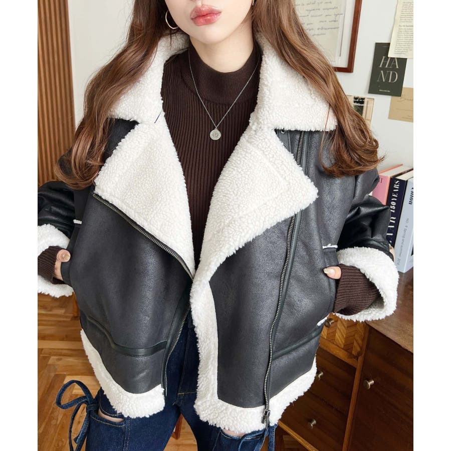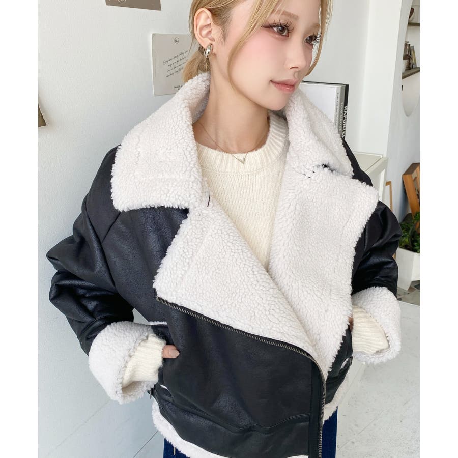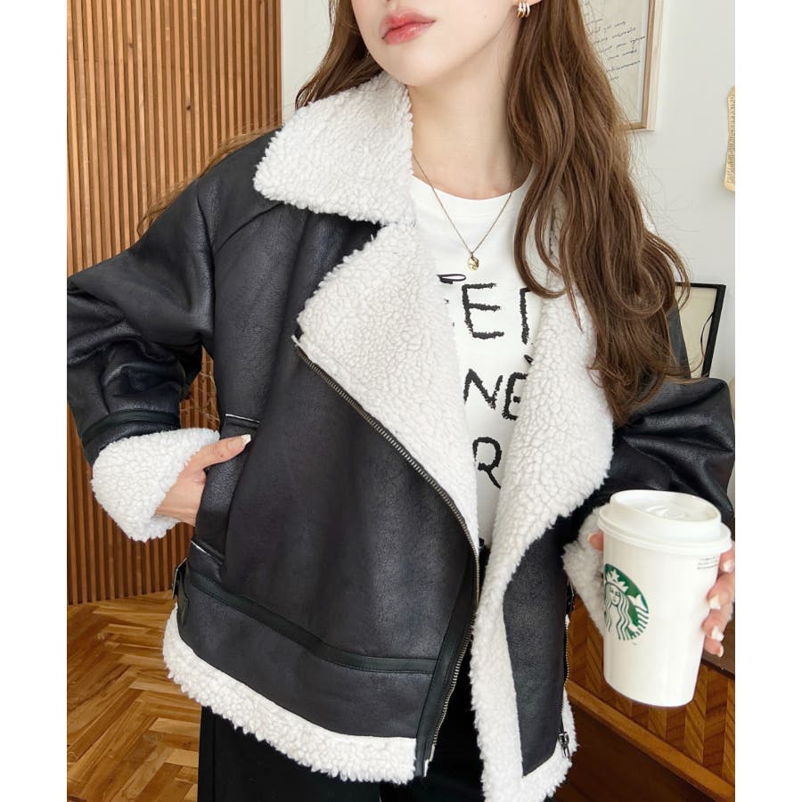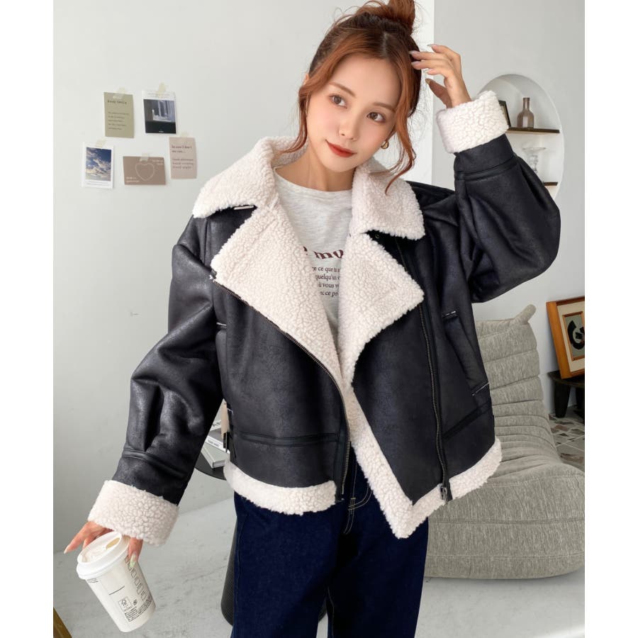 フェイクレザー×ボアフェイクムートンライダースジャケットブルゾン
