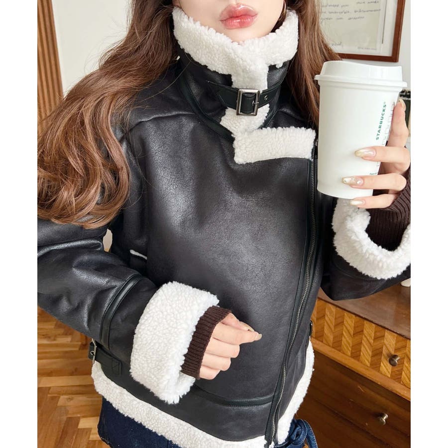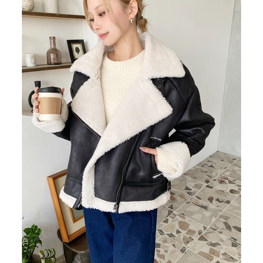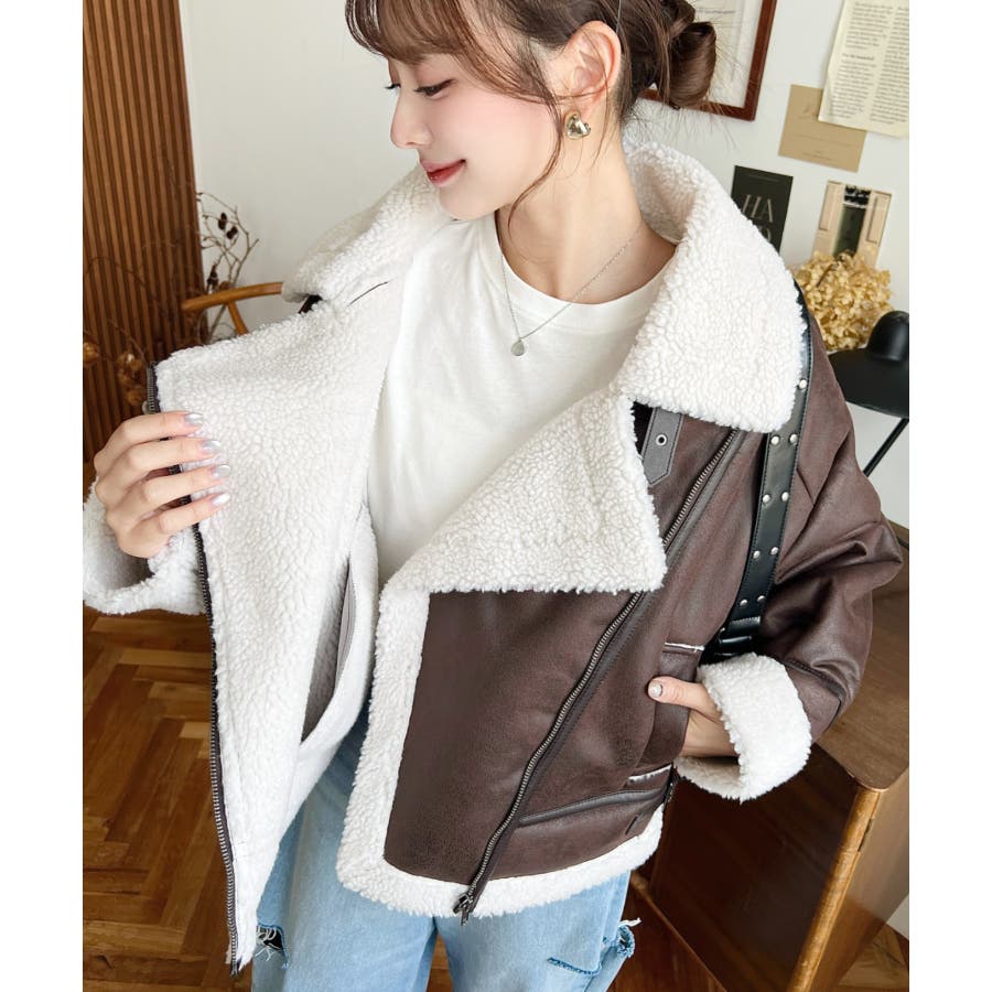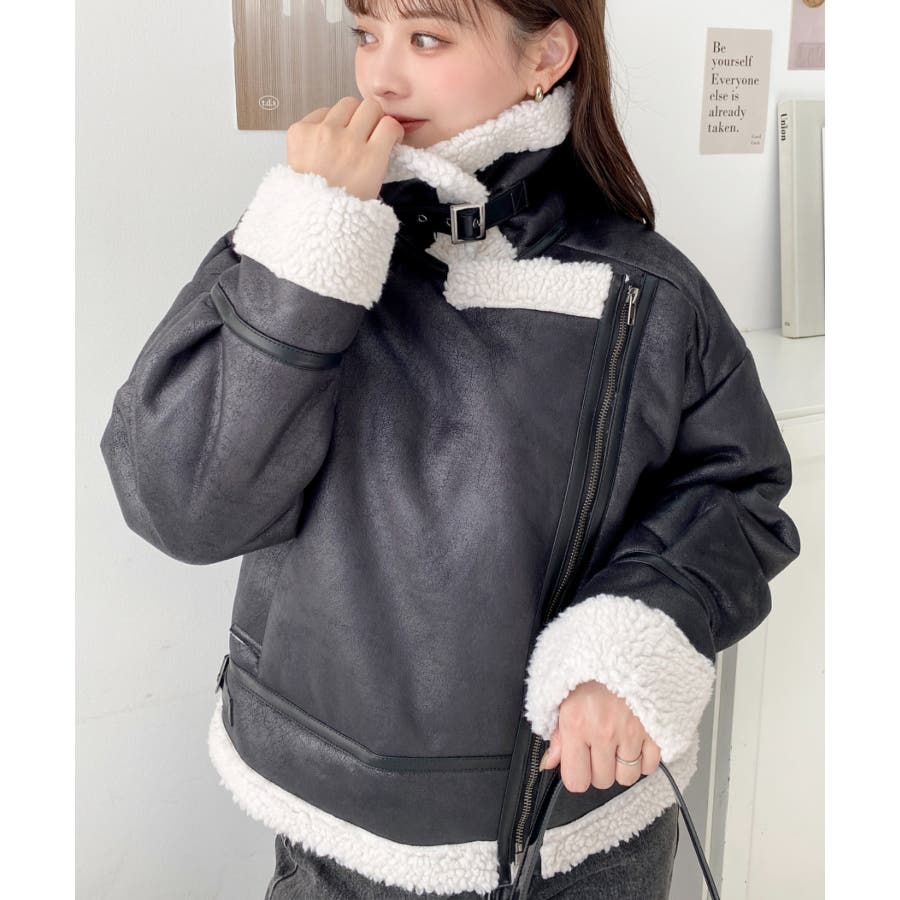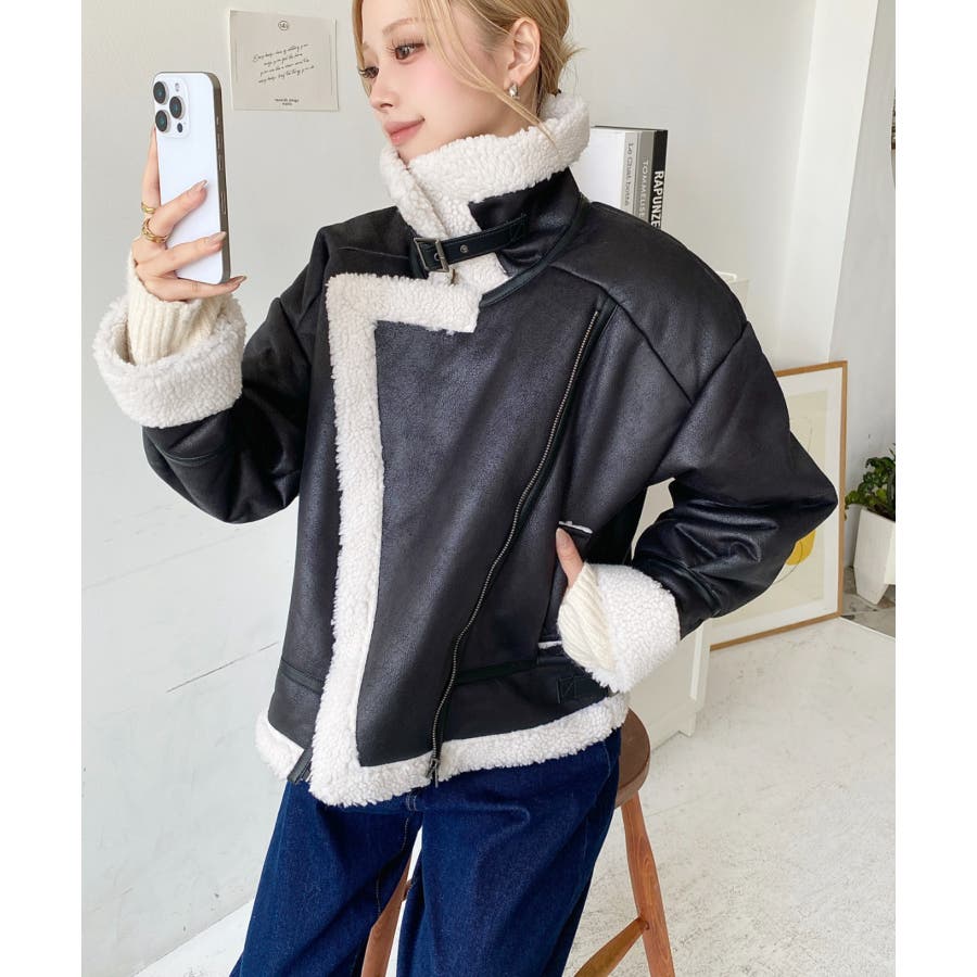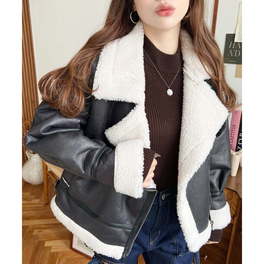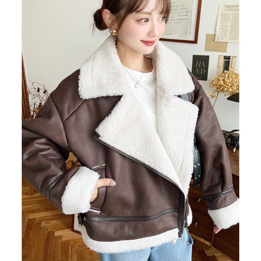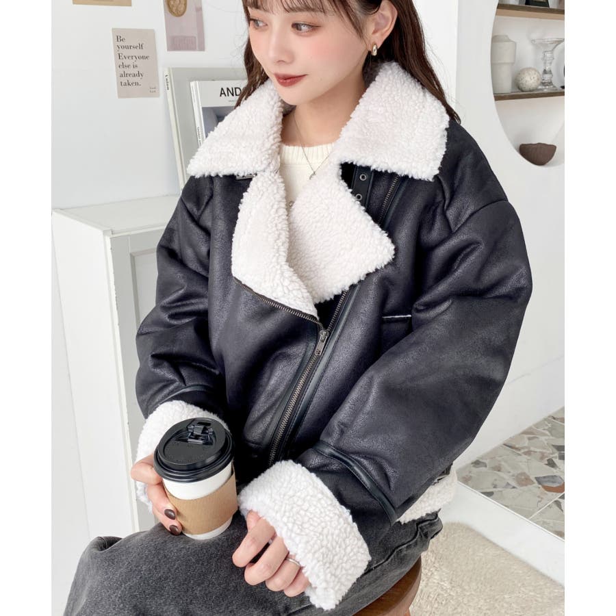 フェイクレザー×ボアフェイクムートンライダースジャケットブルゾン