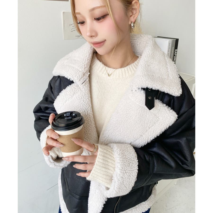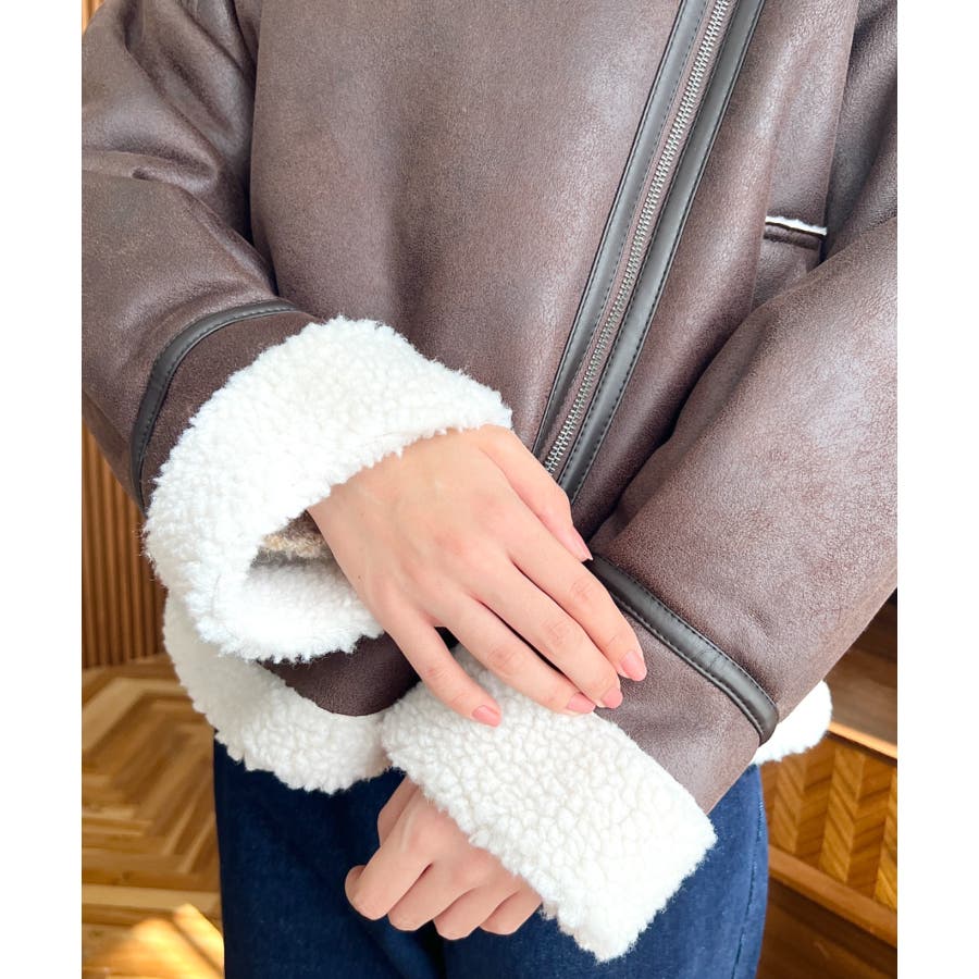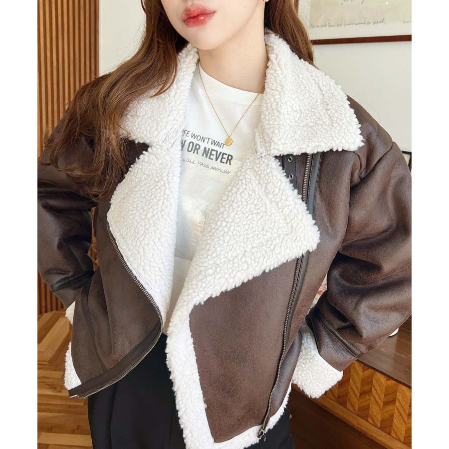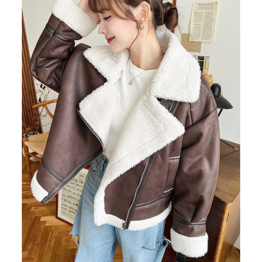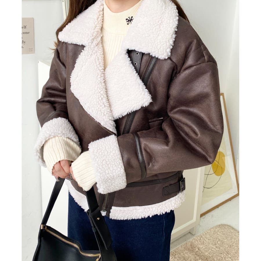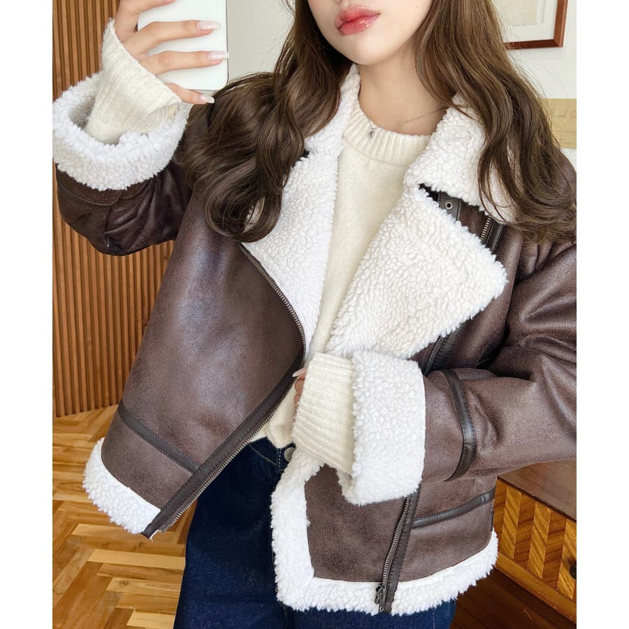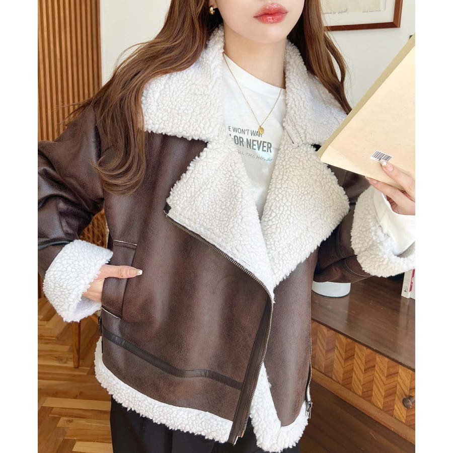 フェイクレザー×ボアフェイクムートンライダースジャケットブルゾン
