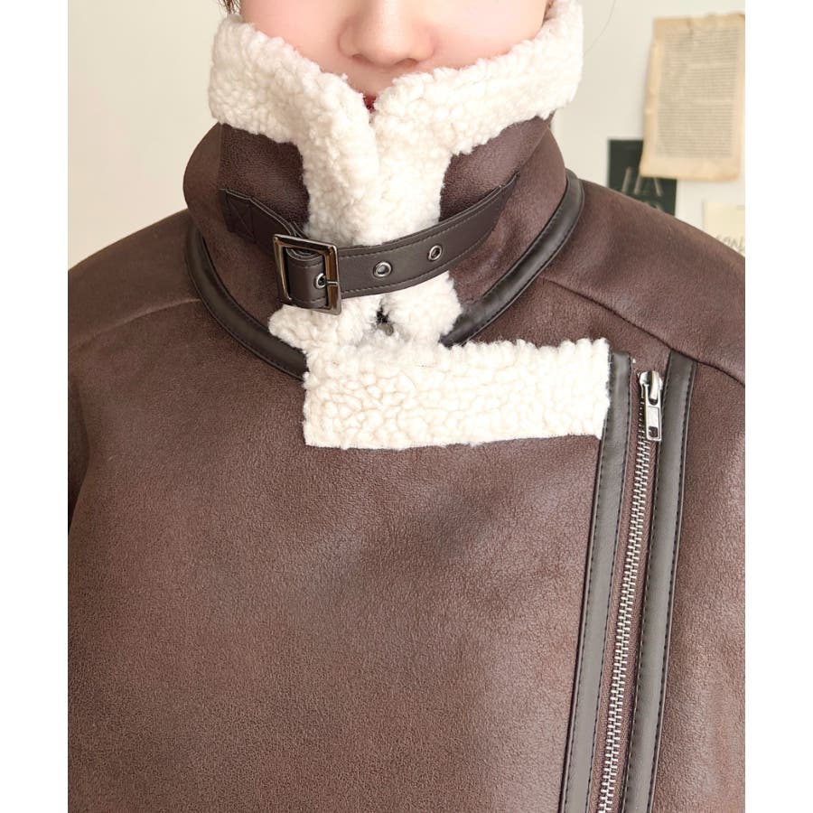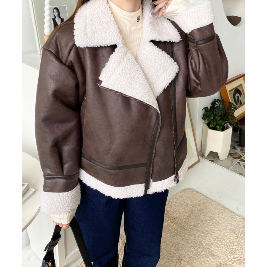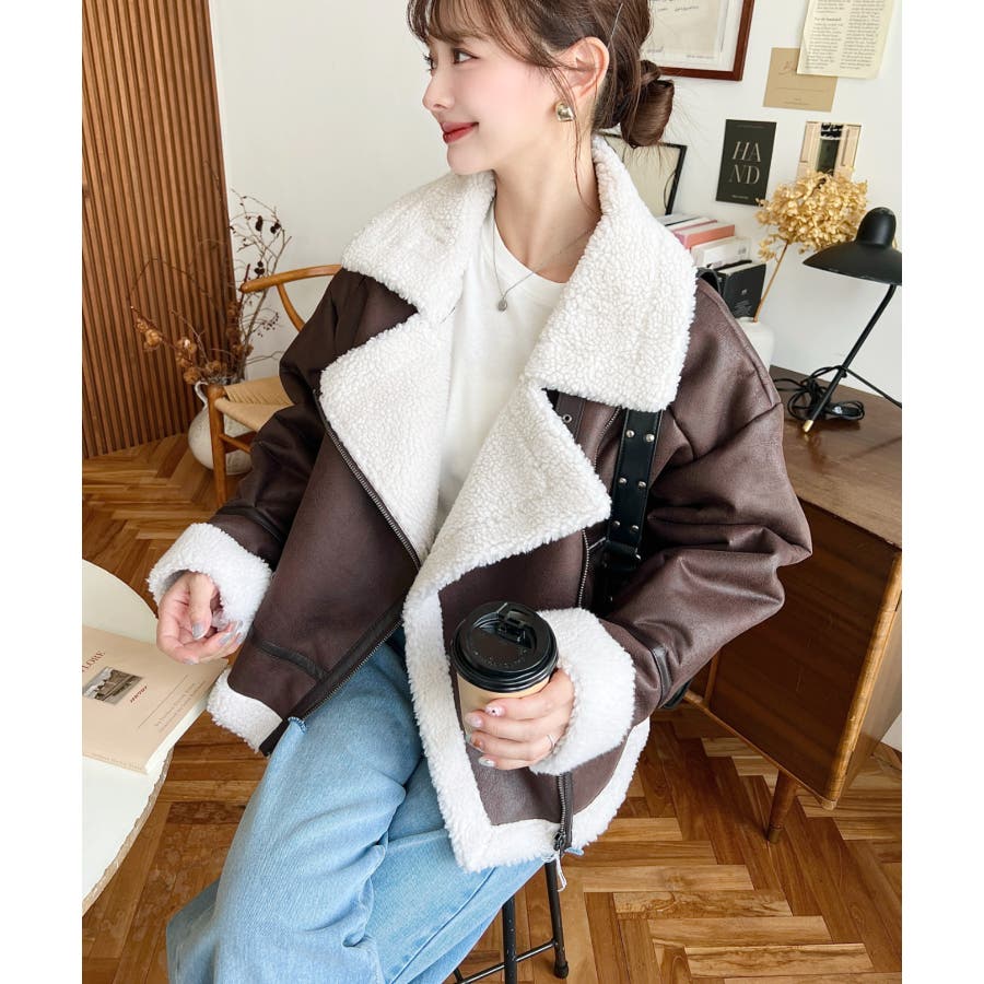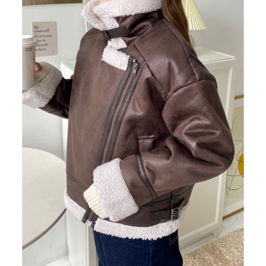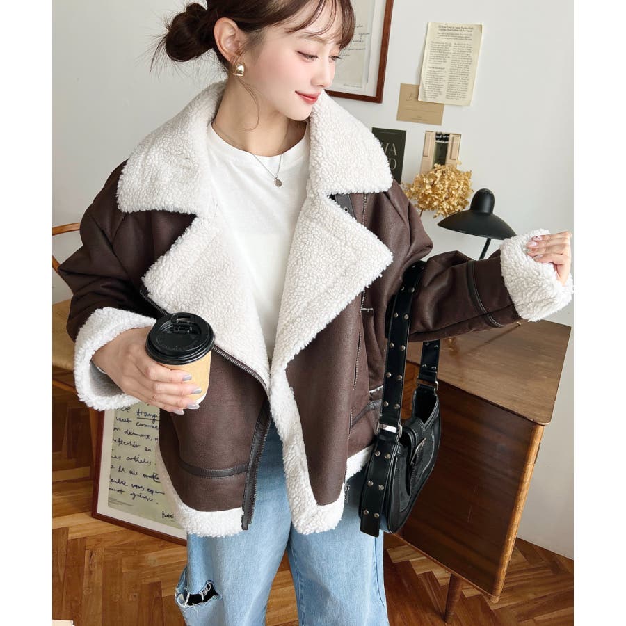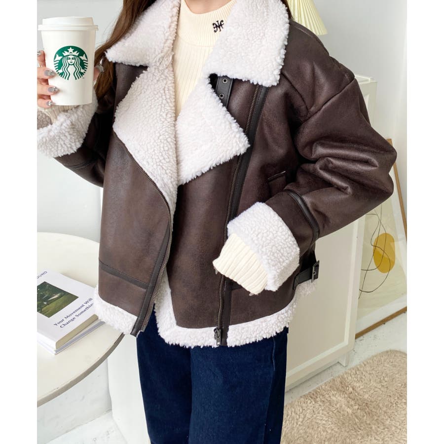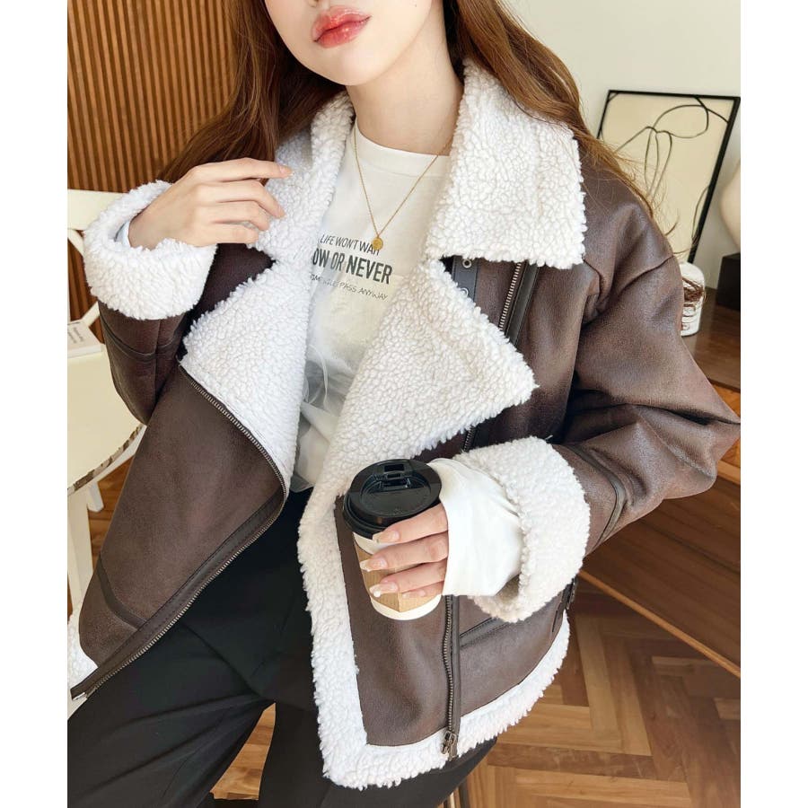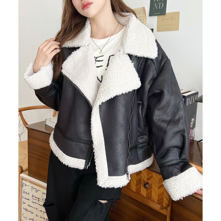 フェイクレザー×ボアフェイクムートンライダースジャケットブルゾン