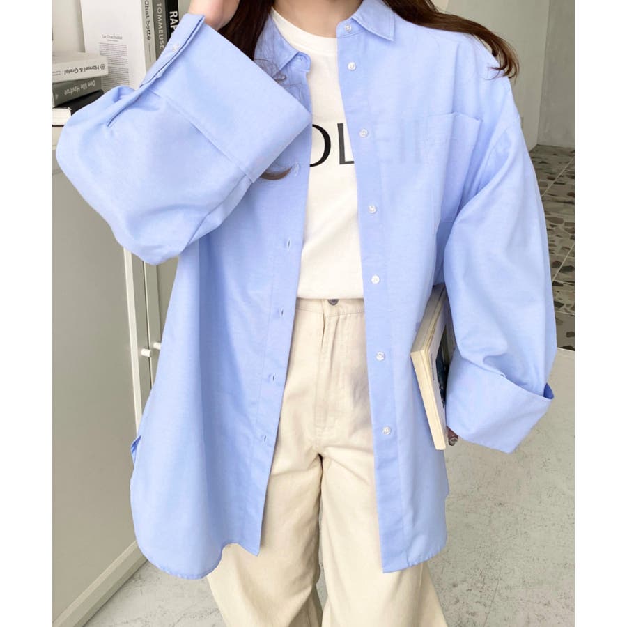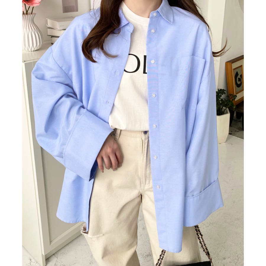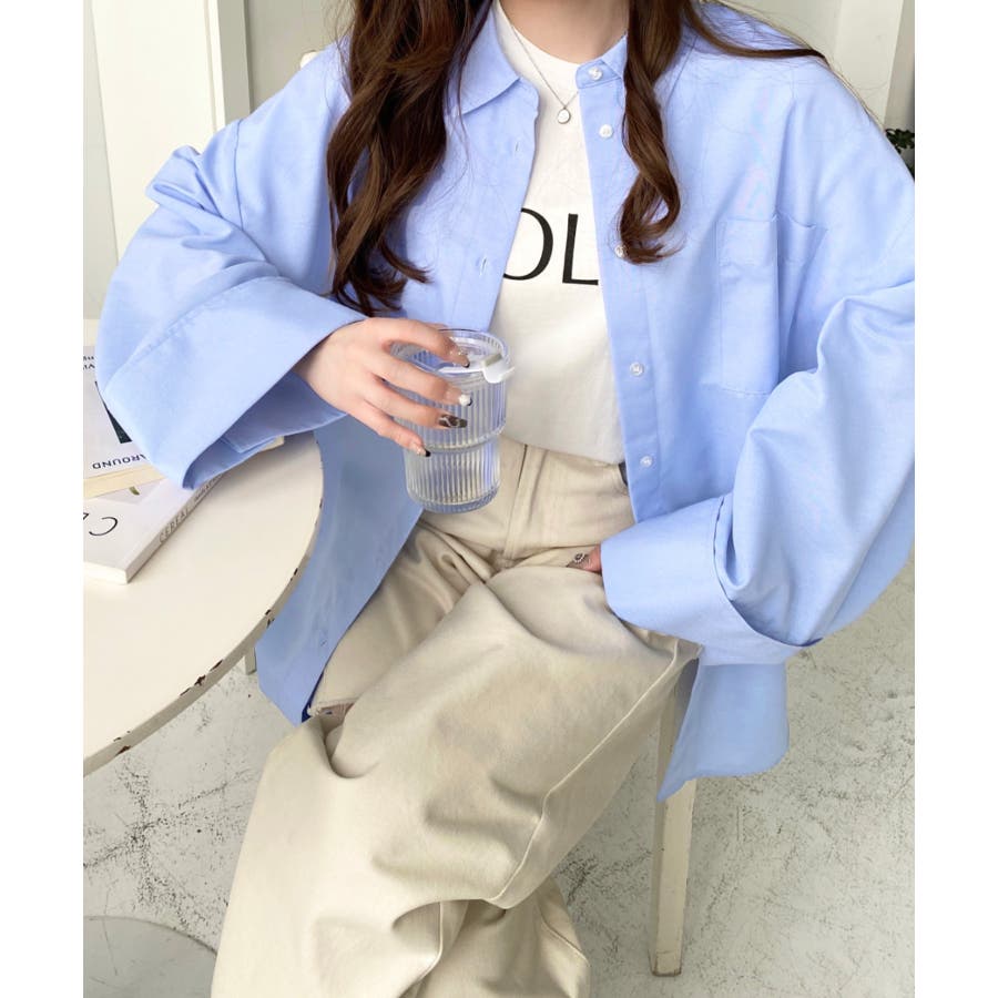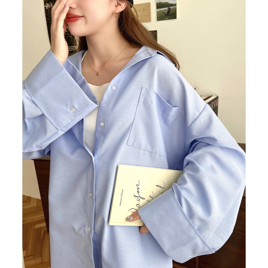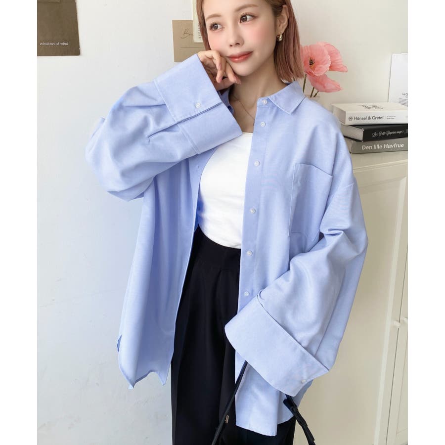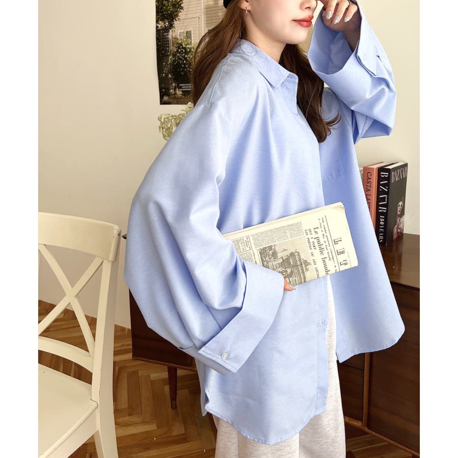シャツ ブラウス ワイドスリーブ 無地 オーバーサイズ ロング丈 オックスフォード 羽織 重ね着 着回し シンプル スタンダード 襟 長袖 レディースファッション 大人カジュアル SS AW 春 夏 秋 冬 mt02019 [moment+/モーメントプラス]