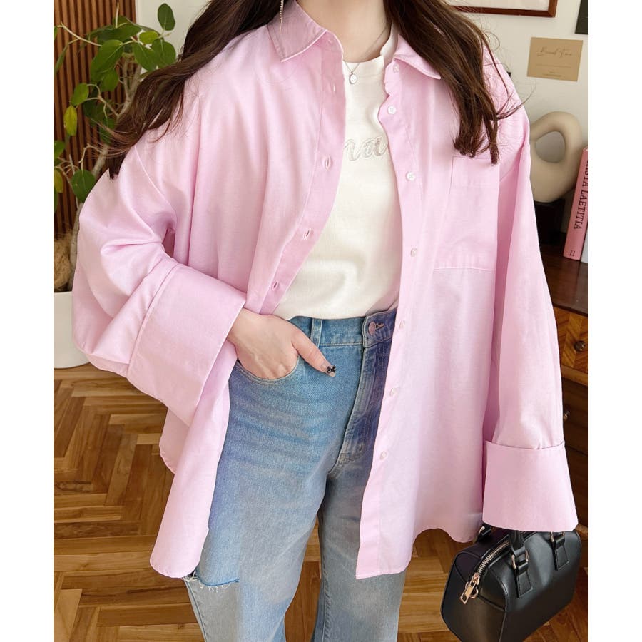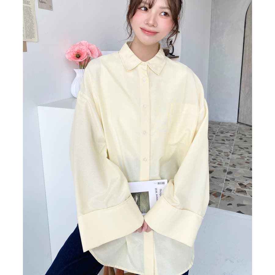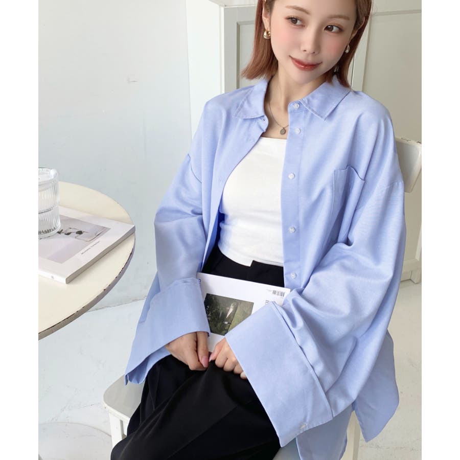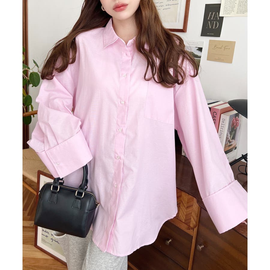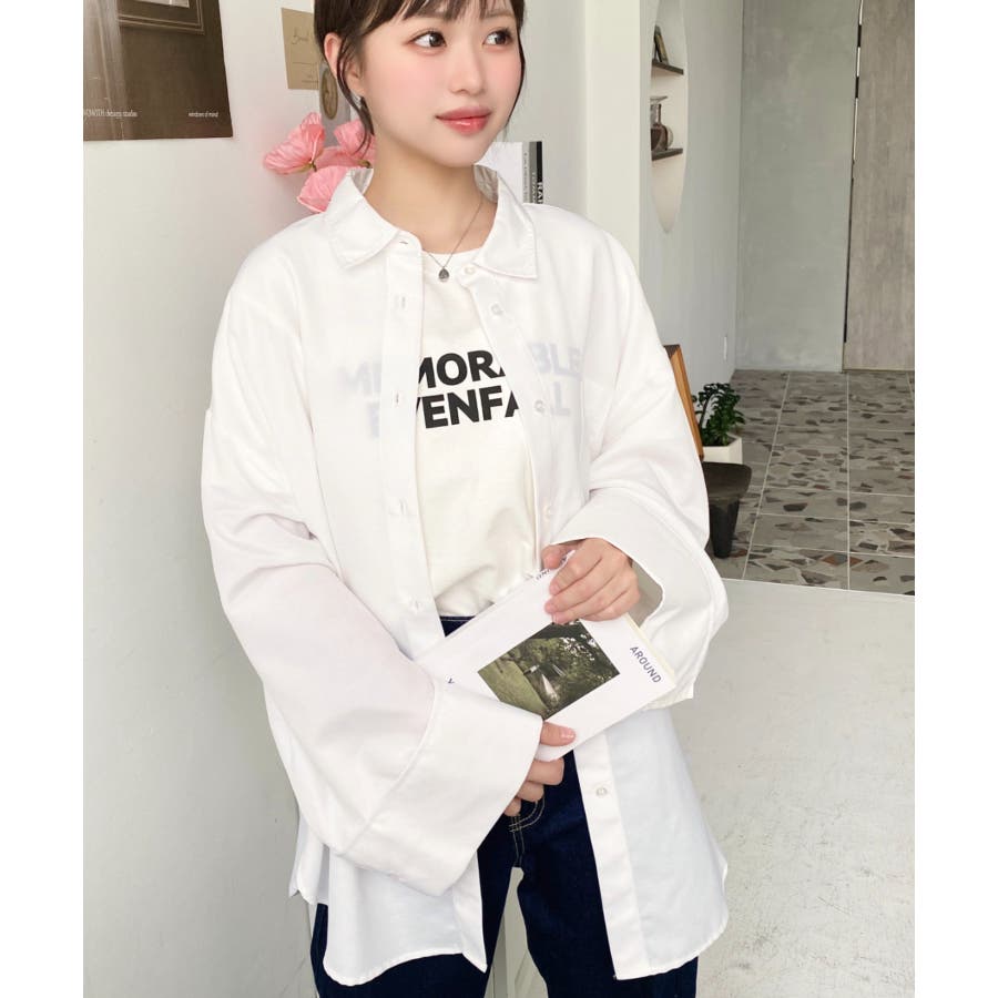 シャツ ブラウス ワイドスリーブ 無地 オーバーサイズ ロング丈 オックスフォード 羽織 重ね着 着回し シンプル スタンダード 襟 長袖 レディースファッション 大人カジュアル SS AW 春 夏 秋 冬 mt02019 [moment+/モーメントプラス]