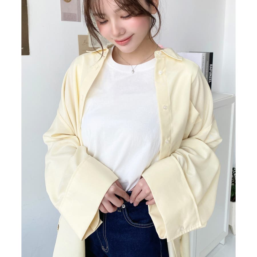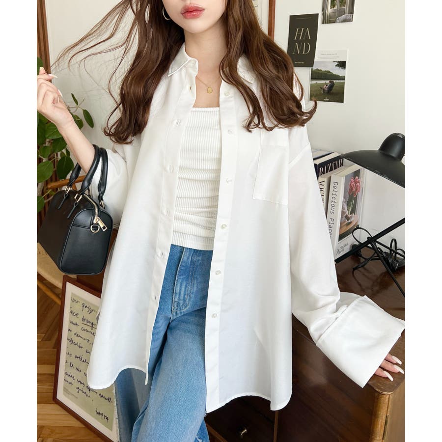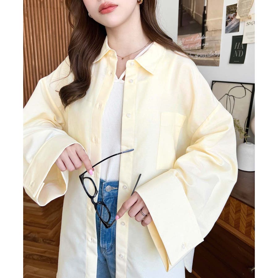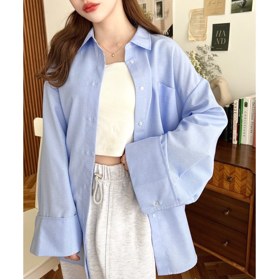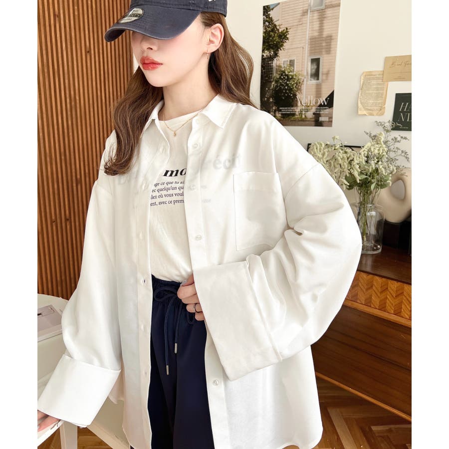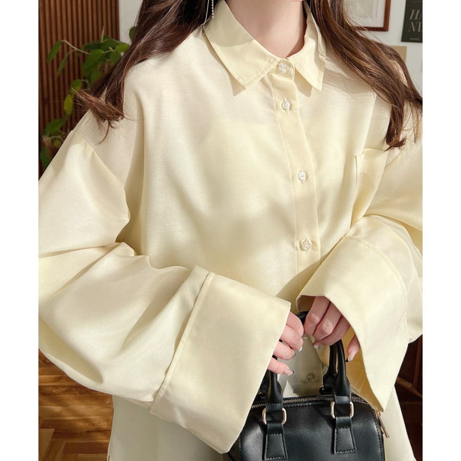 シャツ ブラウス ワイドスリーブ 無地 オーバーサイズ ロング丈 オックスフォード 羽織 重ね着 着回し シンプル スタンダード 襟 長袖 レディースファッション 大人カジュアル SS AW 春 夏 秋 冬 mt02019 [moment+/モーメントプラス]