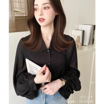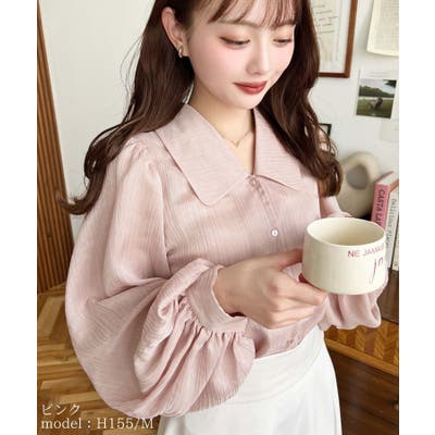シアーランダムプリーツレトロカラーボリュームスリーブブラウス
