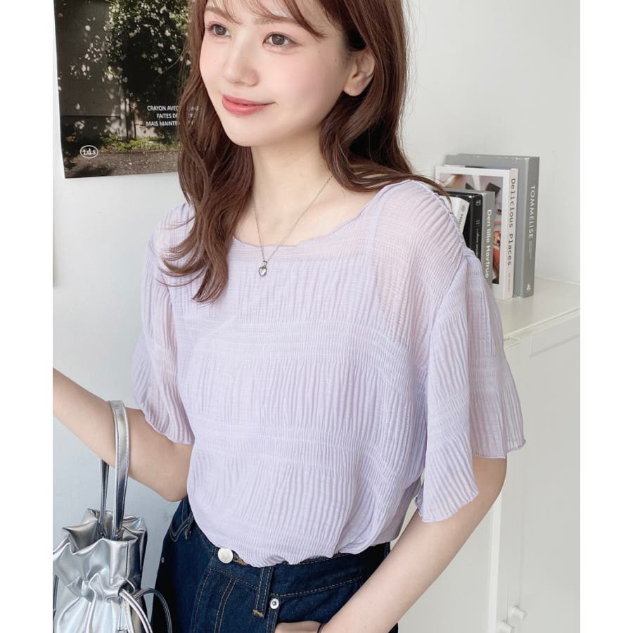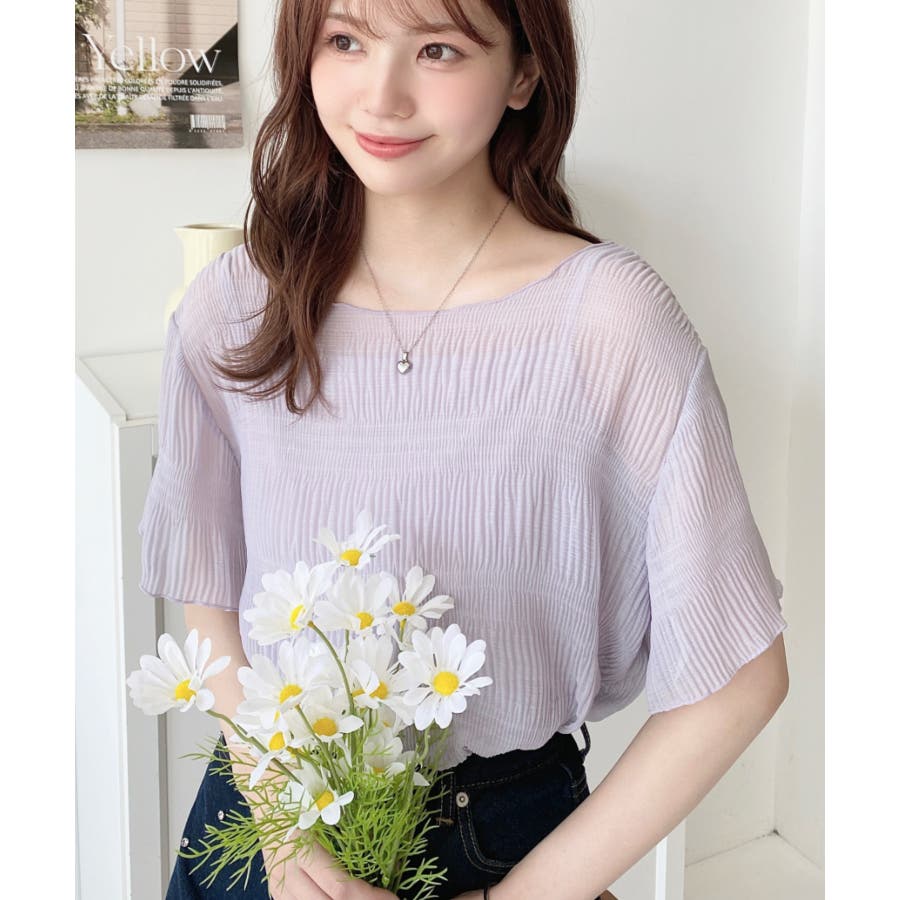 インナーキャミ付きマジョリカプリーツ半袖メローシアープルオーバー