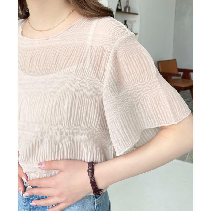 ・くしゅっとした表面感が表情豊かで洗練された印象を放つシアー楊柳ブラウス。