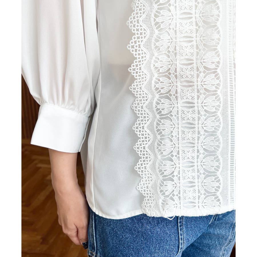 【繊細なフロントレースとふんわり素材で魅せる!レディライクな大人ブラウス】