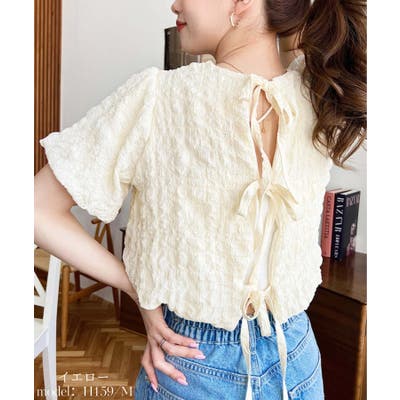 【1枚は持っておきたいバックオープンリボン半袖プルオーバー】
