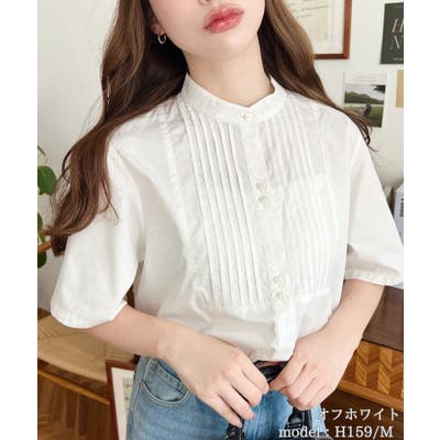 ・繊細なピンタックとバンドカラーの襟元が、クラシカルでスマートな印象を与える一枚。