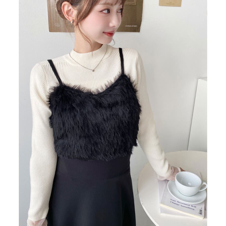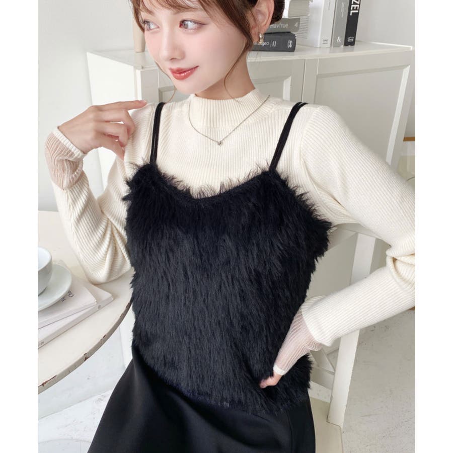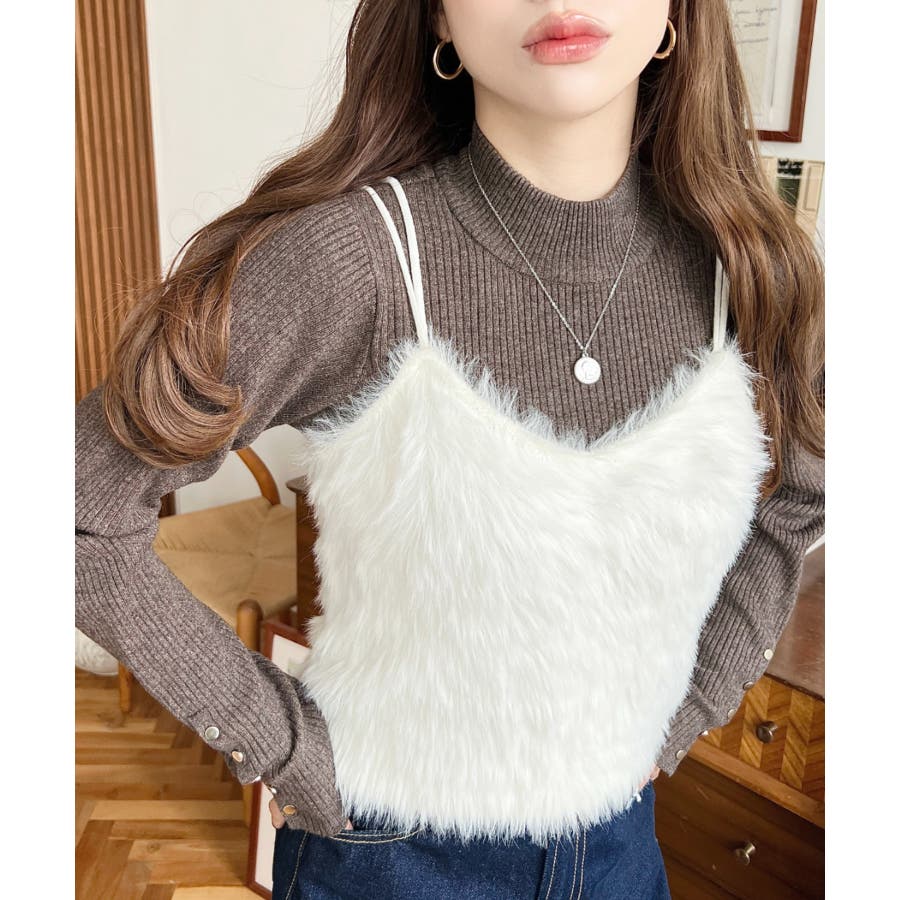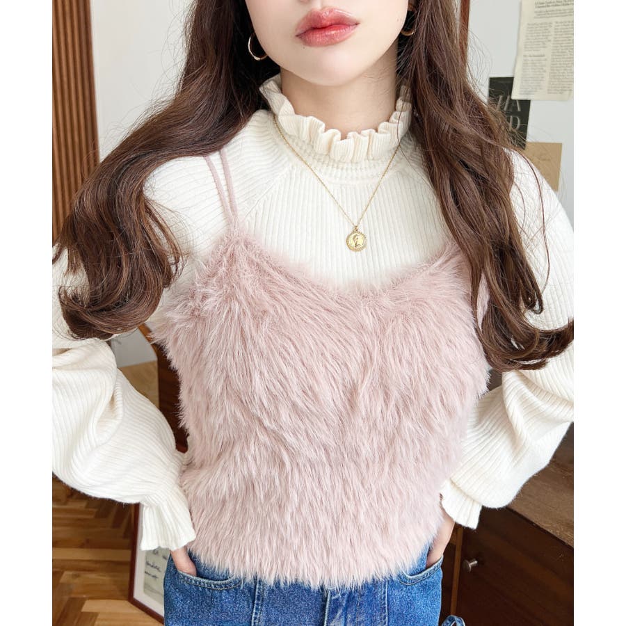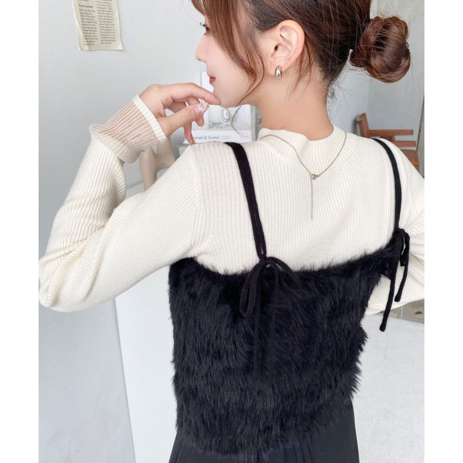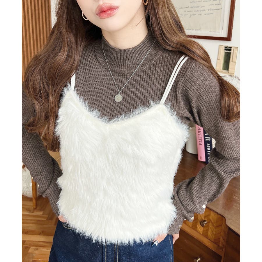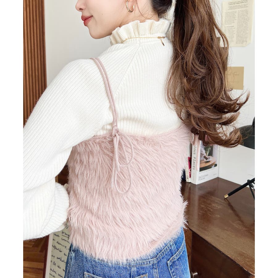 ・ふわふわの手触りが抜群◎ロングファーが季節を感じられるやわらかニットキャミ。