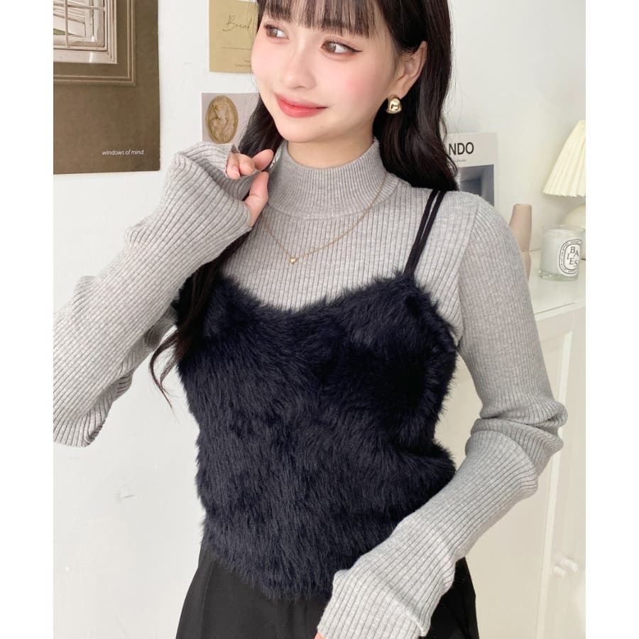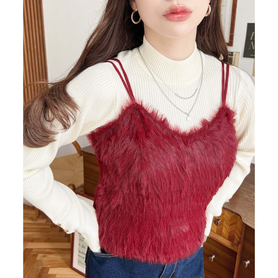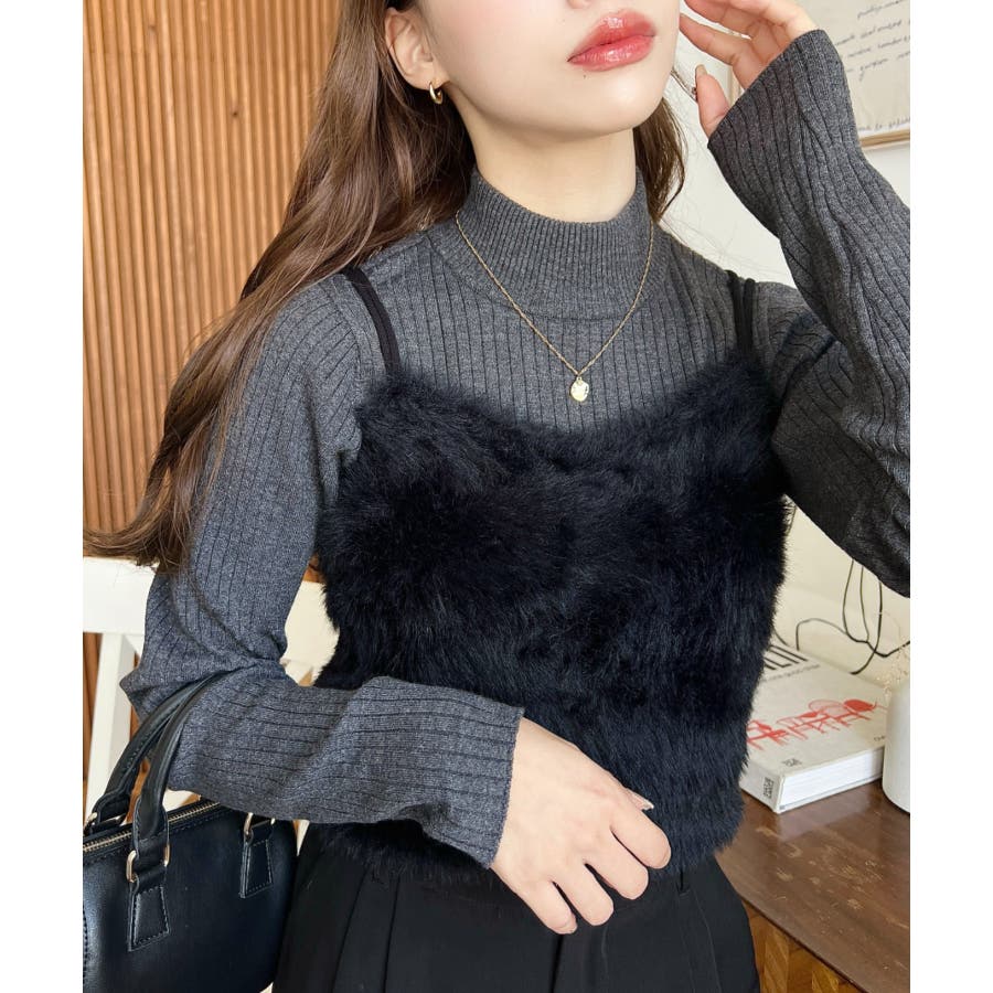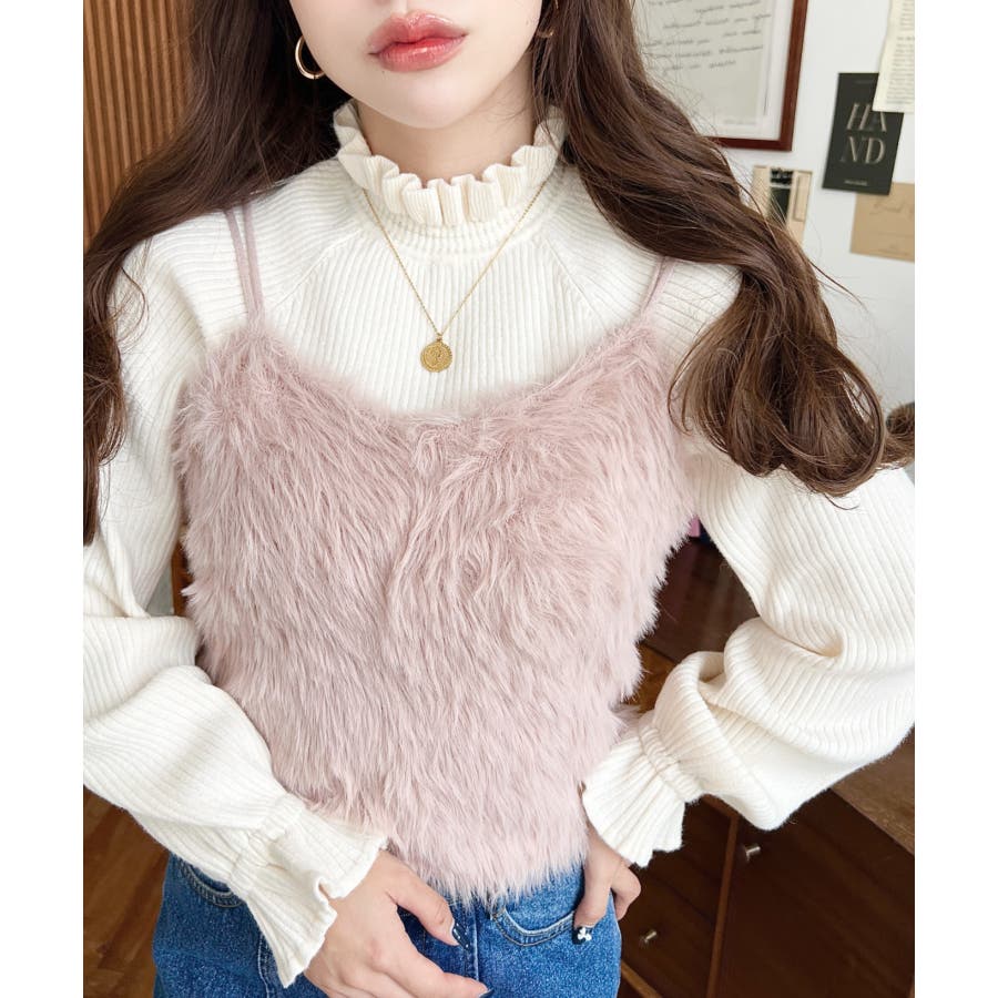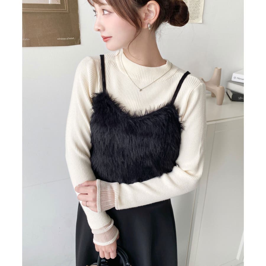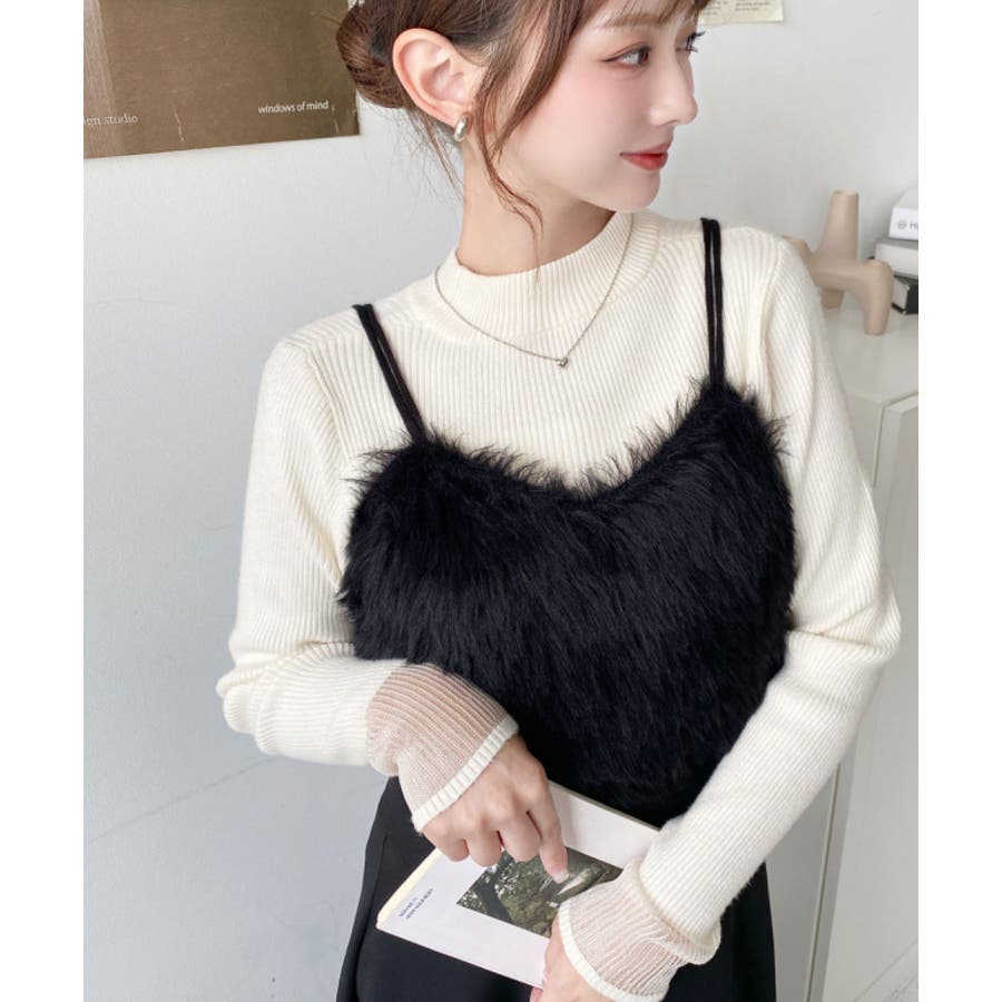・ふわふわの手触りが抜群◎ロングファーが季節を感じられるやわらかニットキャミ。