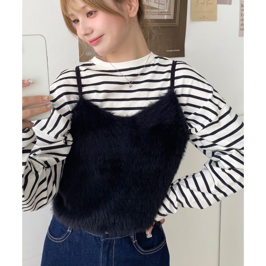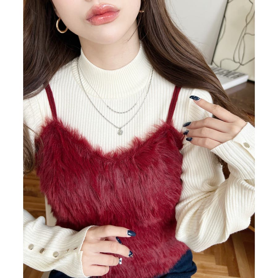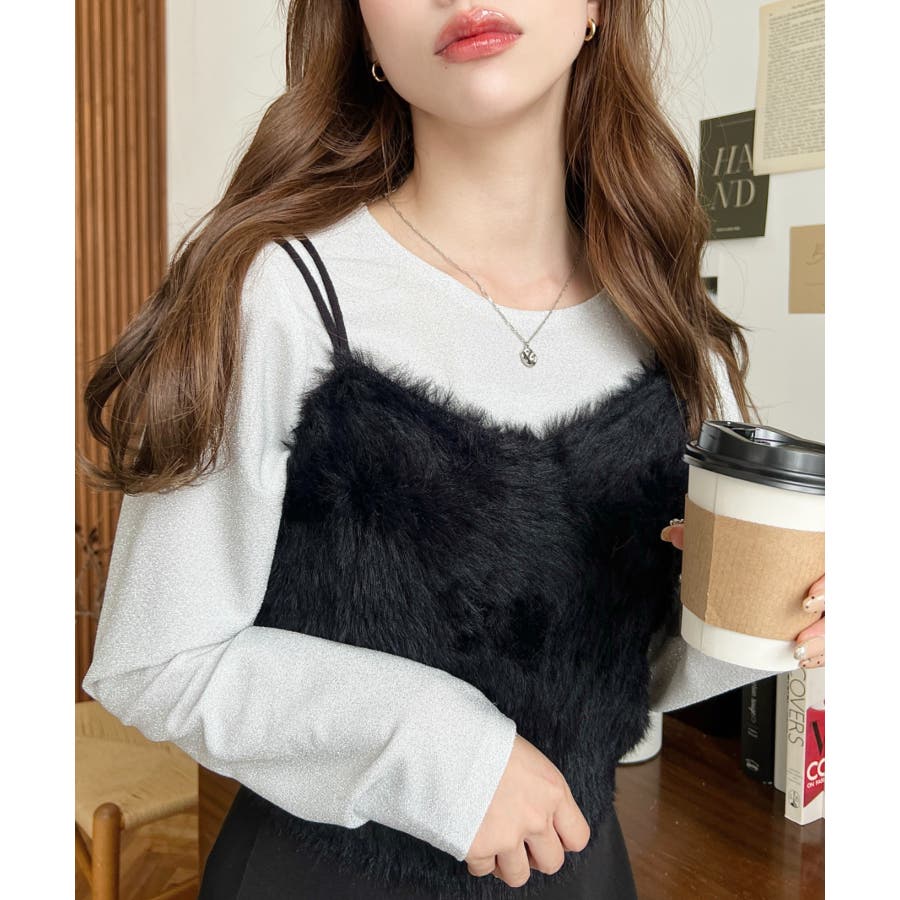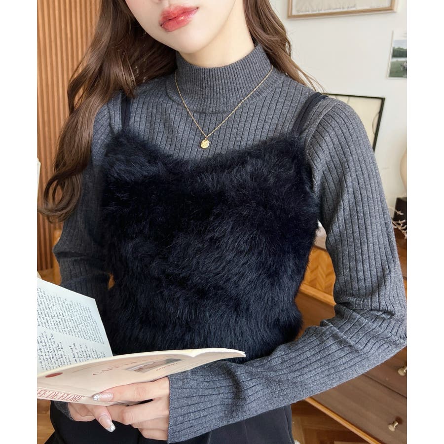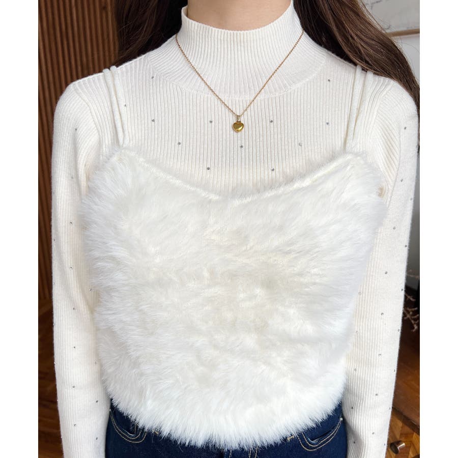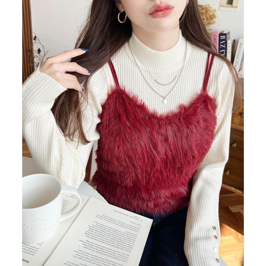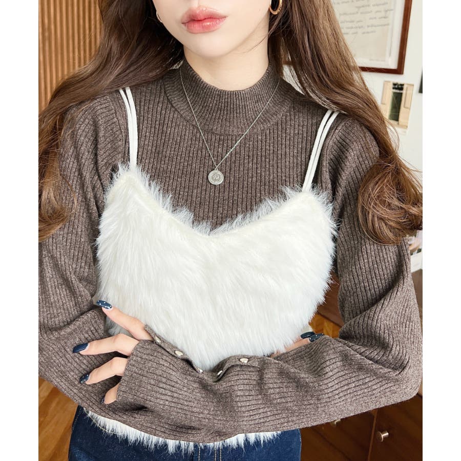 ・ふわふわの手触りが抜群◎ロングファーが季節を感じられるやわらかニットキャミ。