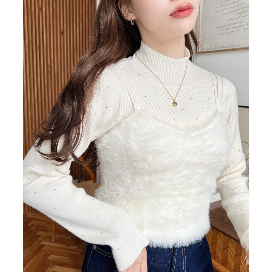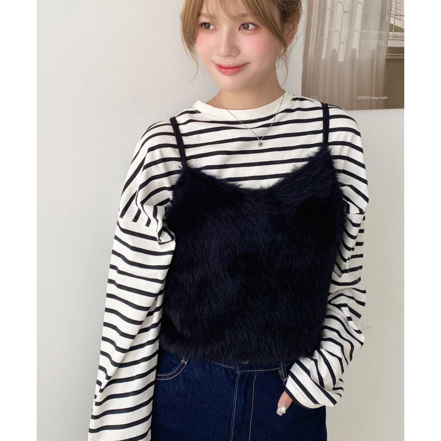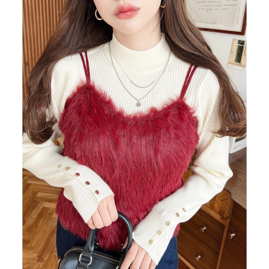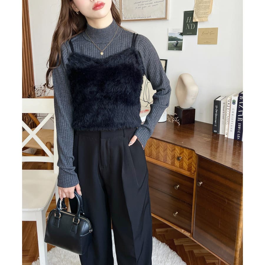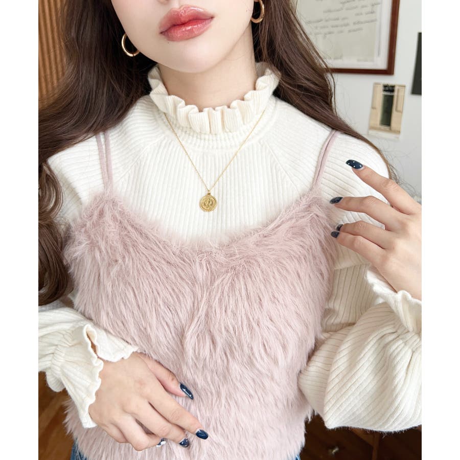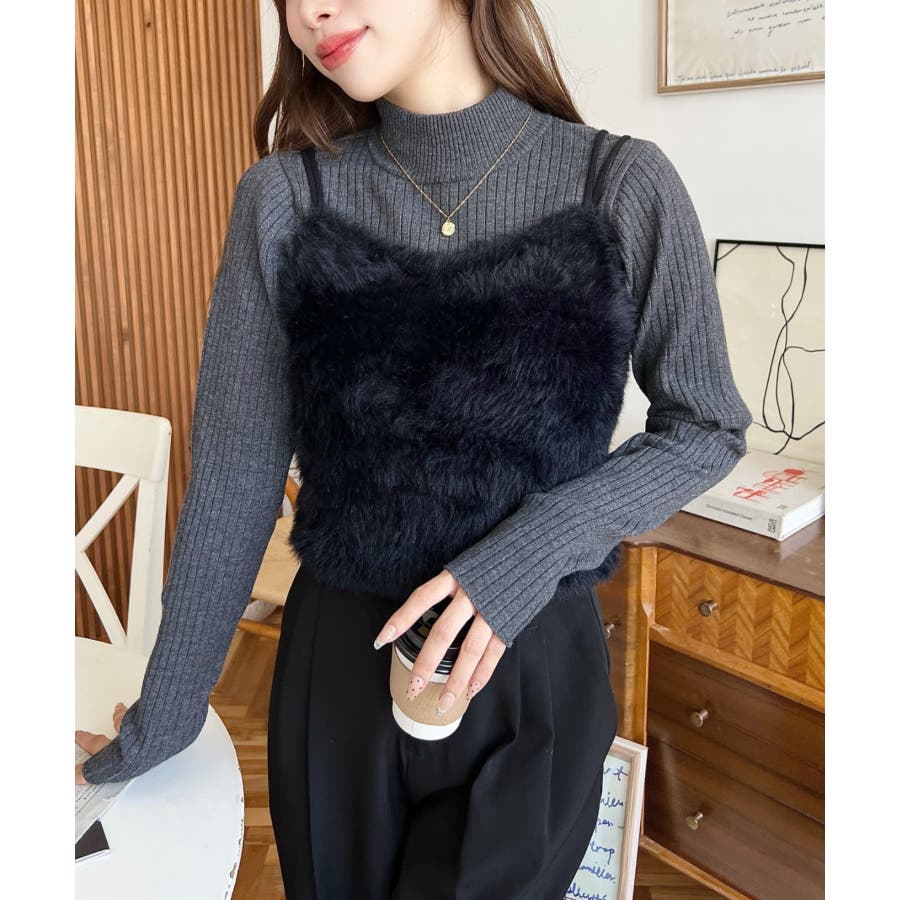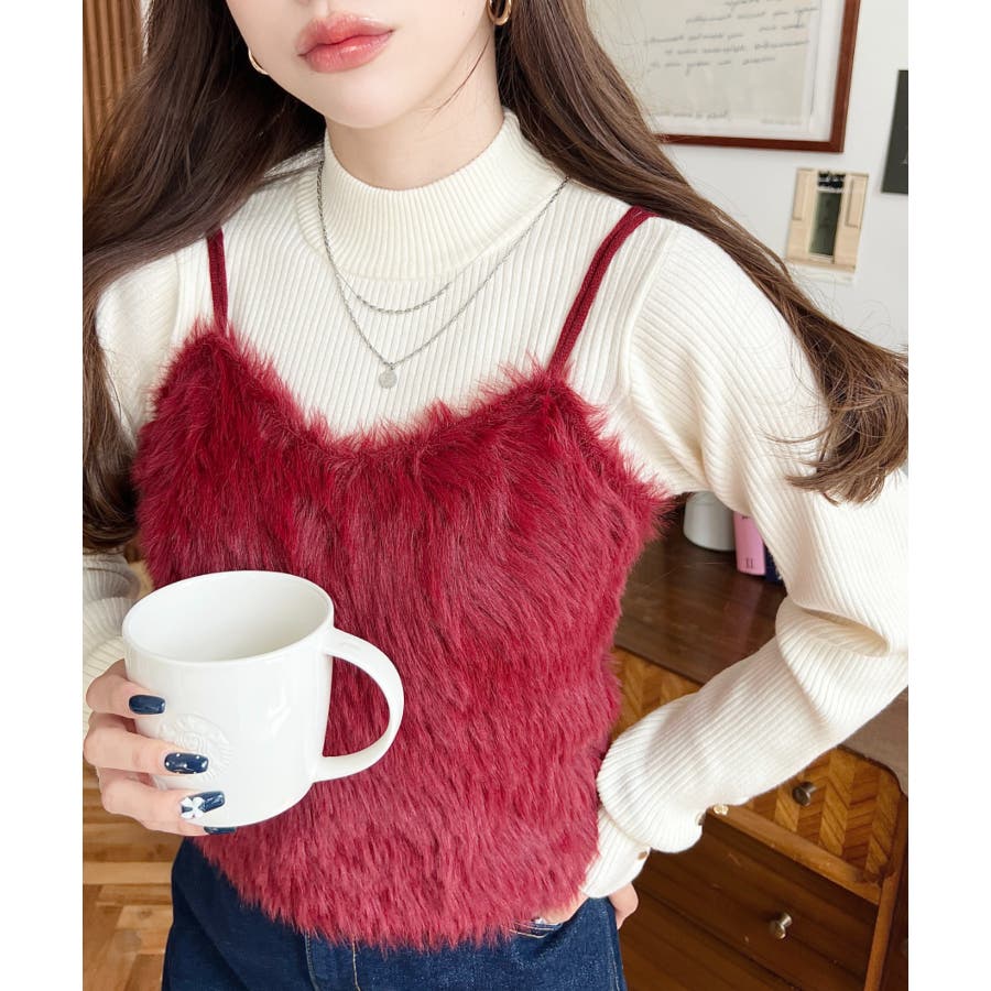 ・ふわふわの手触りが抜群◎ロングファーが季節を感じられるやわらかニットキャミ。