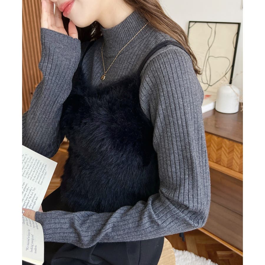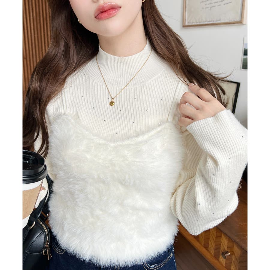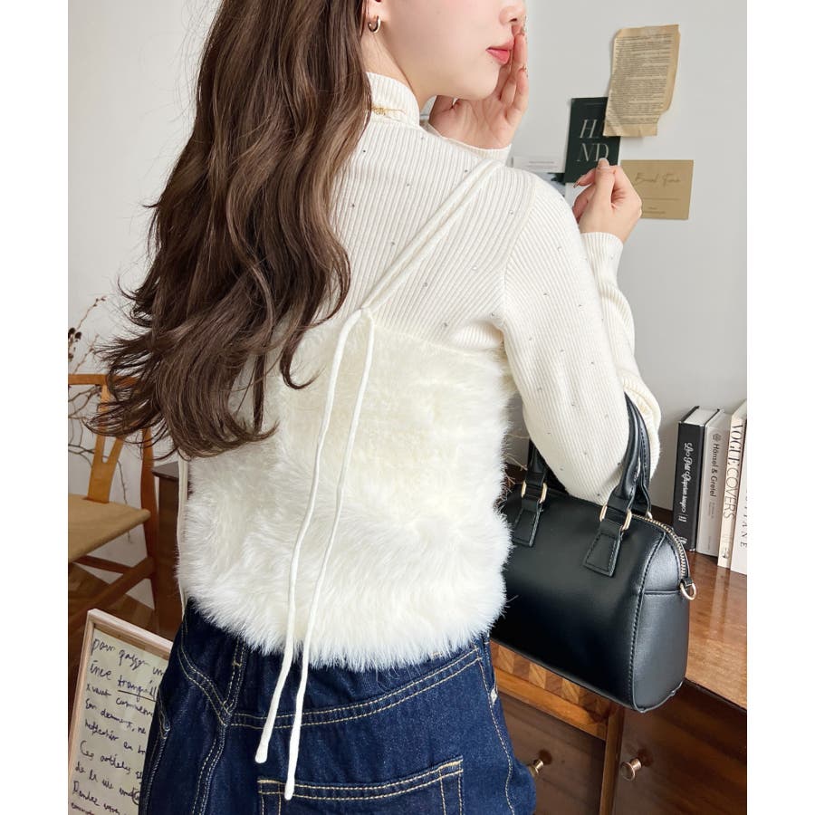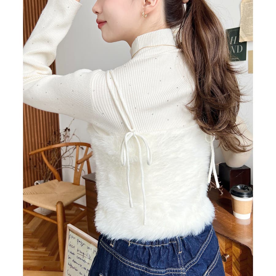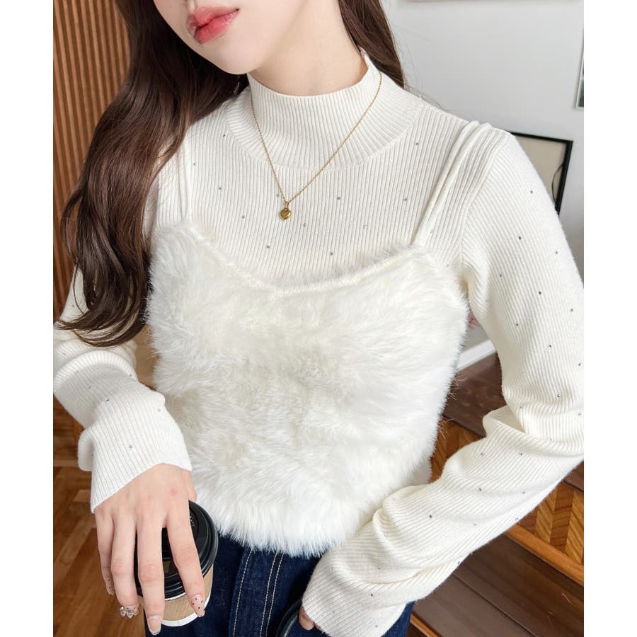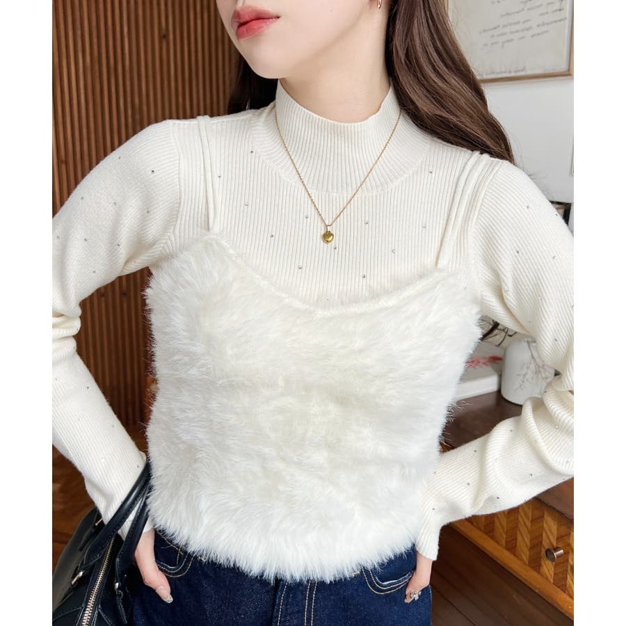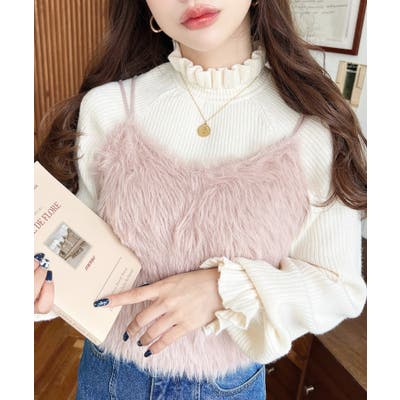 ・ふわふわの手触りが抜群◎ロングファーが季節を感じられるやわらかニットキャミ。