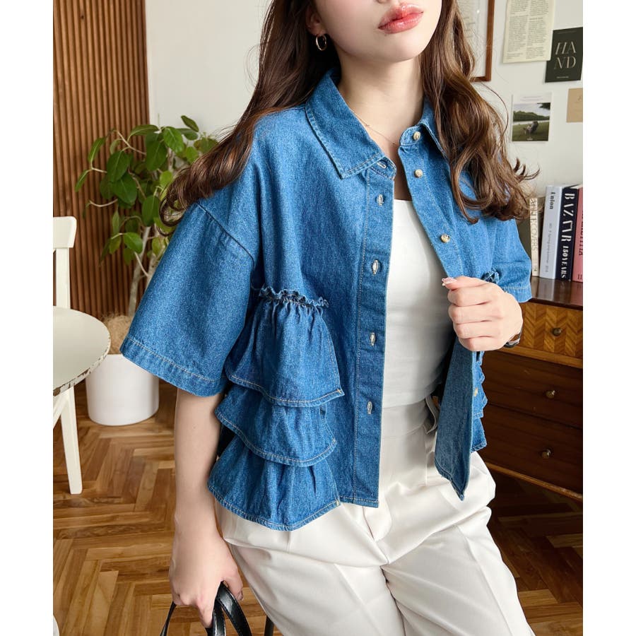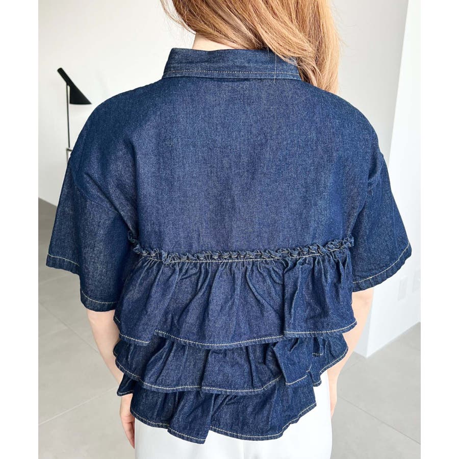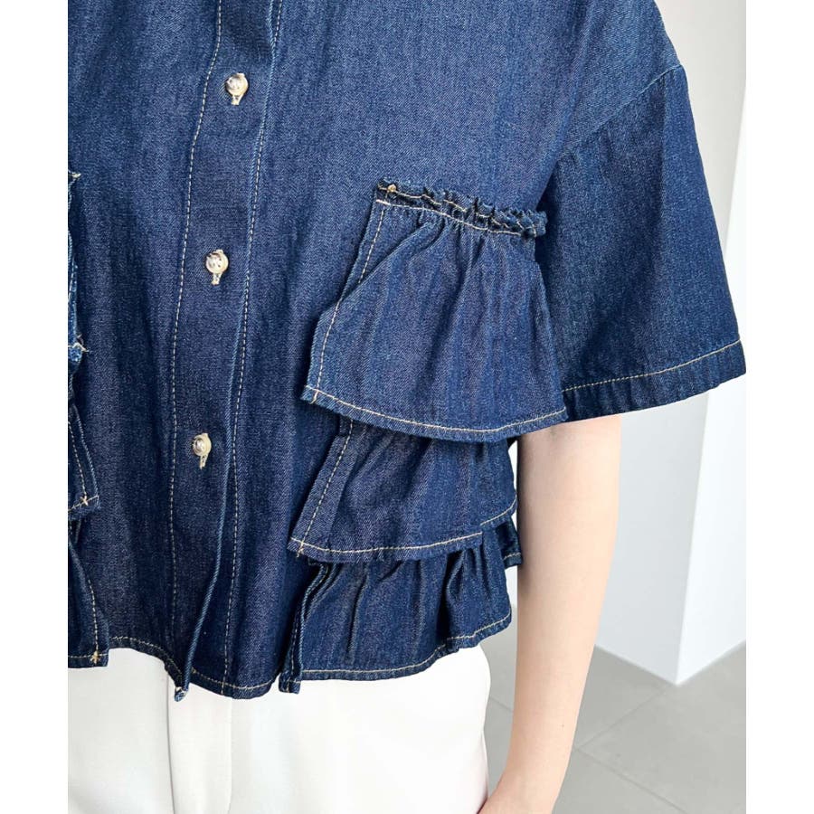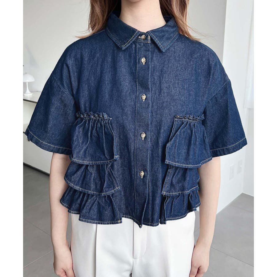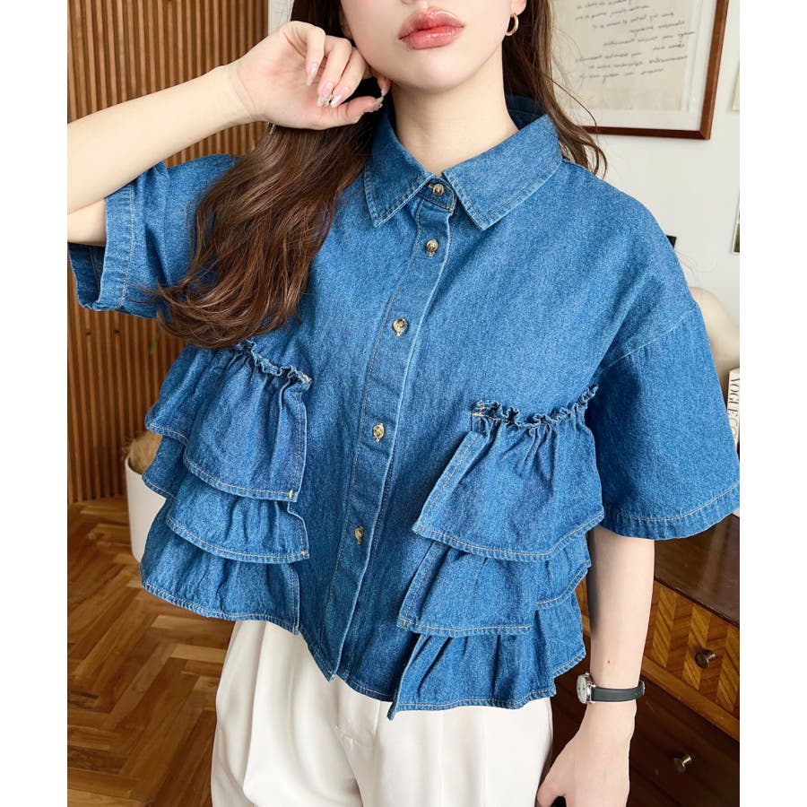 半袖ティアードフリルデニムシャツ