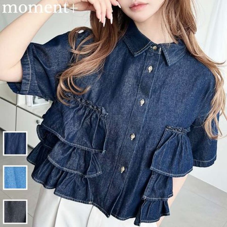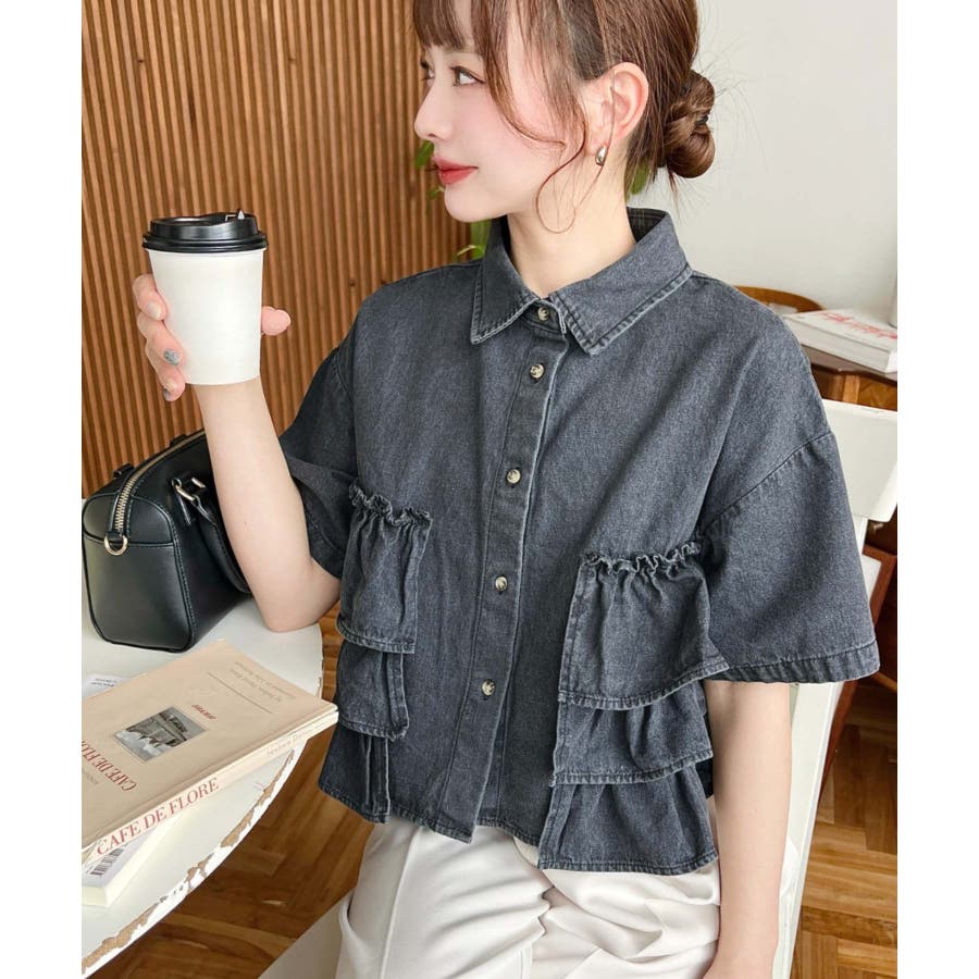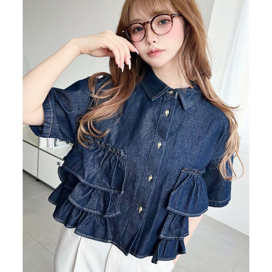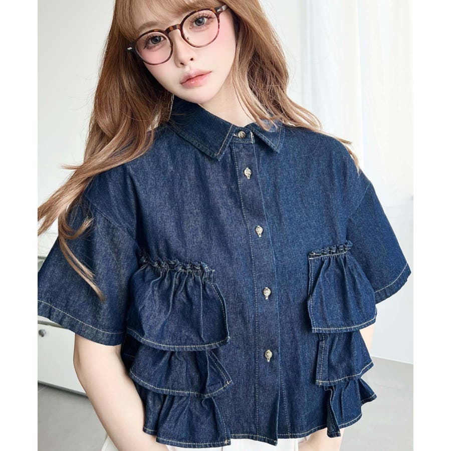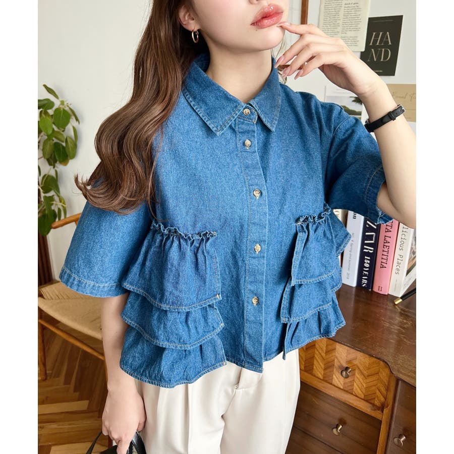 半袖ティアードフリルデニムシャツ