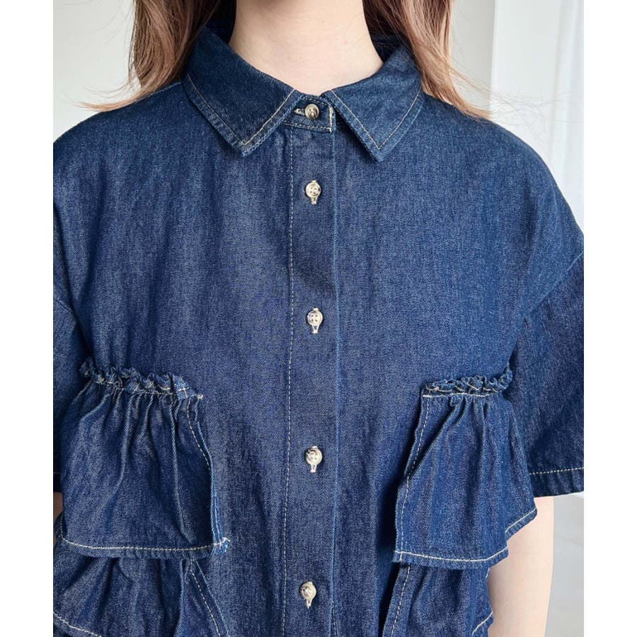 ・デニムシャツ フリル