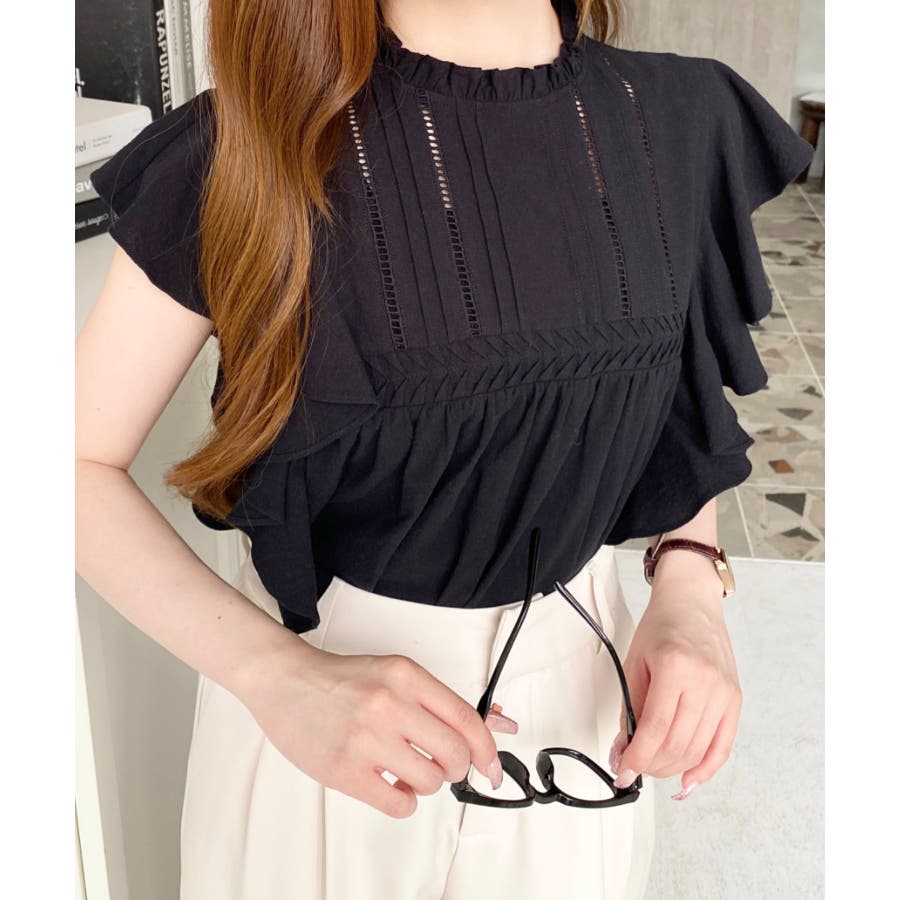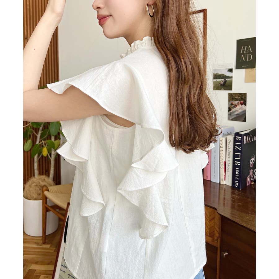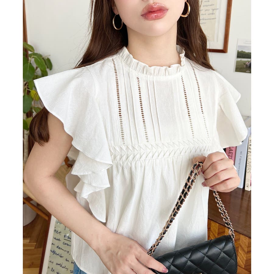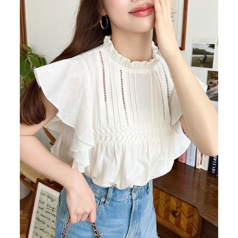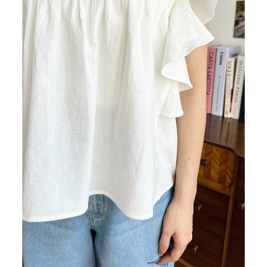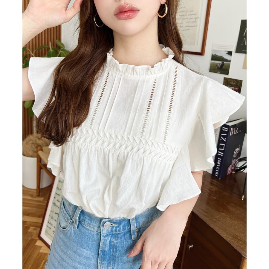 シャツ ブラウス コットンワッシャー フリルスリーブ ピンタック フリル ブラウス オフィスカジュアル レディースファッション トップス 大人カジュアル プチプラ 定番 2025SS 春 夏 mt02374 [moment+/モーメントプラス]