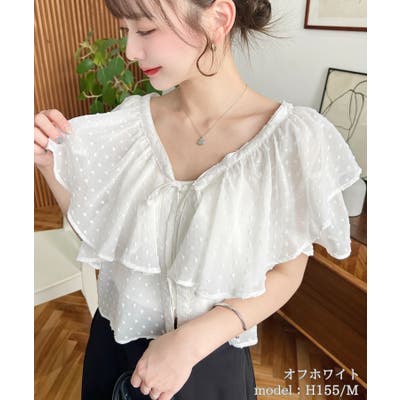 【大きなフリルが目を惹き春コーデを華やかにしてくれるドットブラウスが登場♪】
