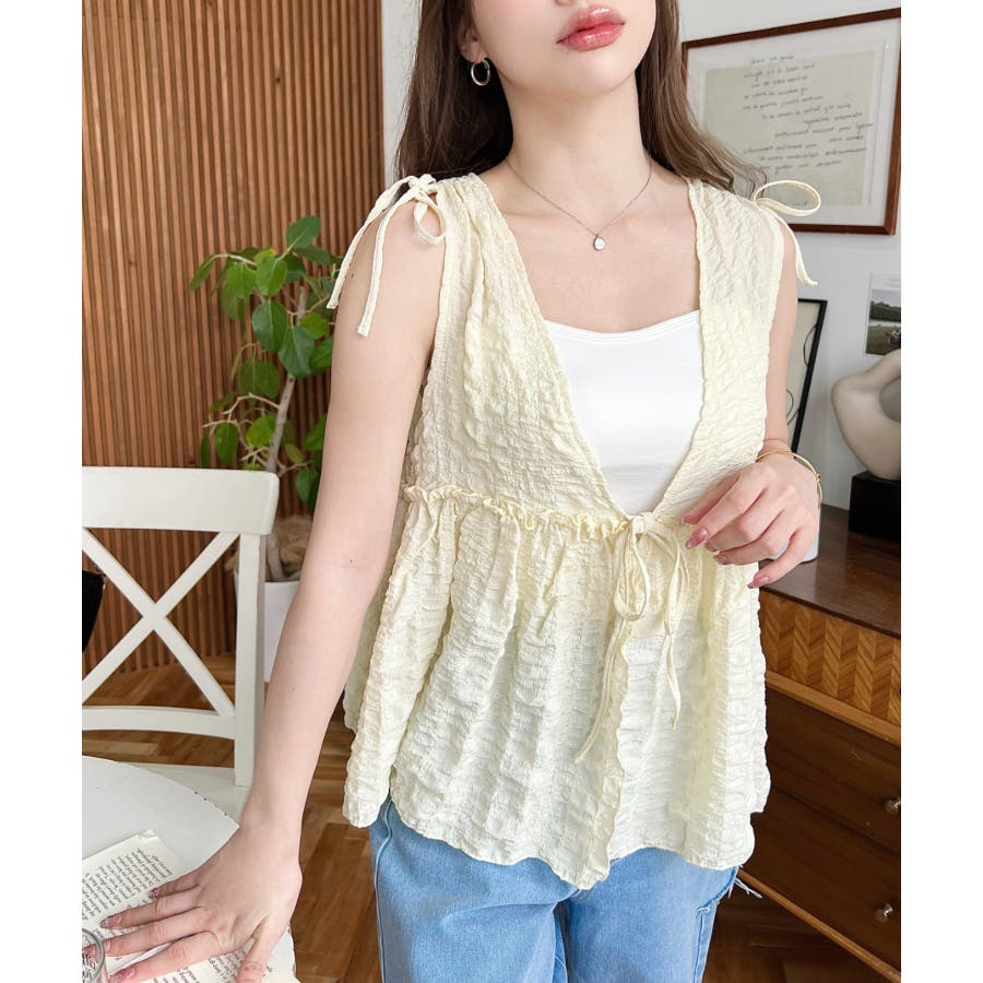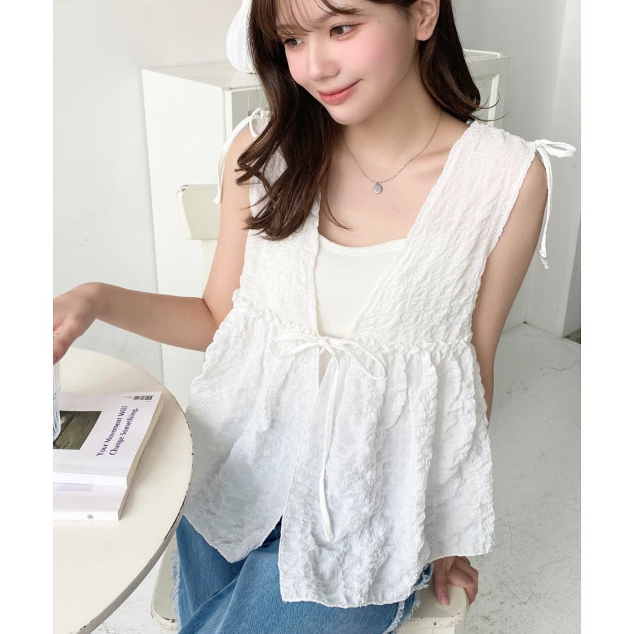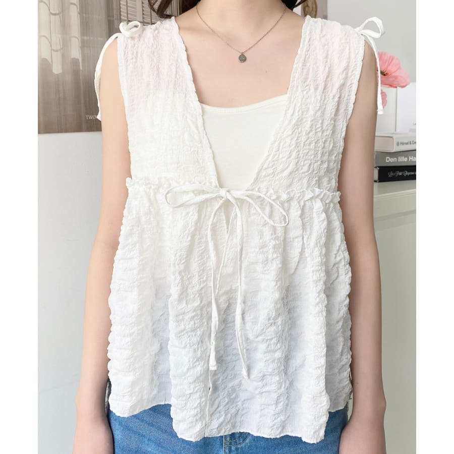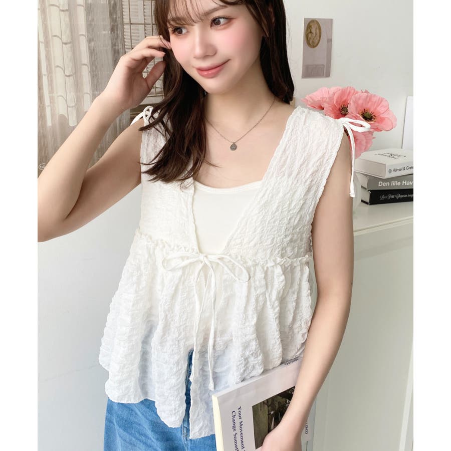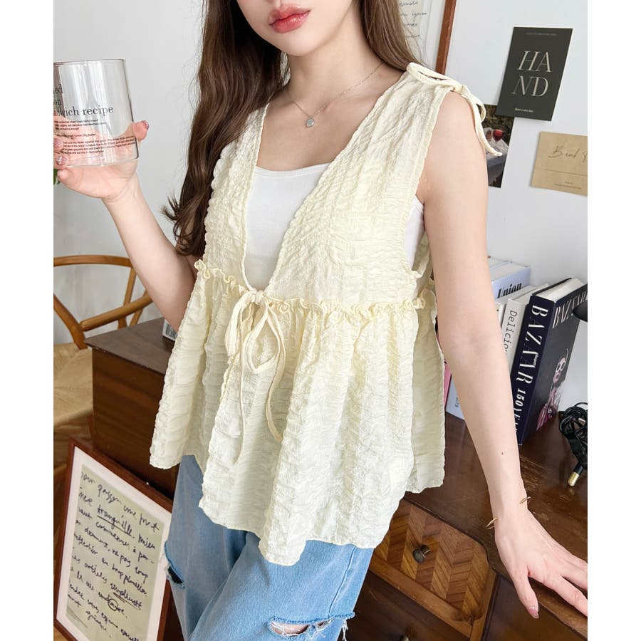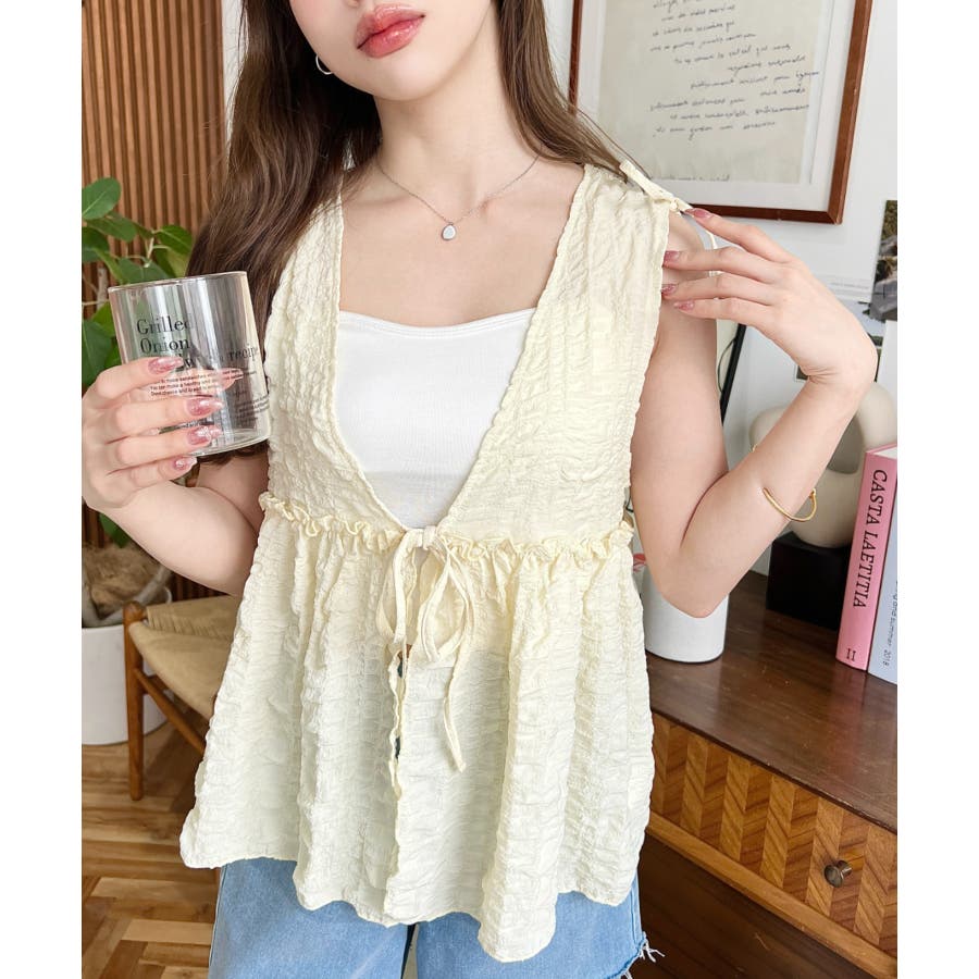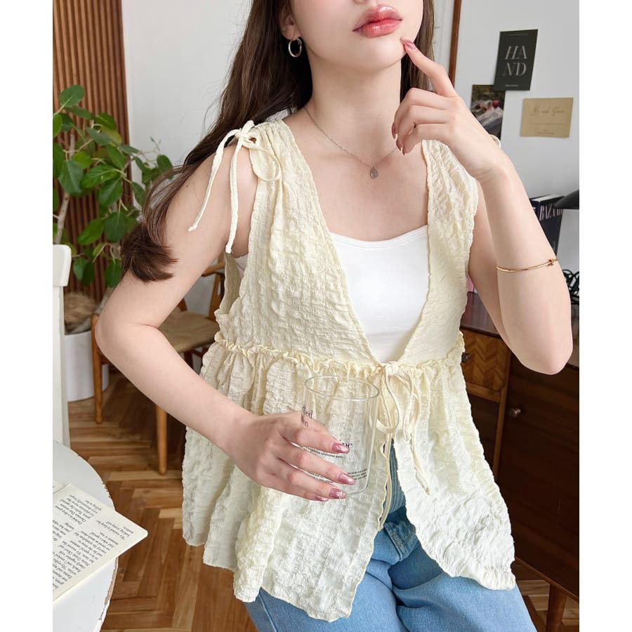 ・ポコポコとした立体感がかわいく、レイヤードにぴったりなペプラム型ベストです♪