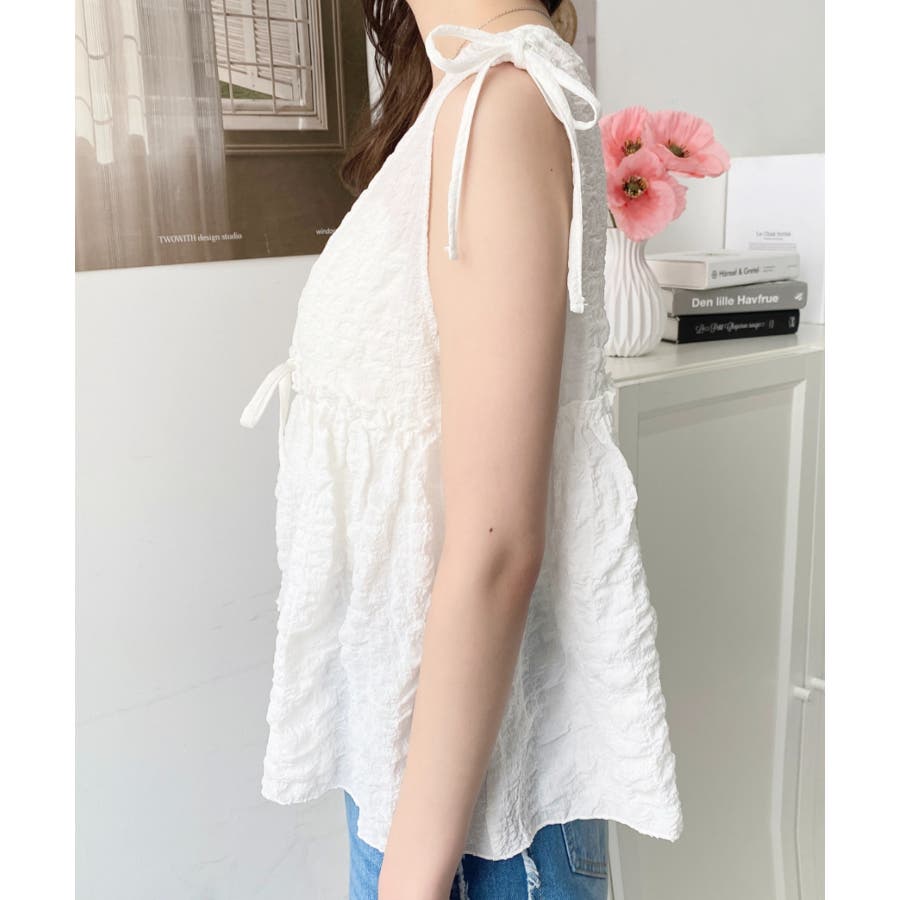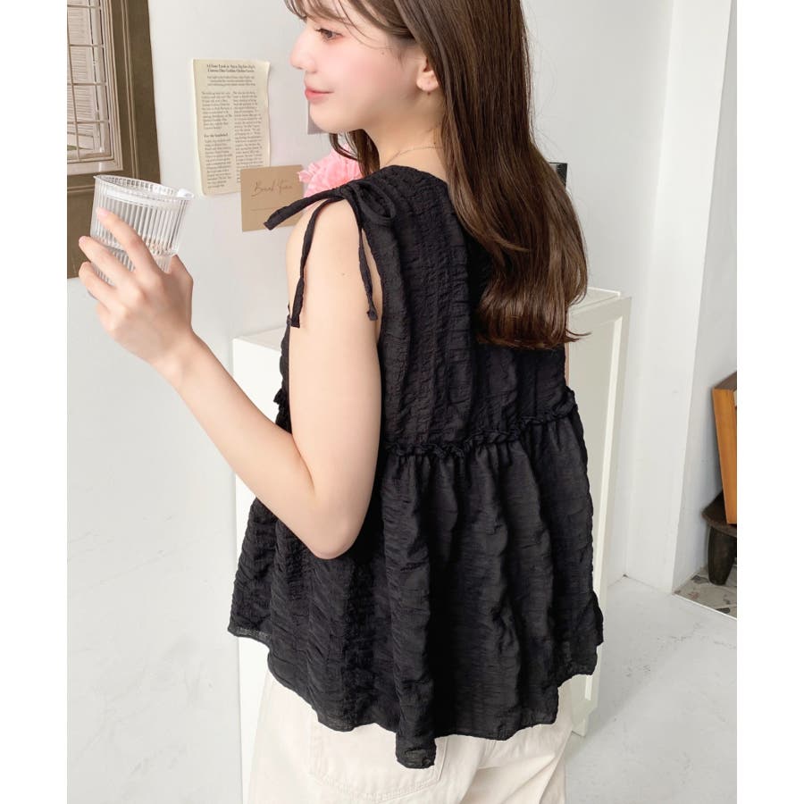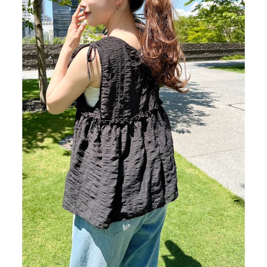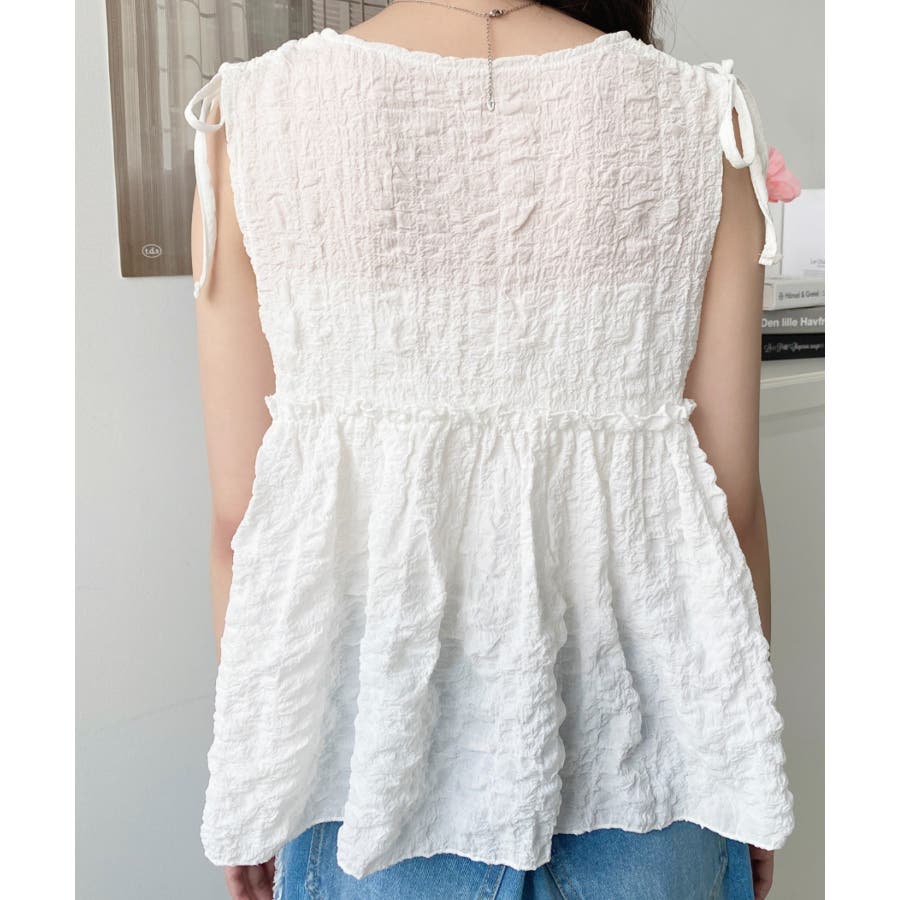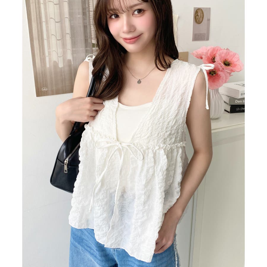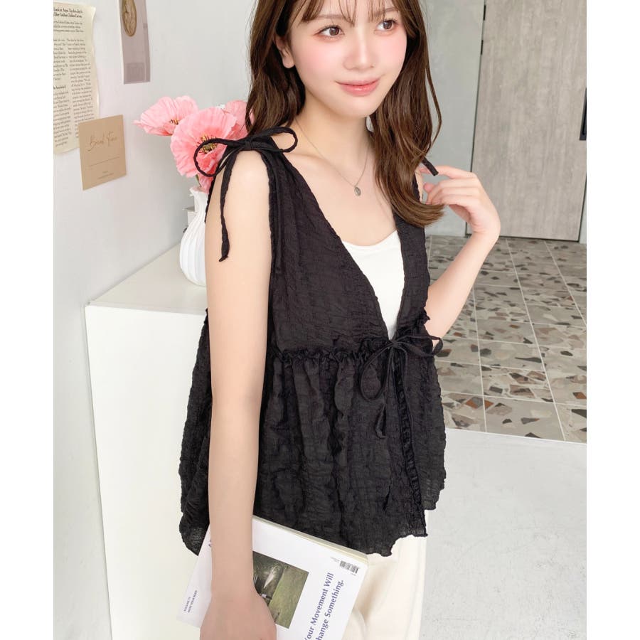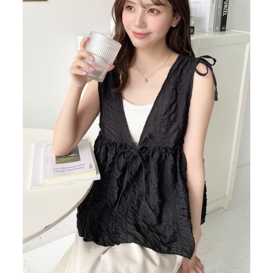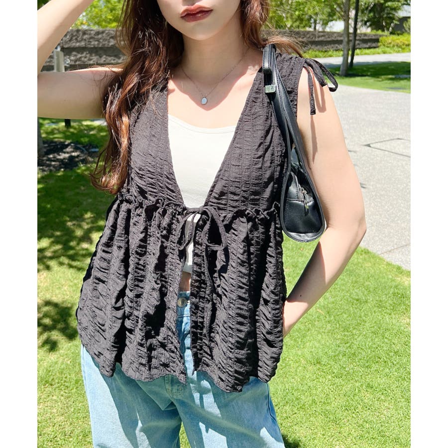 ・ポコポコとした立体感がかわいく、レイヤードにぴったりなペプラム型ベストです♪