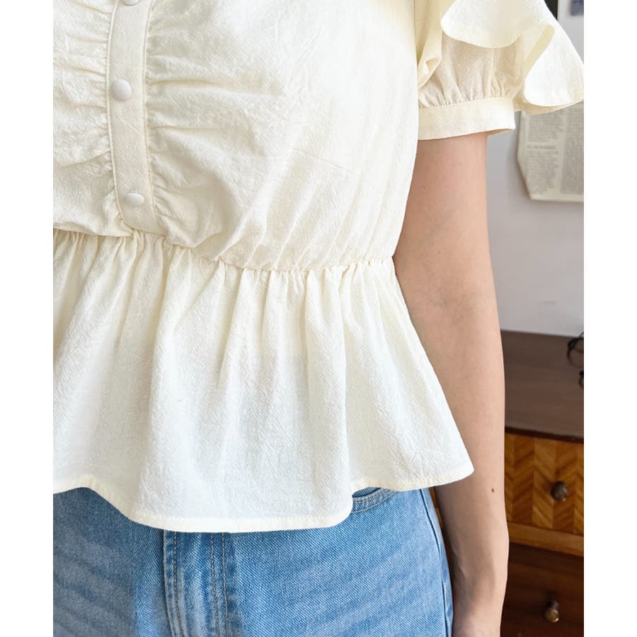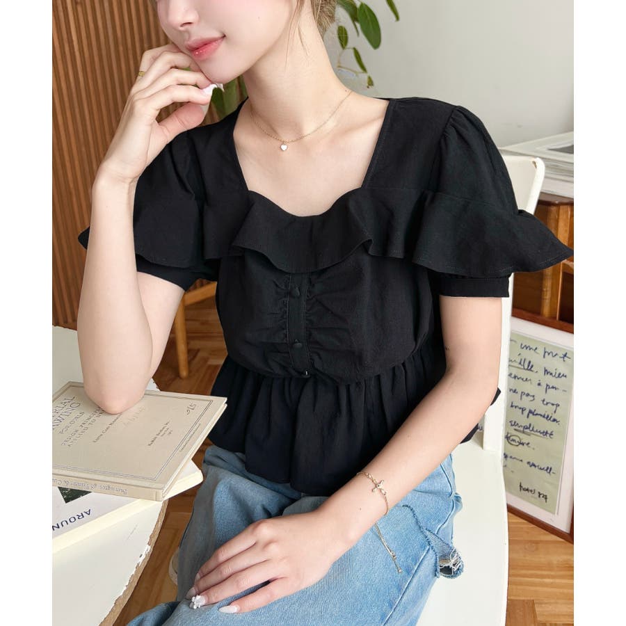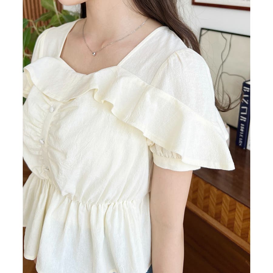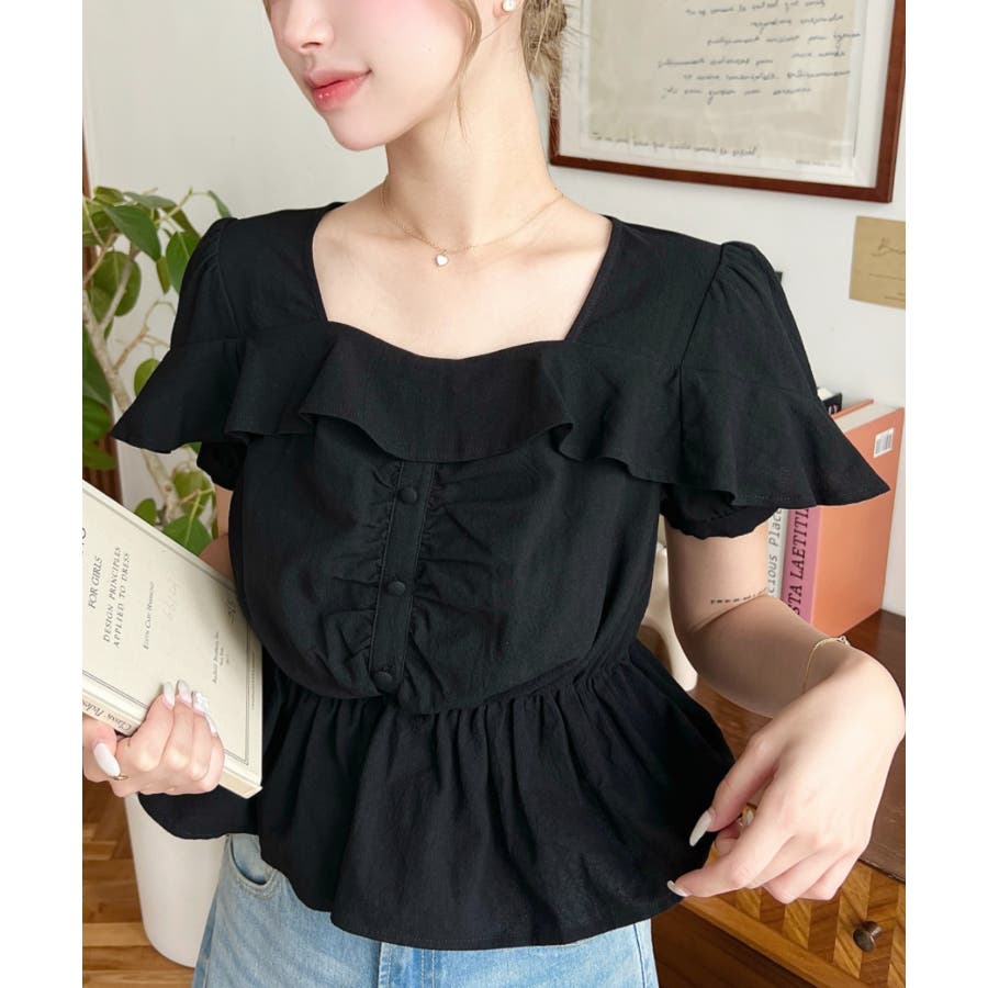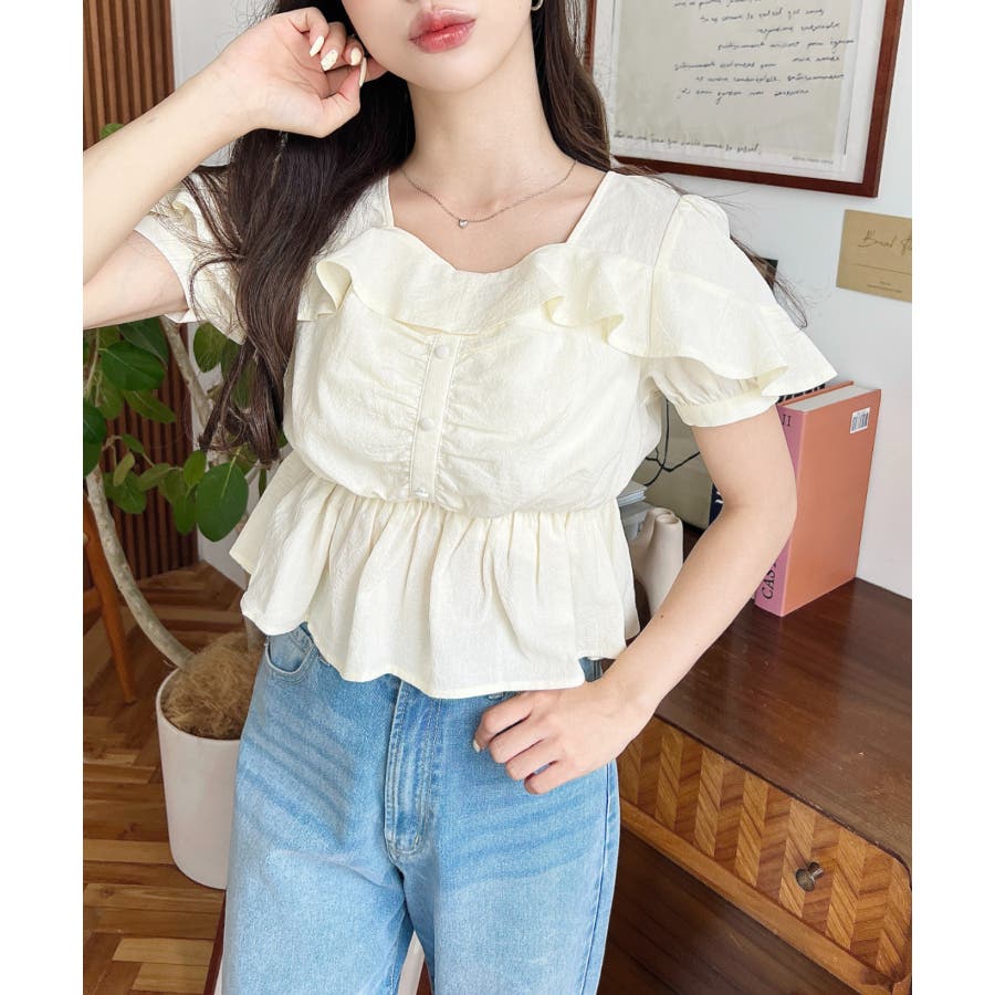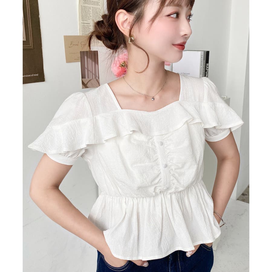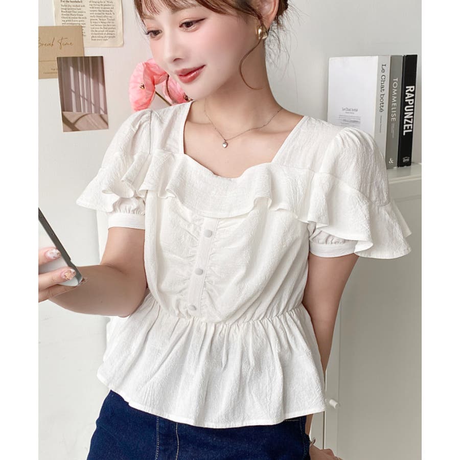 スクエアフリルペプラム半袖ブラウス