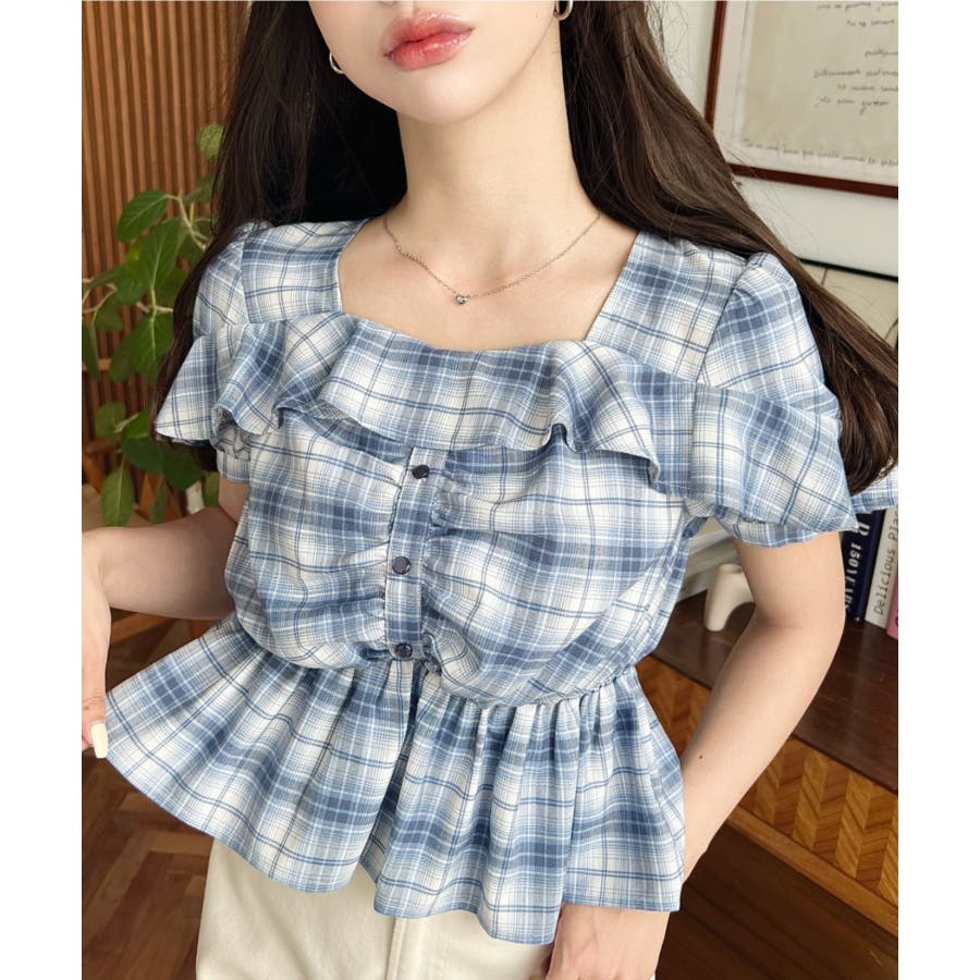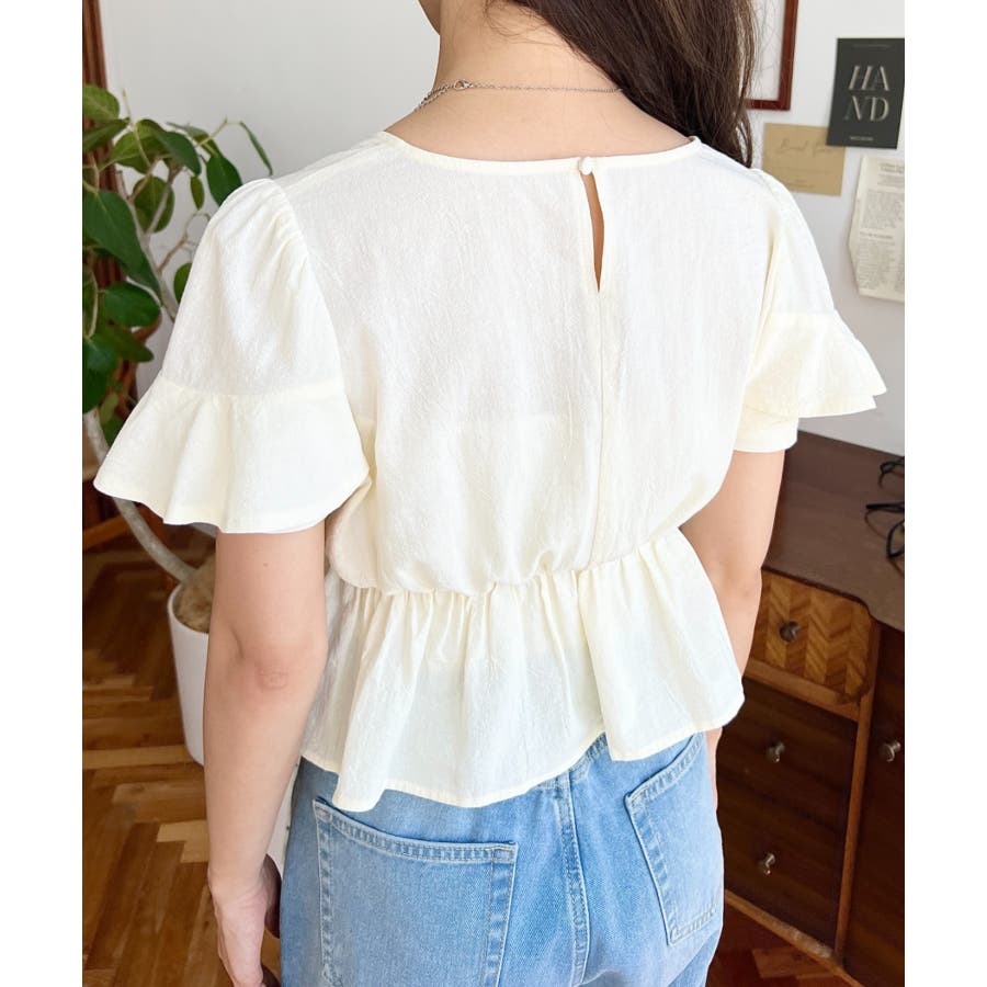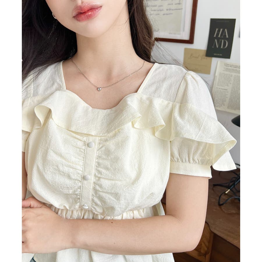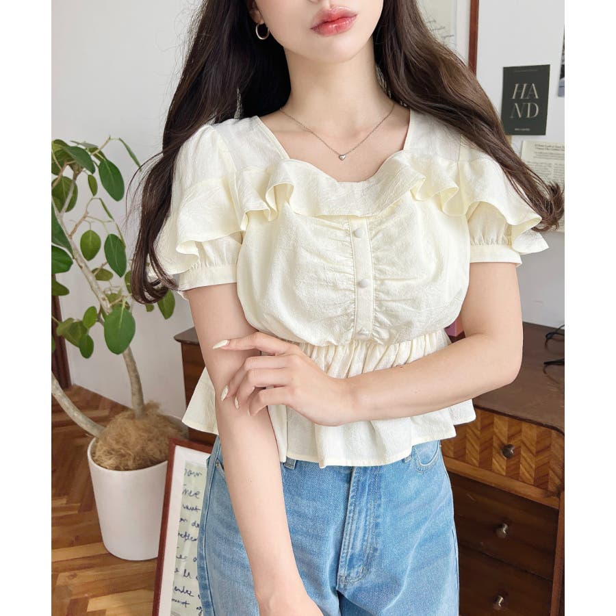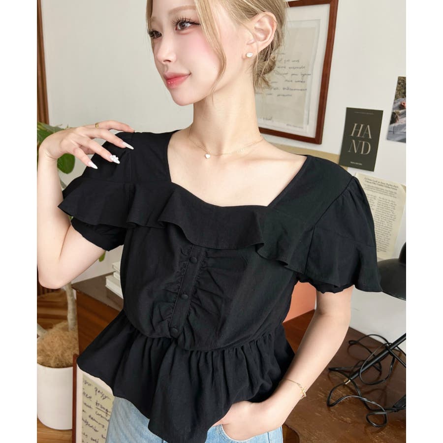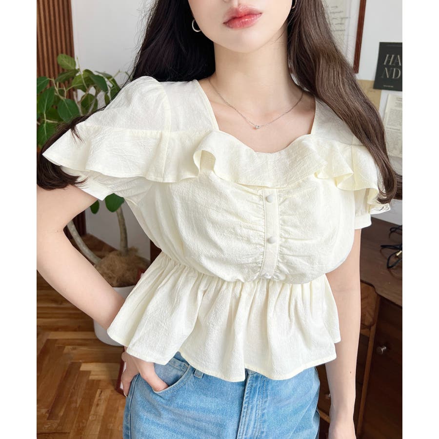 スクエアフリルペプラム半袖ブラウス