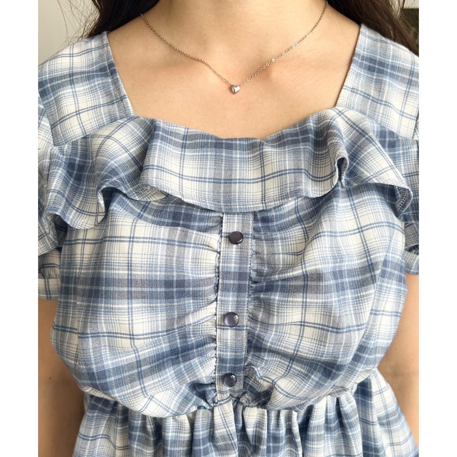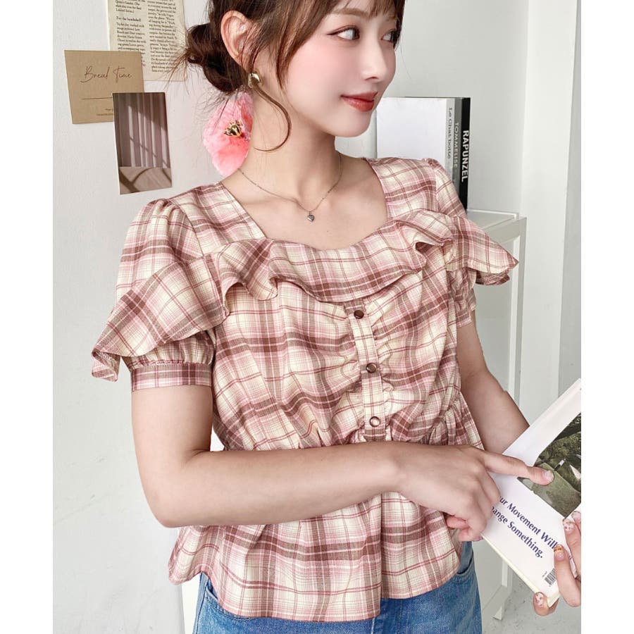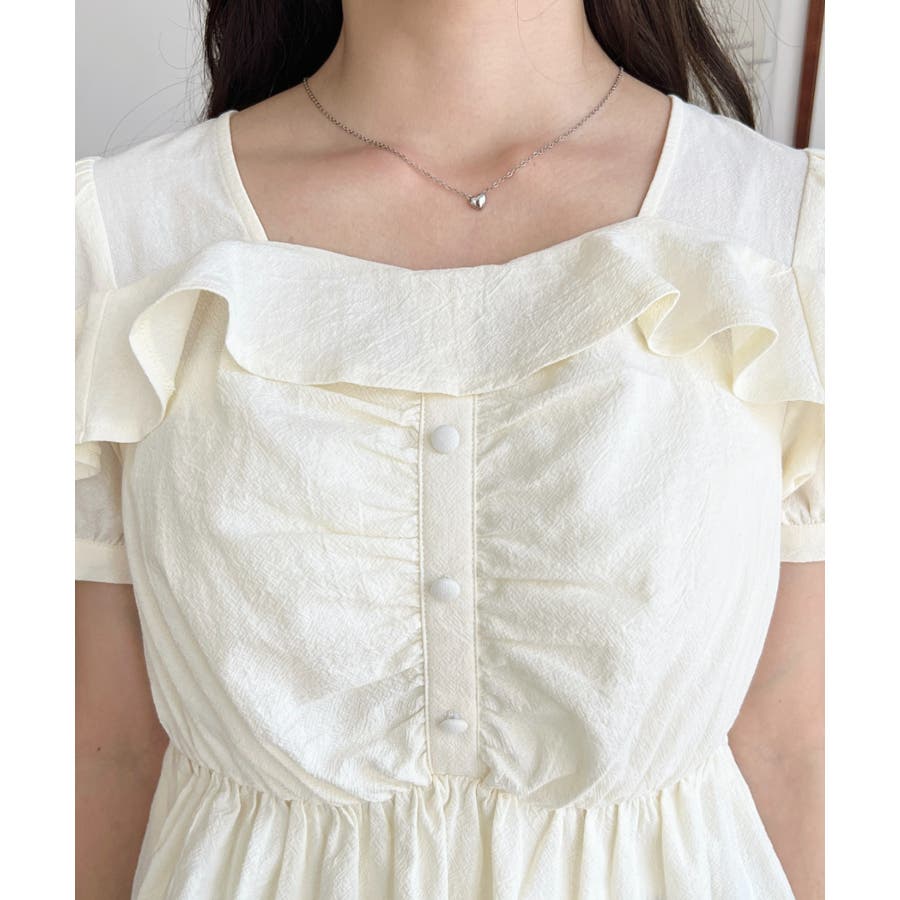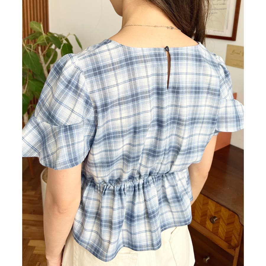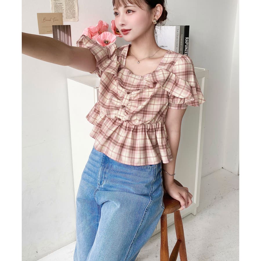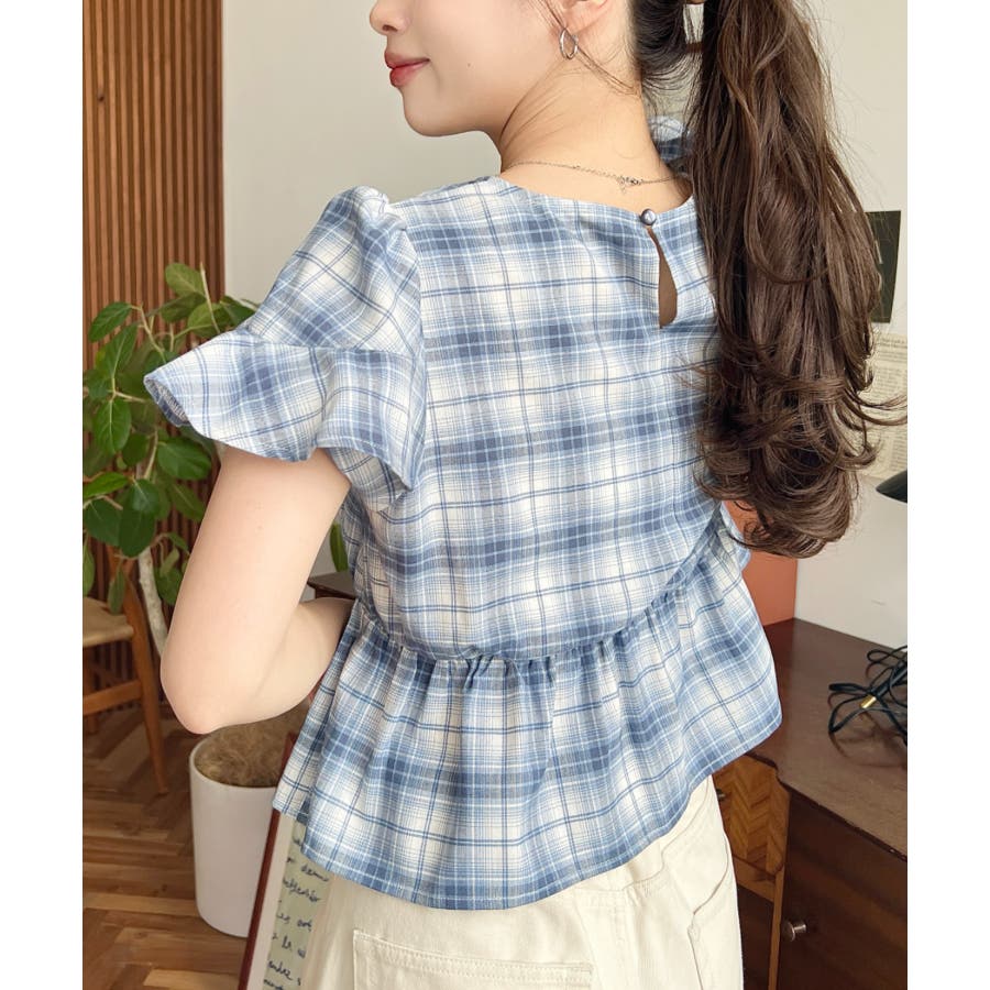 スクエアフリルペプラム半袖ブラウス