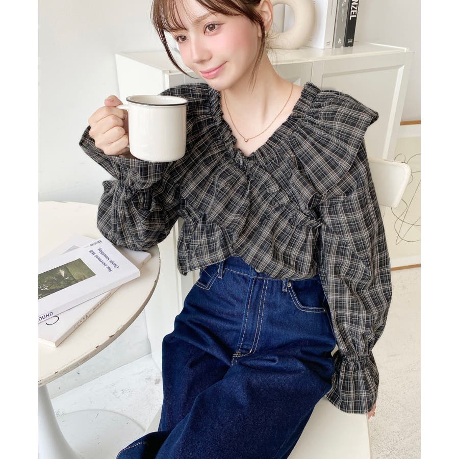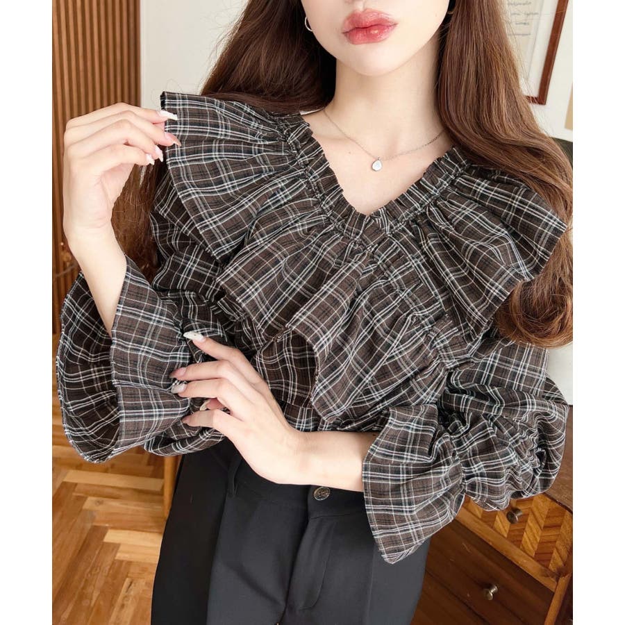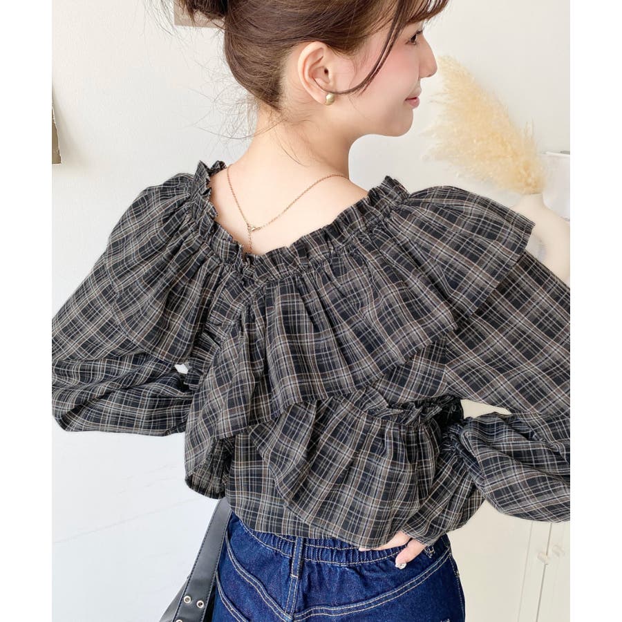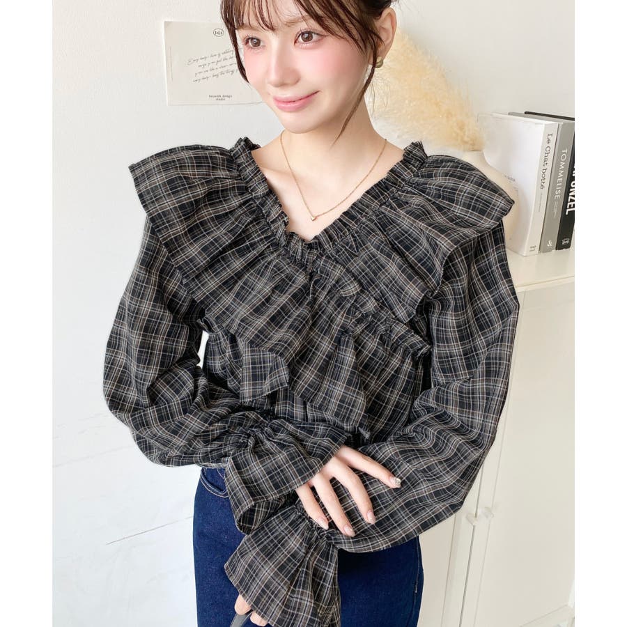 【着こなし自在♪ フリル×チェックが映えるマルチウェイブラウス】
