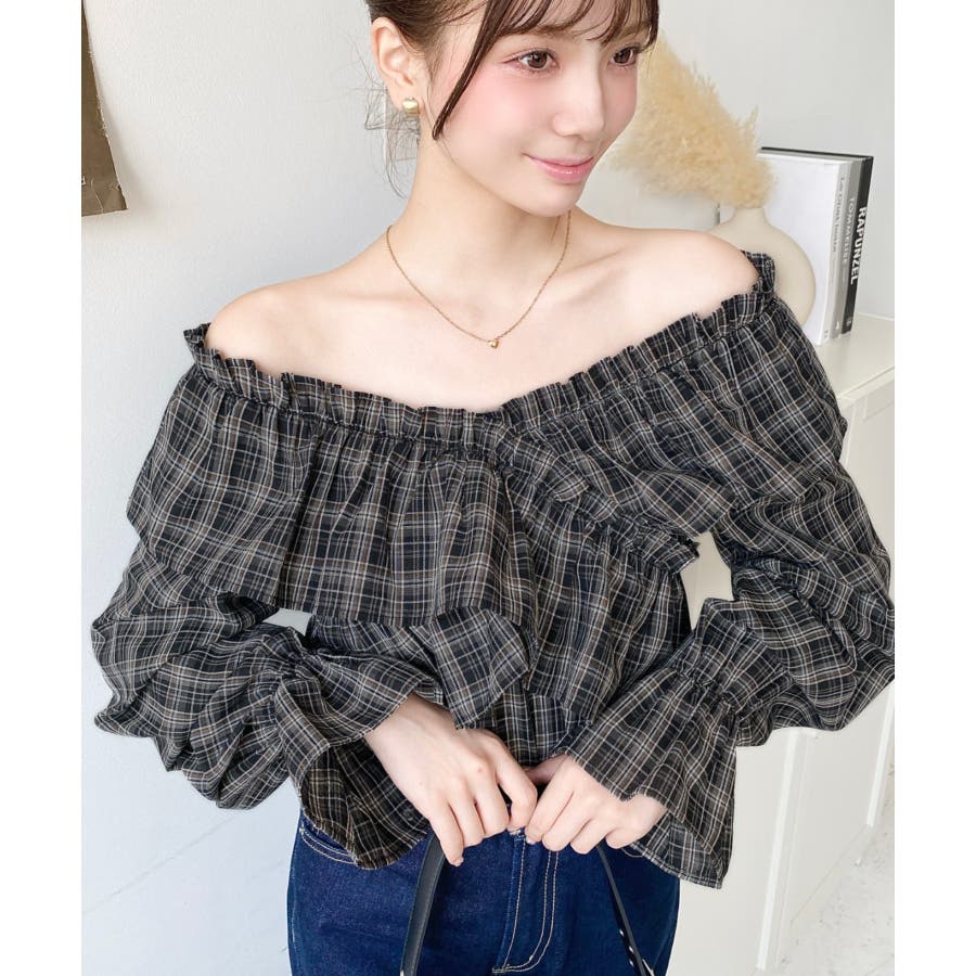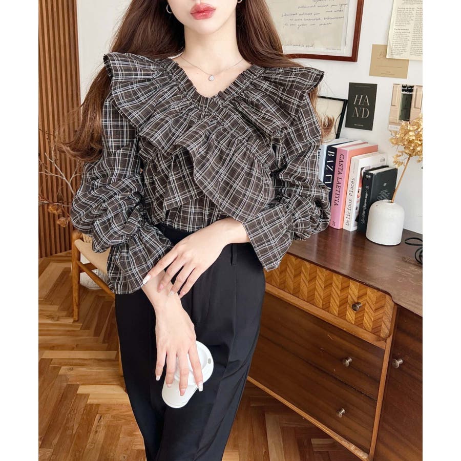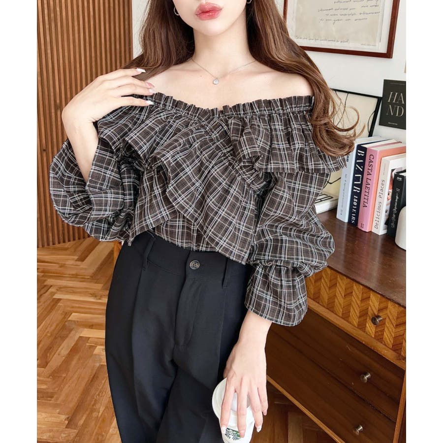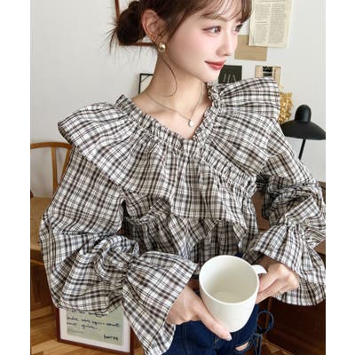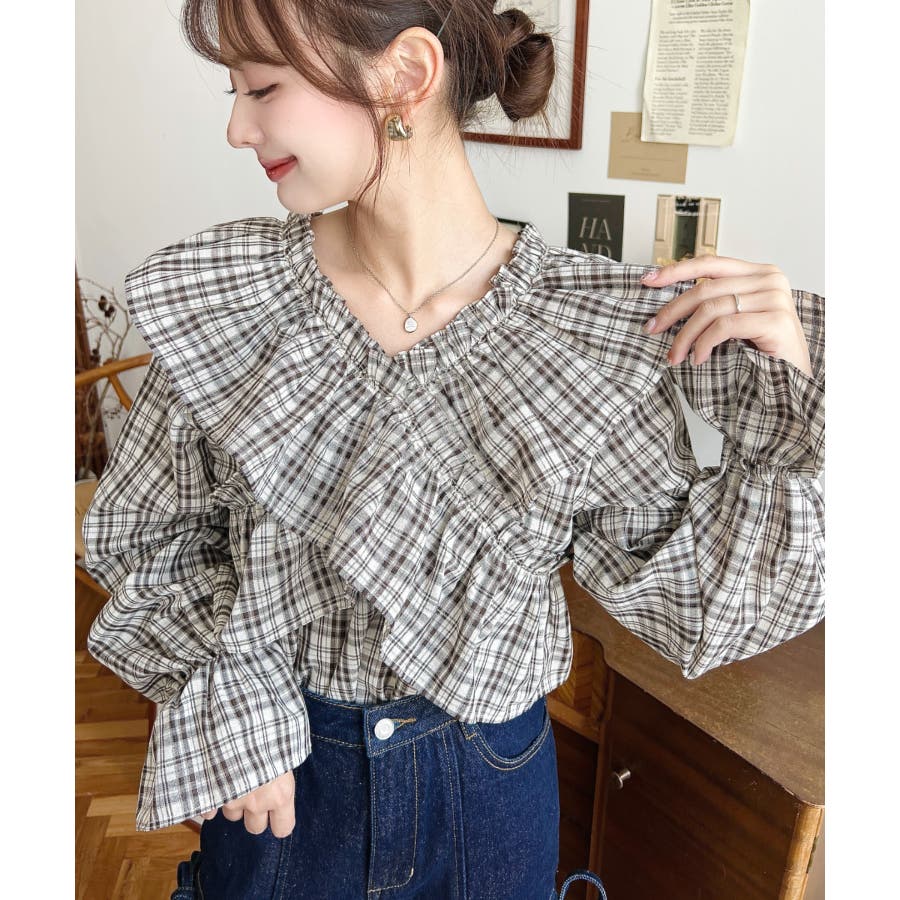 【着こなし自在♪ フリル×チェックが映えるマルチウェイブラウス】