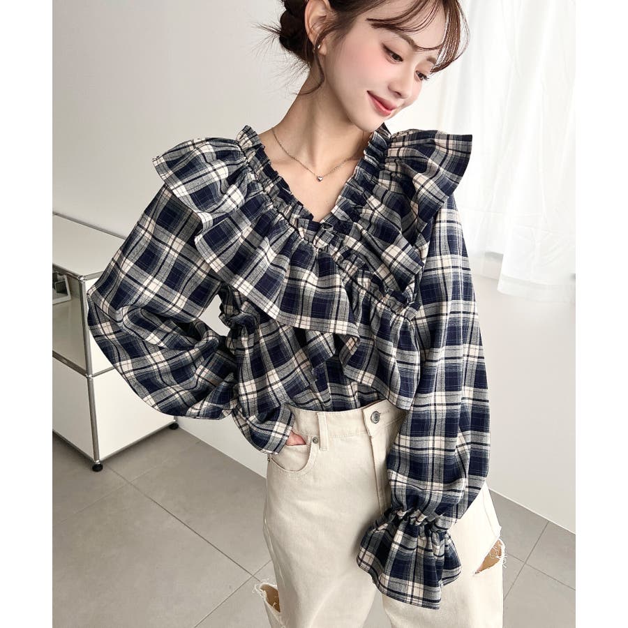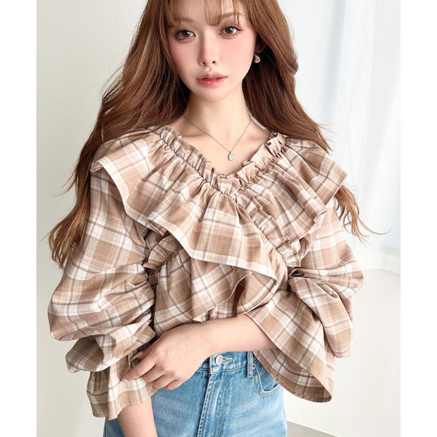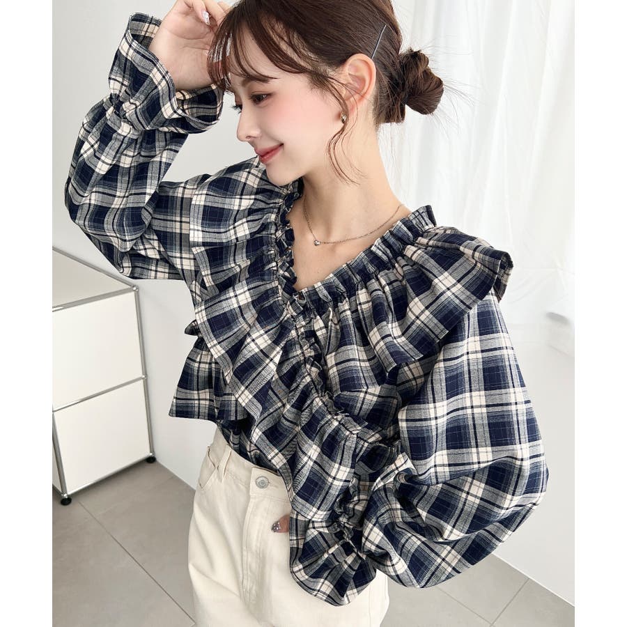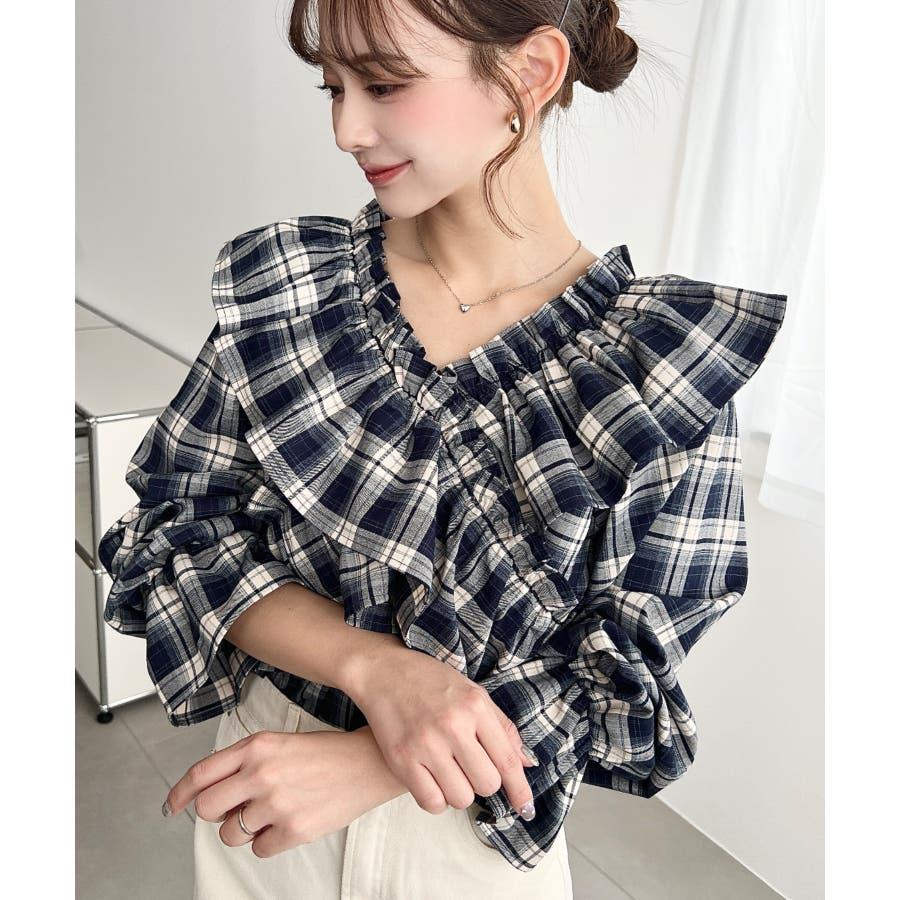 ・クラシカルなチェック柄で甘さを抑えつつ、大人ガーリーに着こなせる1枚。程よいボリューム感の袖がバランス良く、二の腕もさりげなくカバーしてくれます。