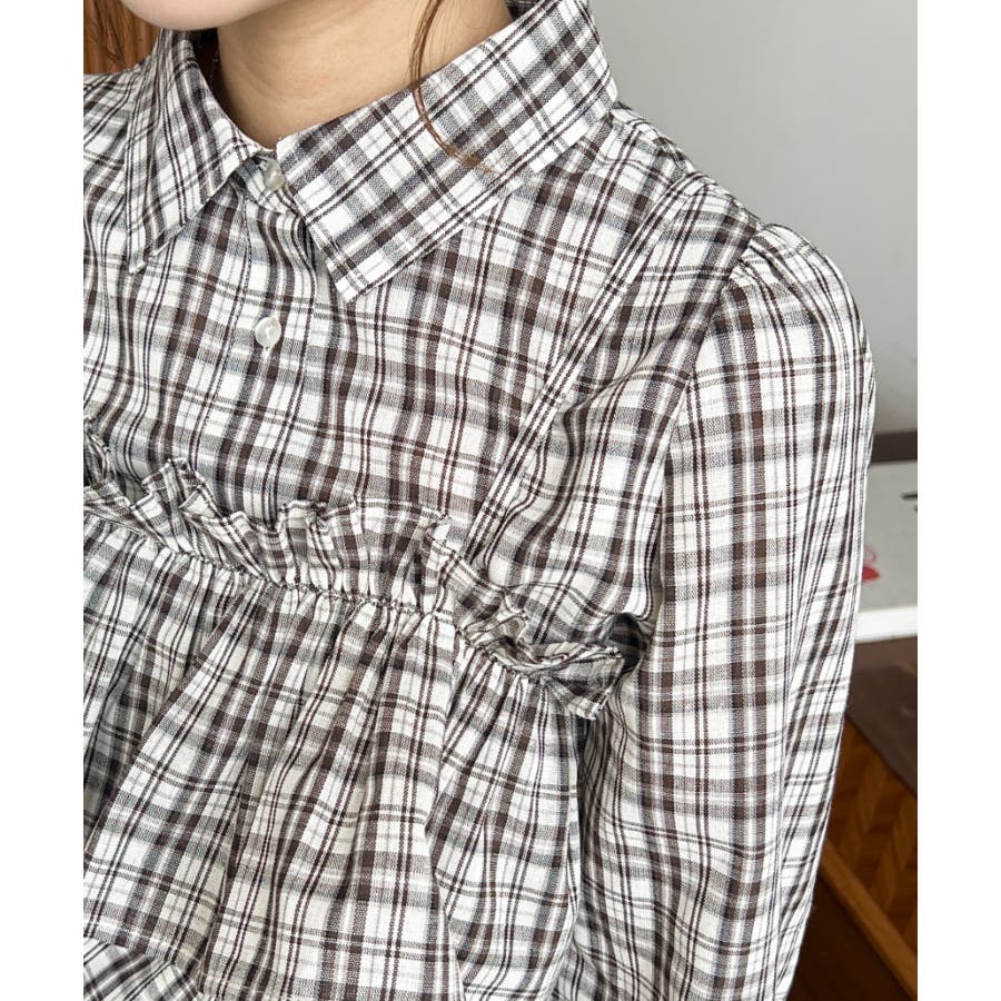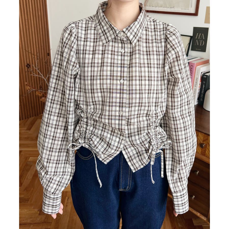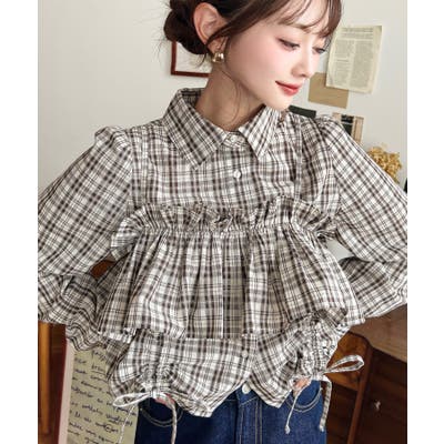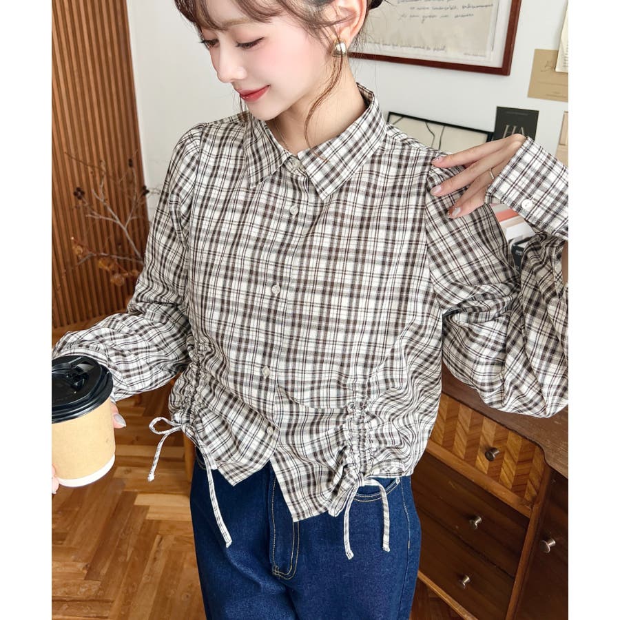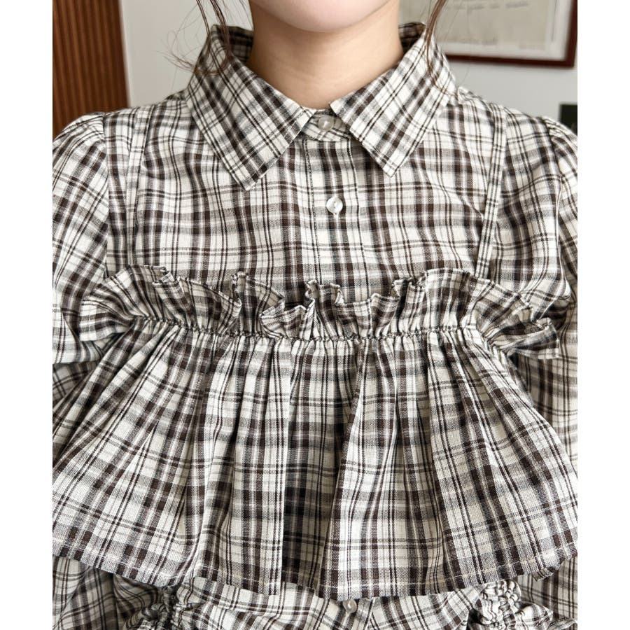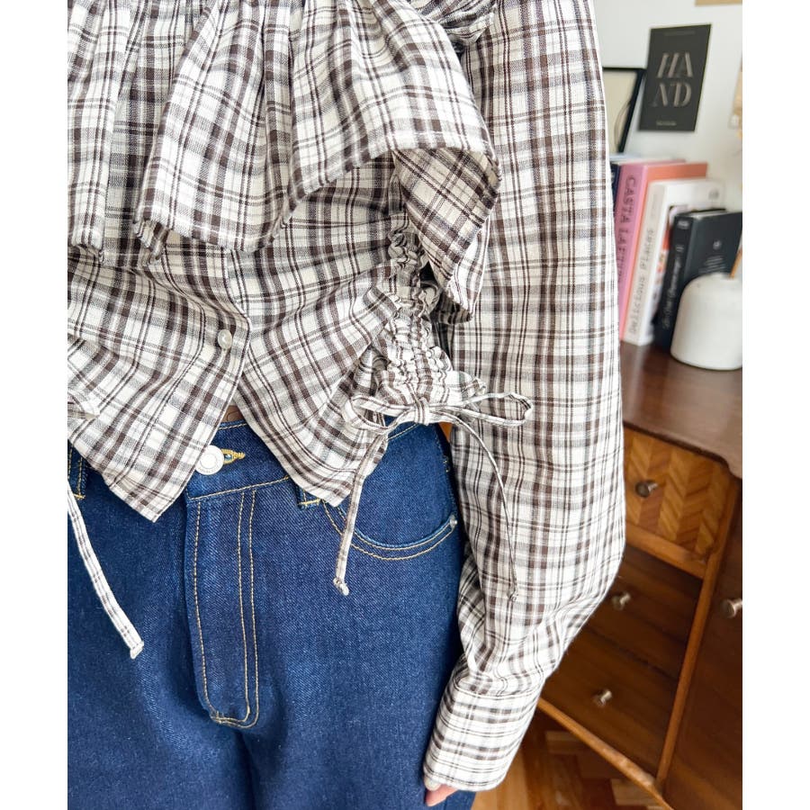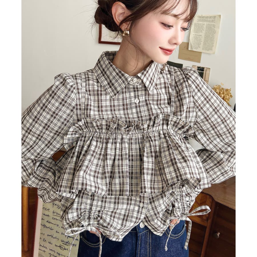 フリルビスチェセット裾ドロストリボン長袖チェックシャツ