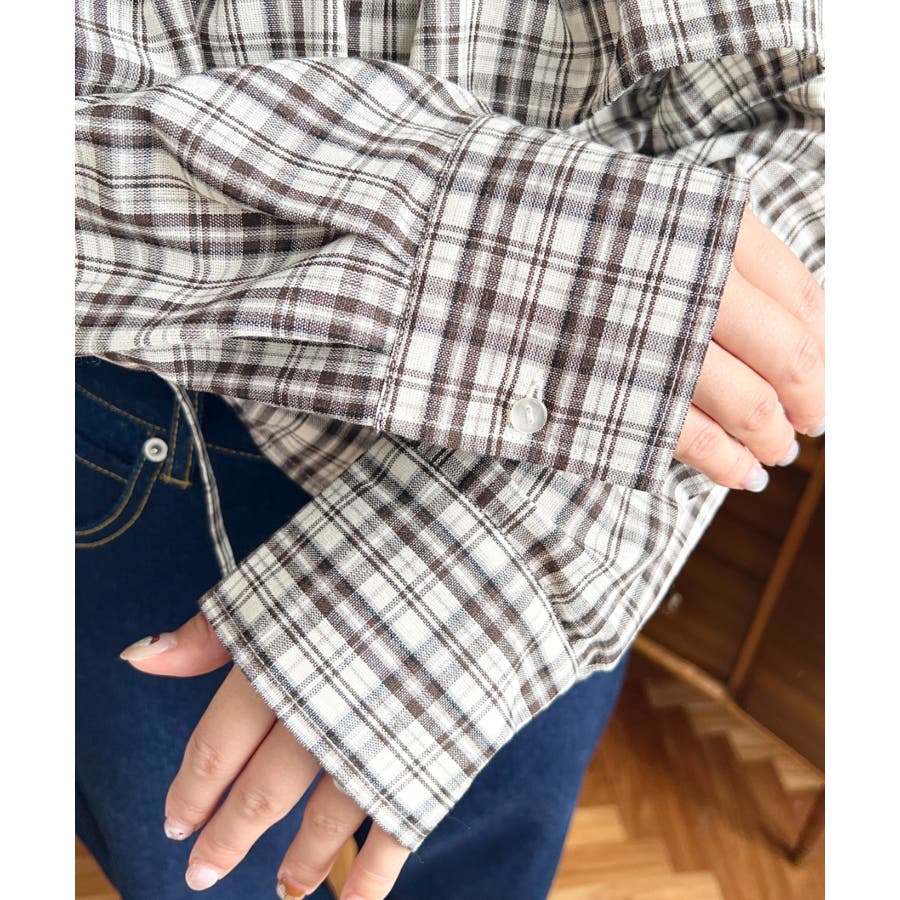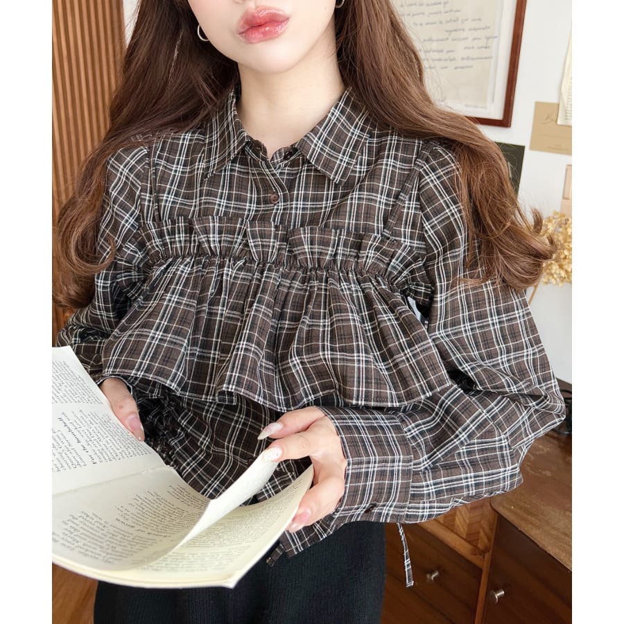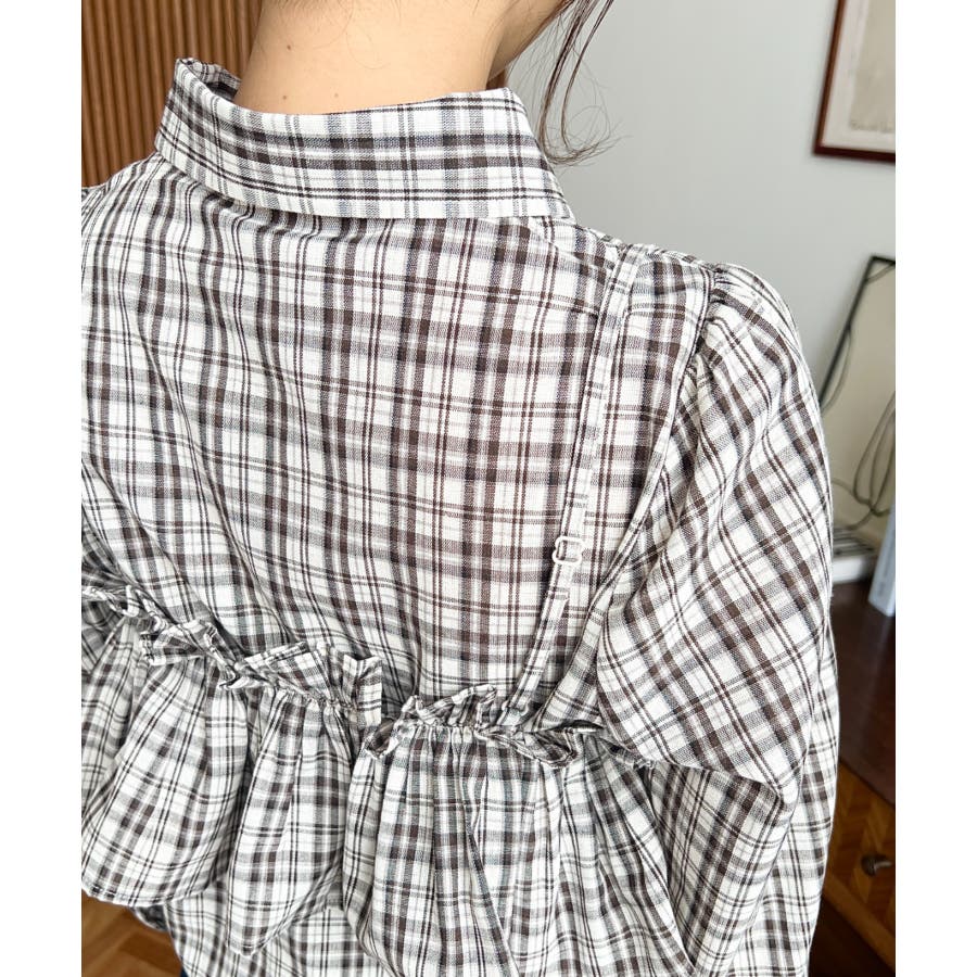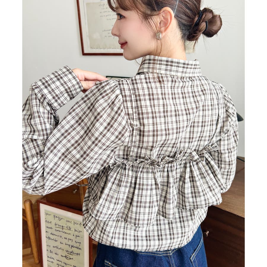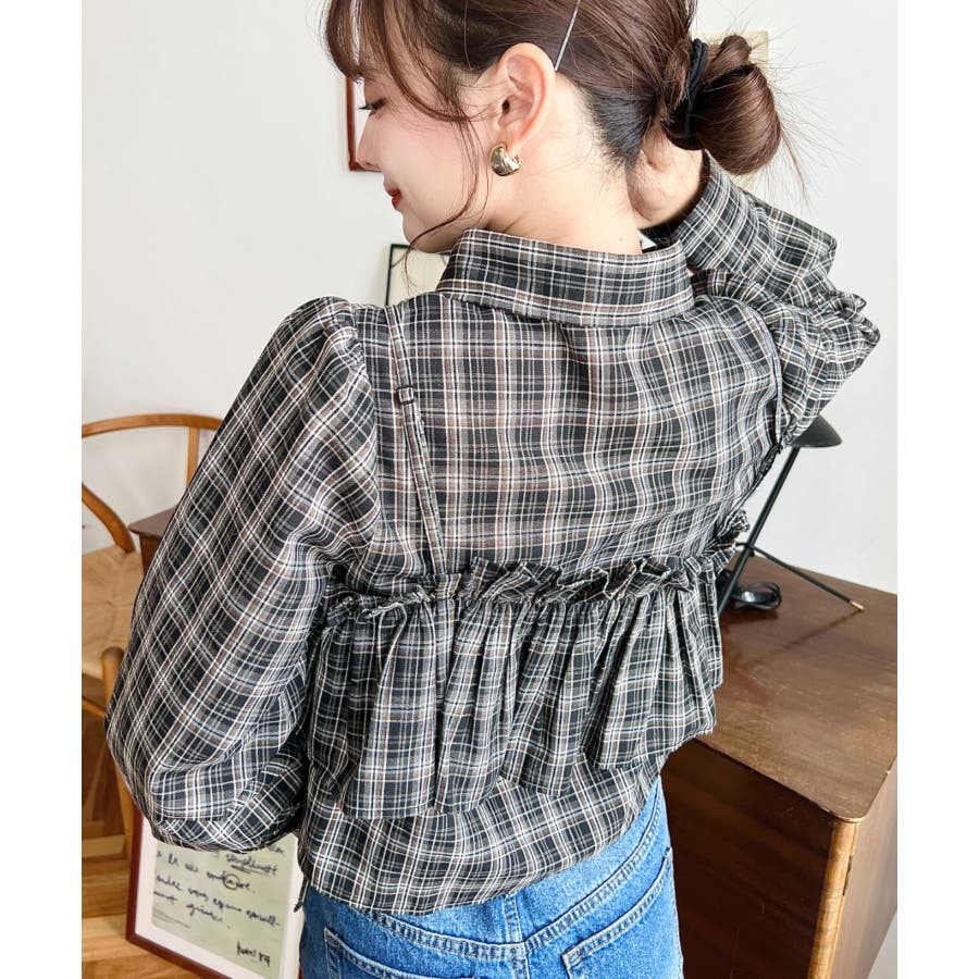 【トレンド感たっぷり♪フリルビスチェ付きのチェックシャツセット】