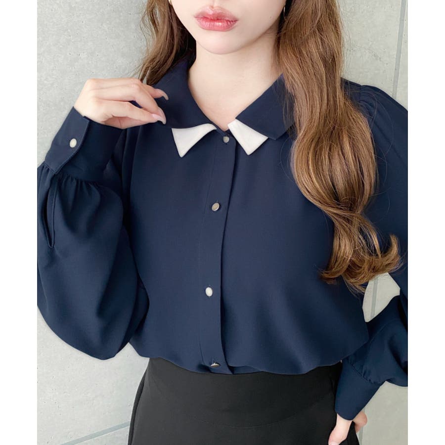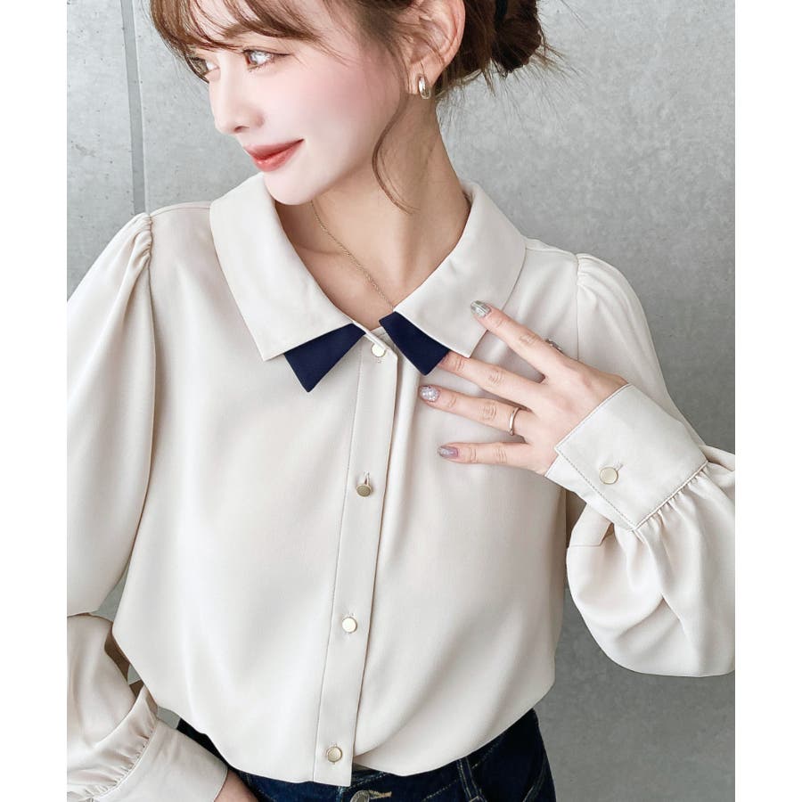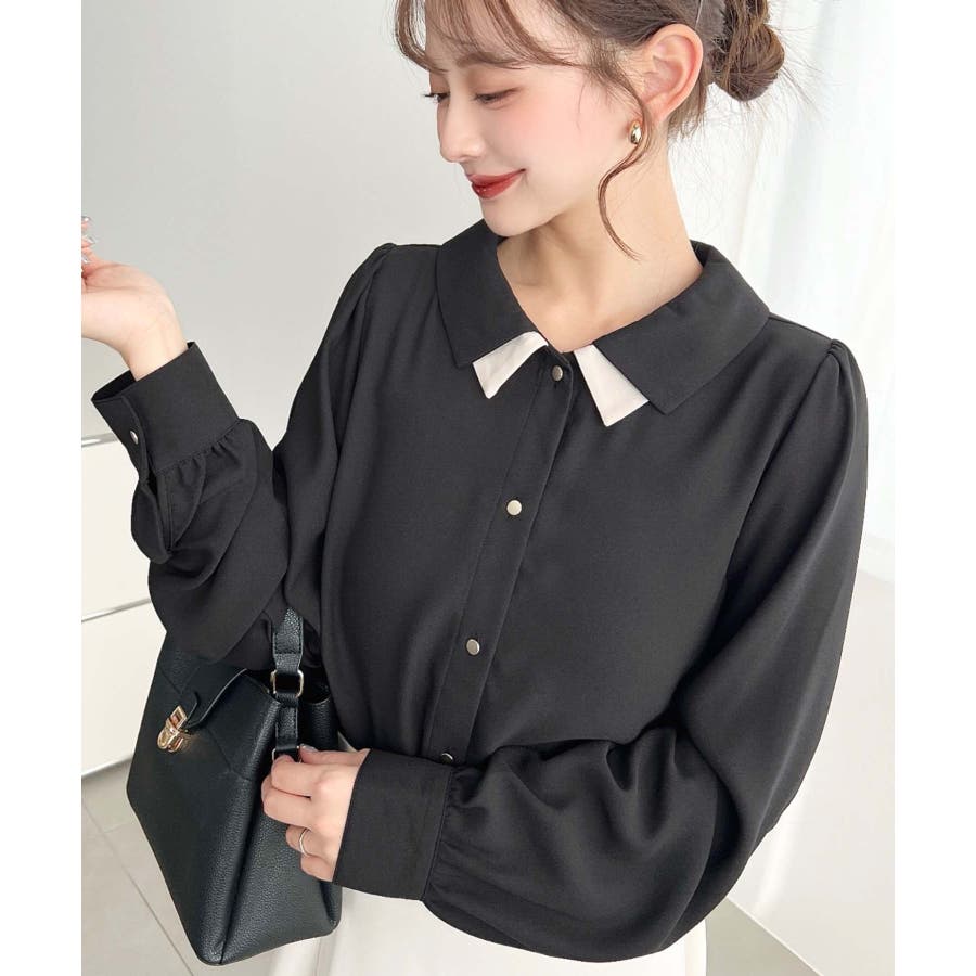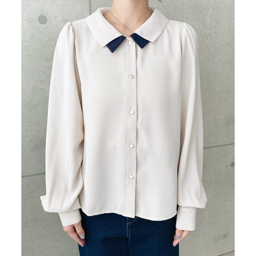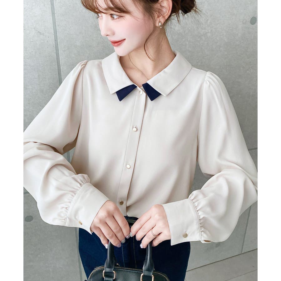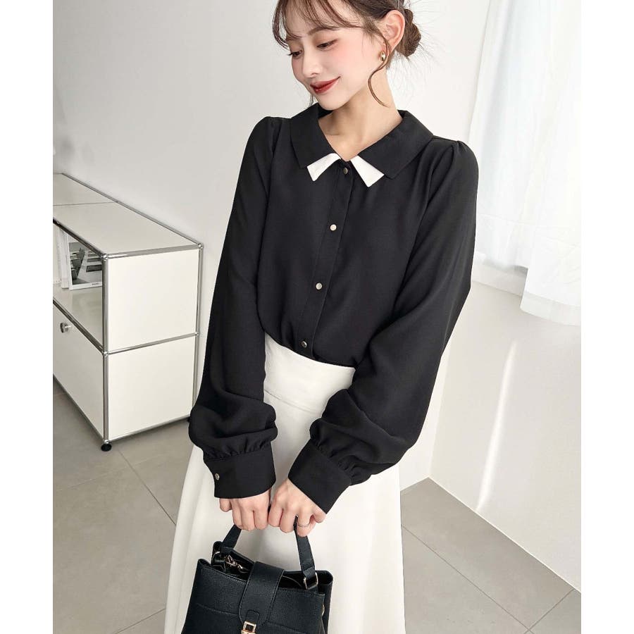 ・バイカラーの小さな襟がお洒落なコーデがランクアップするブラウスです♪