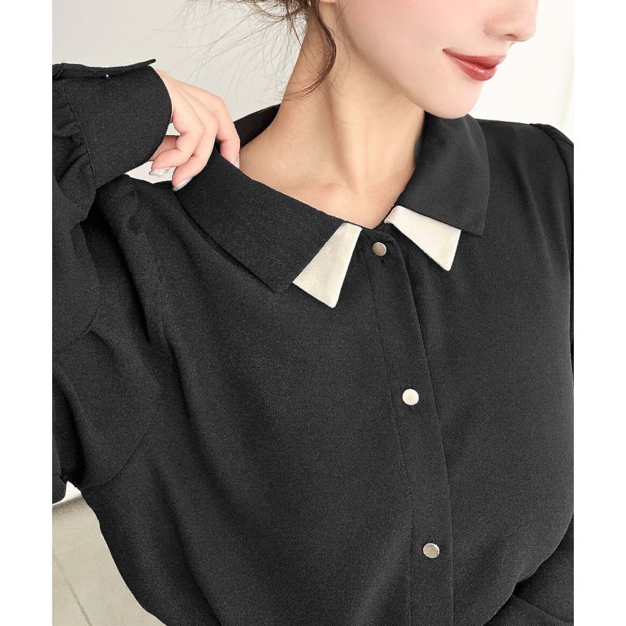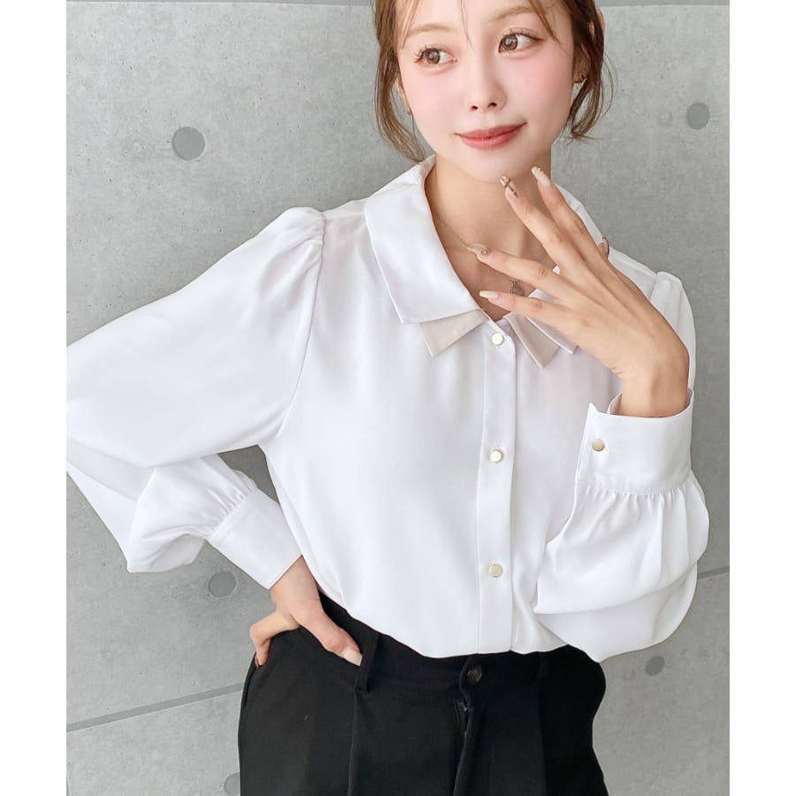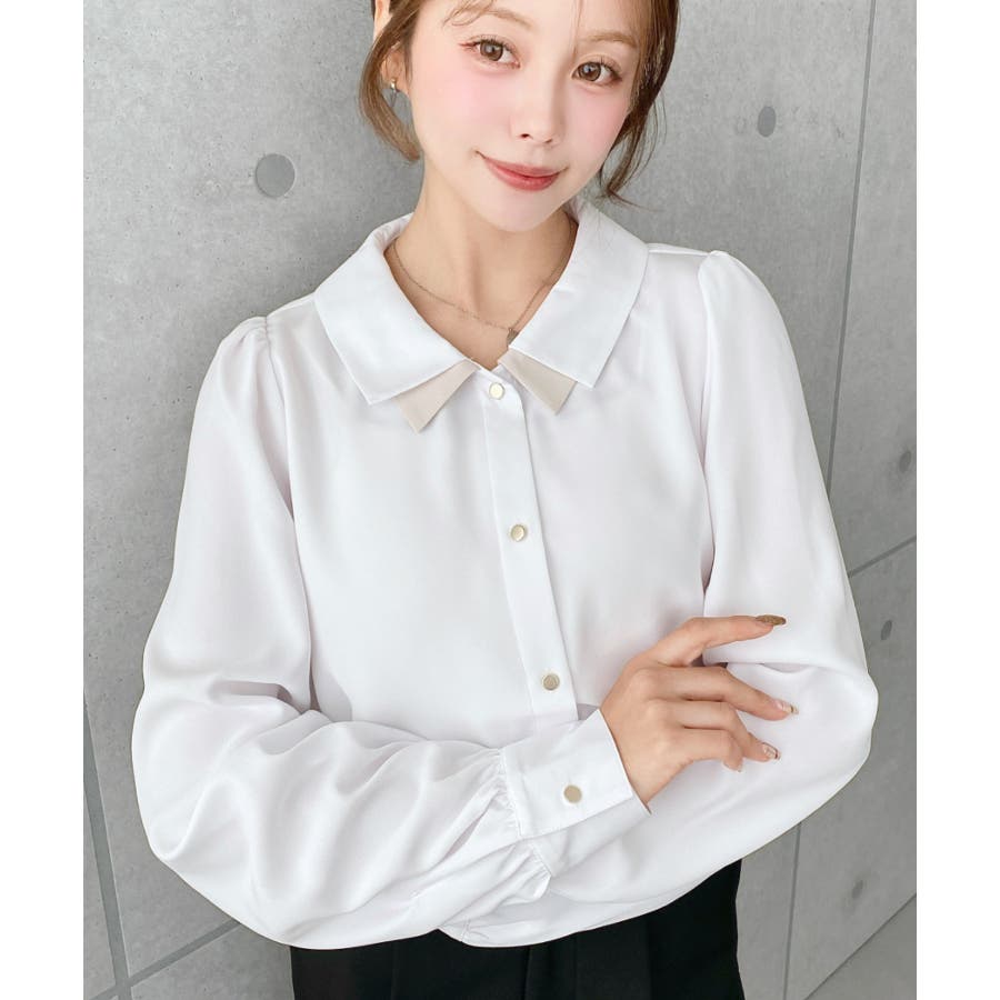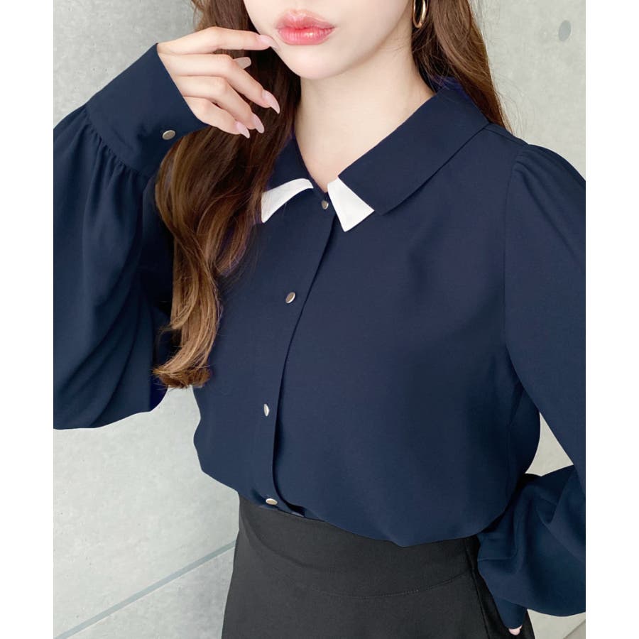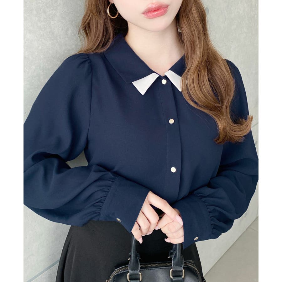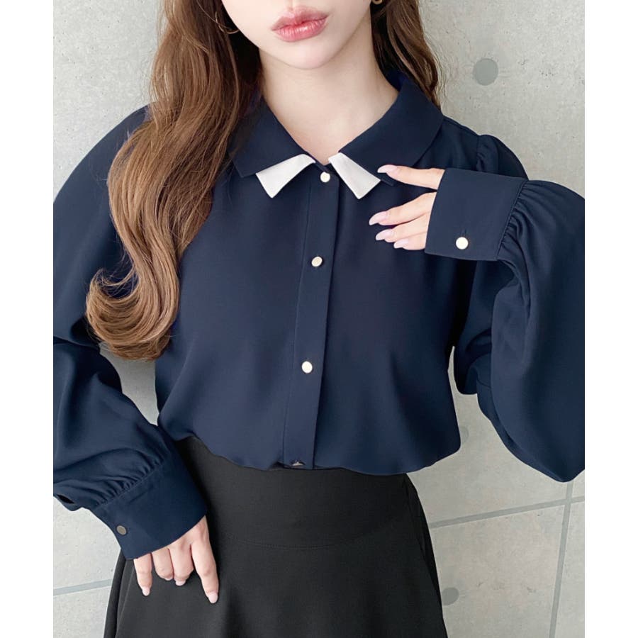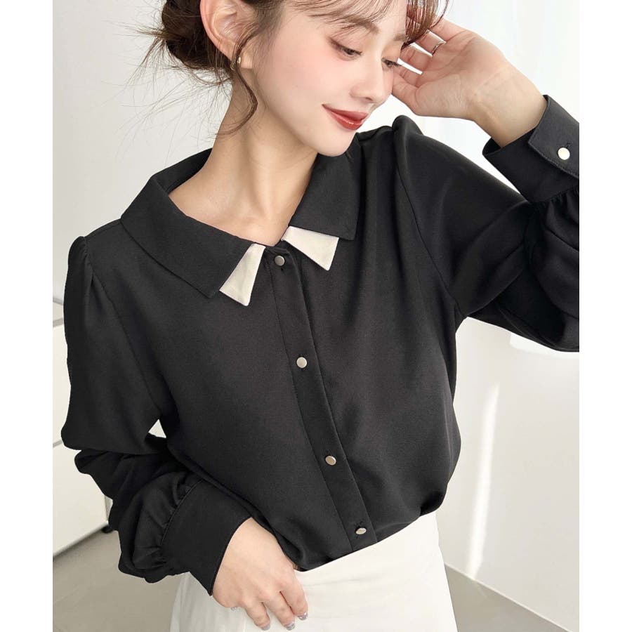 ・バイカラーの小さな襟がお洒落なコーデがランクアップするブラウスです♪